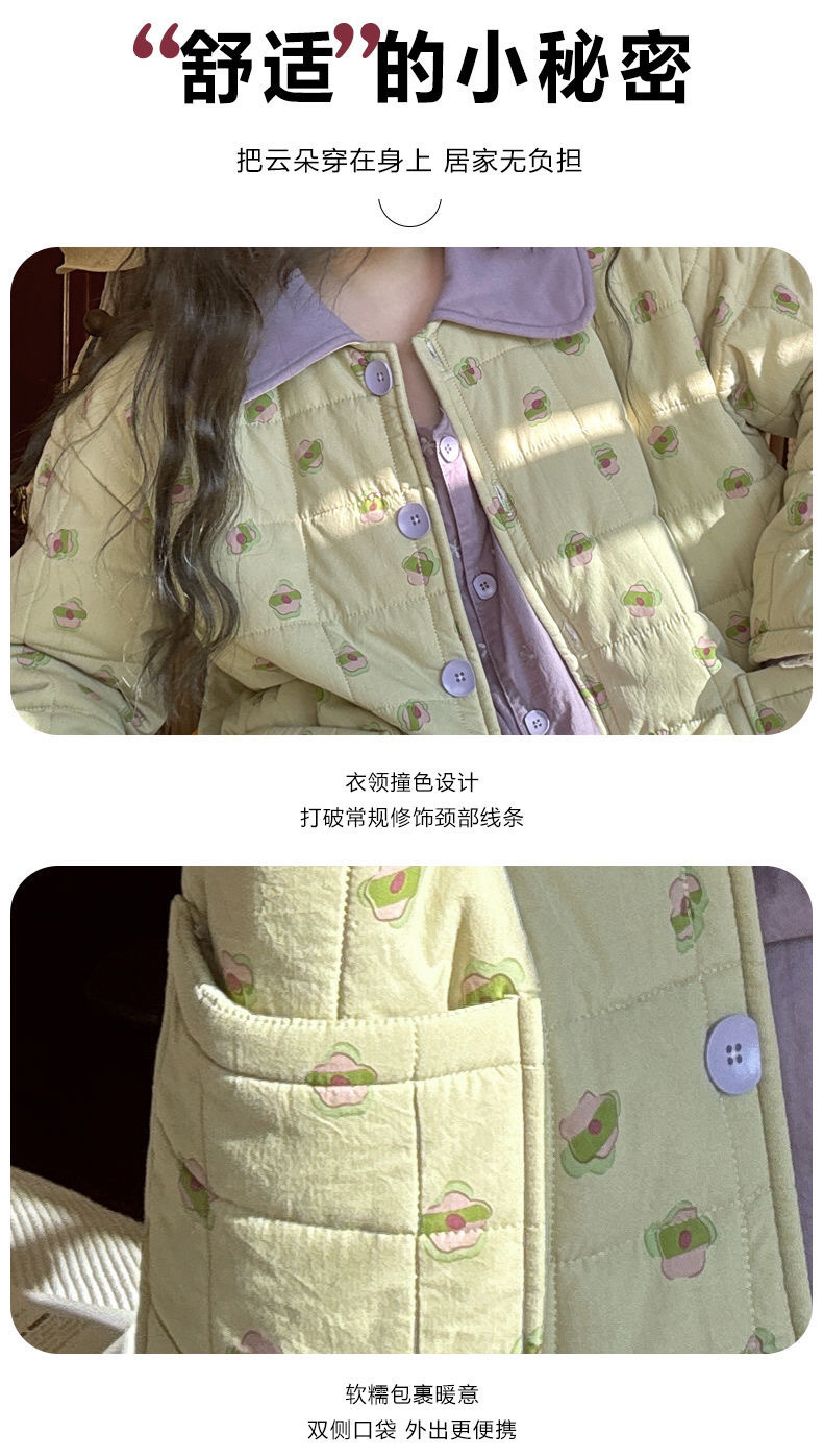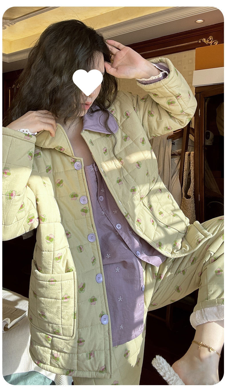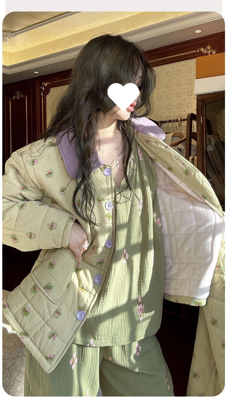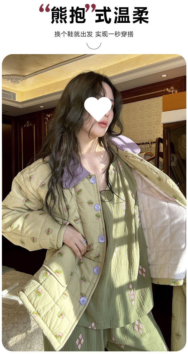 새로운 가을과 겨울 3 층 두꺼운 따뜻한 코튼 파자마 여성용 산호 양털 꽃 홈 의류 세트 겨울