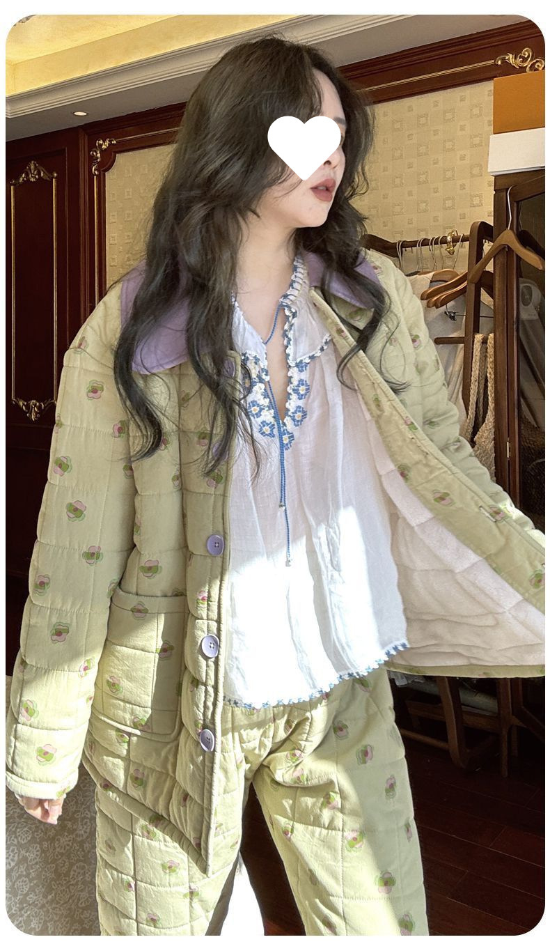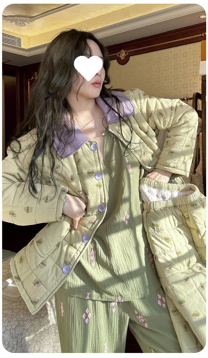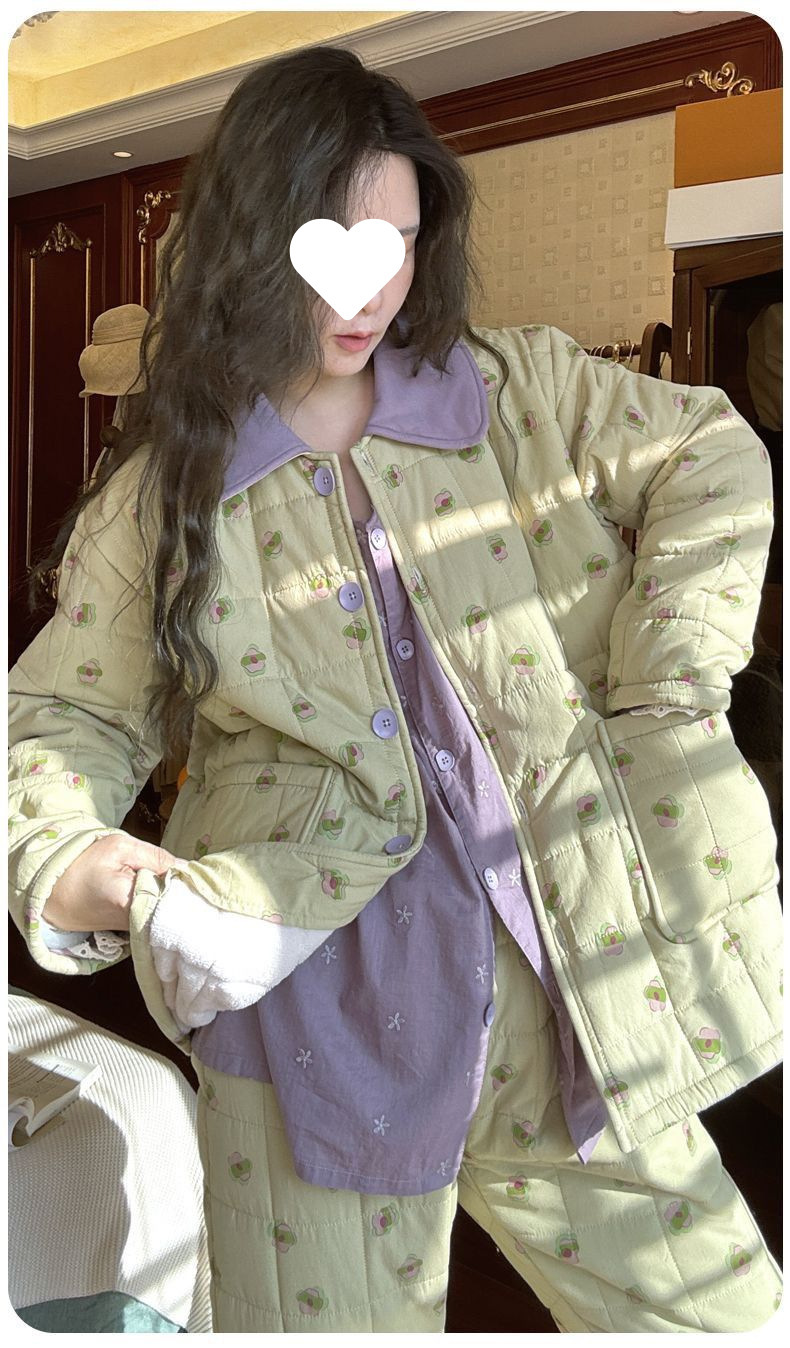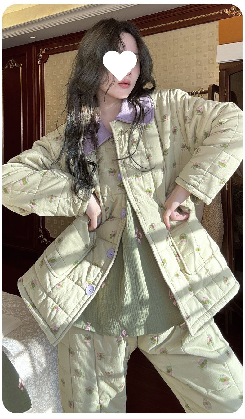 새로운 가을과 겨울 3 층 두꺼운 따뜻한 코튼 파자마 여성용 산호 양털 꽃 홈 의류 세트 겨울