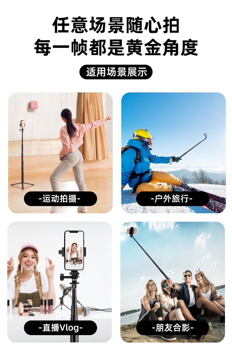 새로운 스포츠 카메라/휴대 전화 핸드 헬드 셀카 스틱 삼각대 블루투스 카메라 아티팩트 2023 라이브 유니버설