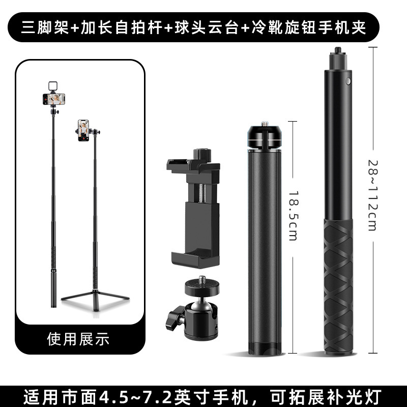 • 삼각대 + 셀카봉 + 360도 헤드 + 휴대폰 클립