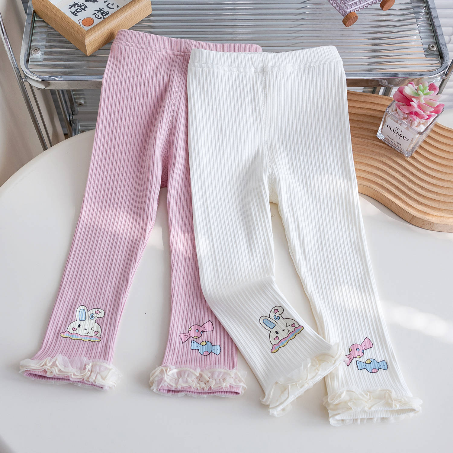 소녀 레깅스 봄과 가을 2025 새로운 서양식 아기 소녀 외부 면화 어린이 탄성 레이스 긴 바지스토어 가기