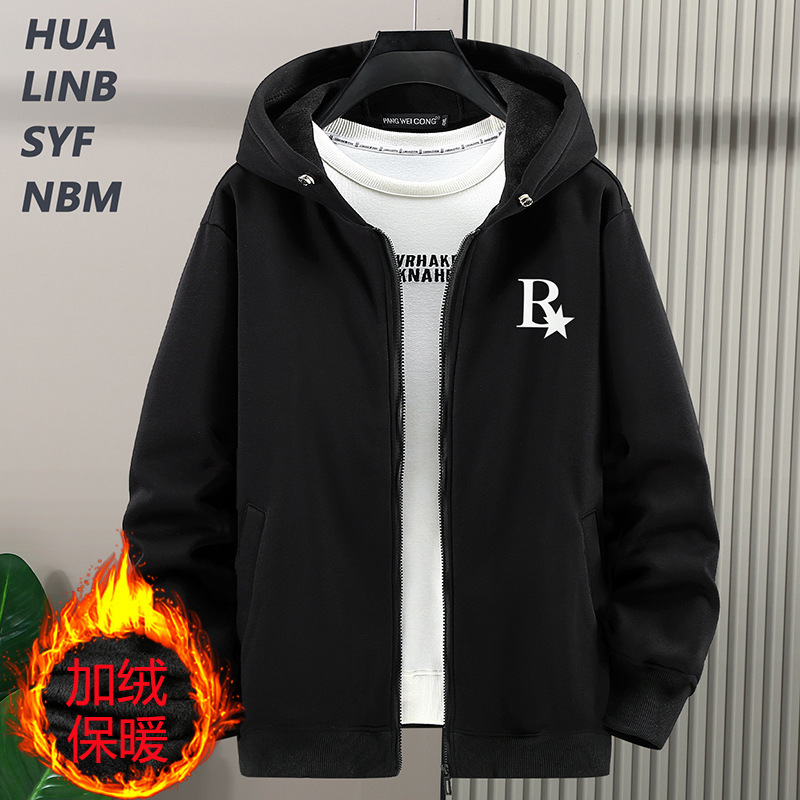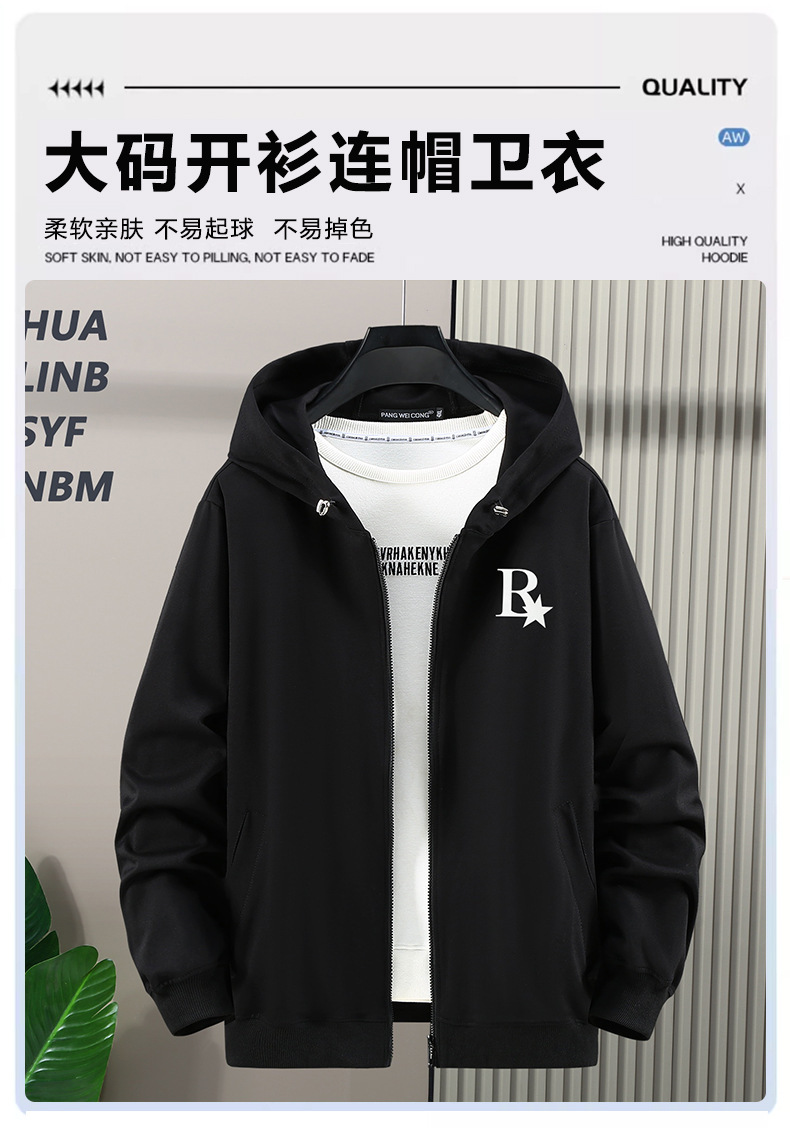 春秋季新款青少年大码连帽卫衣男韩版潮流上衣服男生帽衫开衫外套