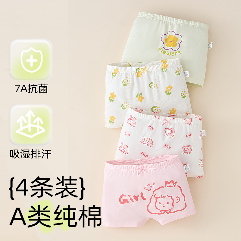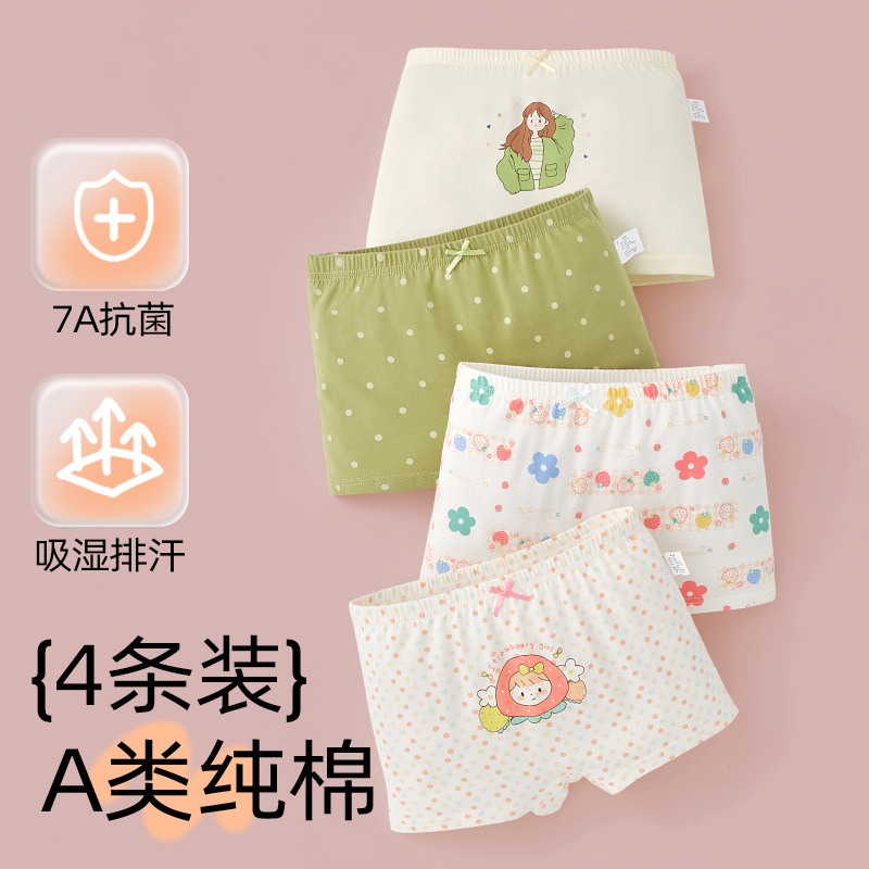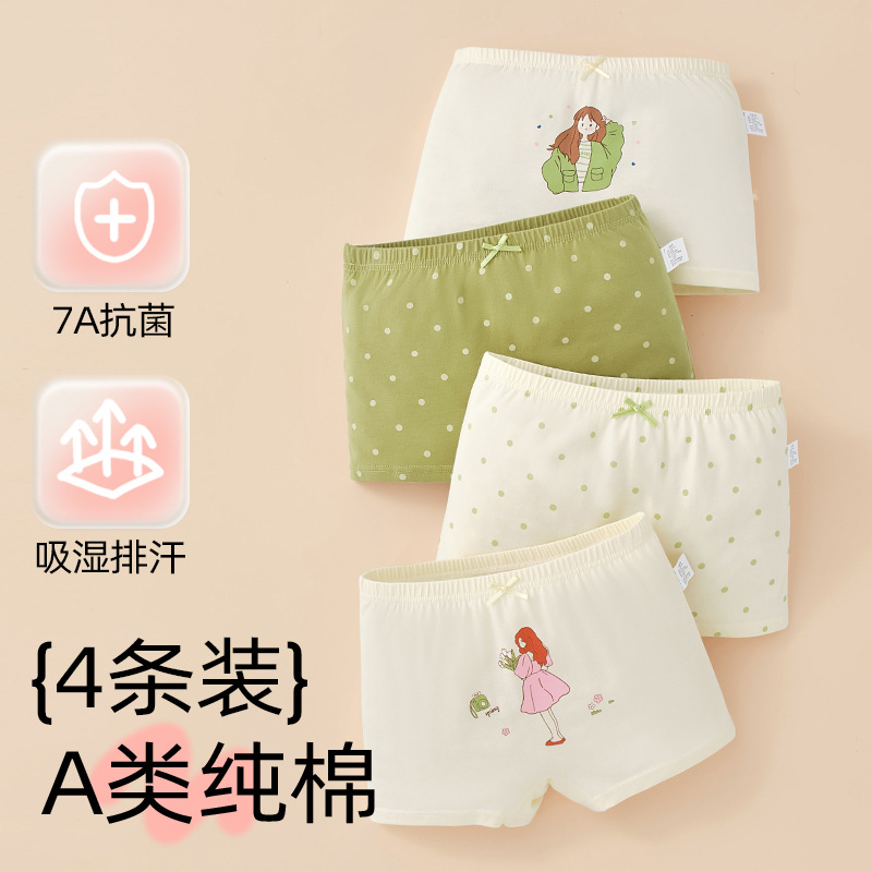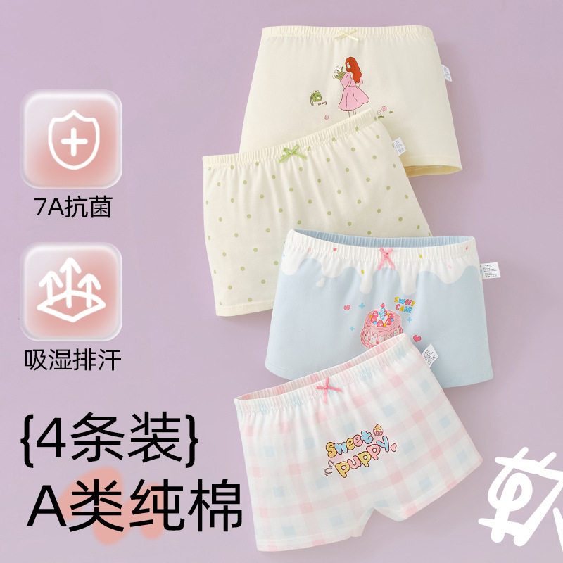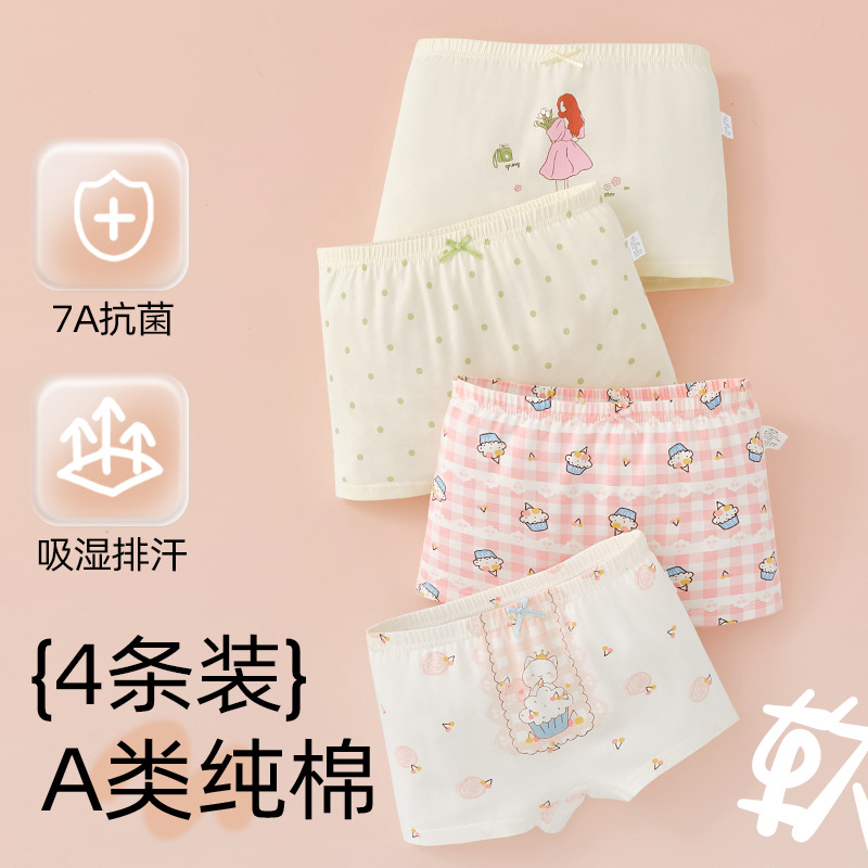 어린이 및 소녀 속옷 퓨어 코튼 클래스 A 코튼 6-12 세 어린 소녀와 아기의 중간 및 큰 어린이 복서 반바지스토어 가기