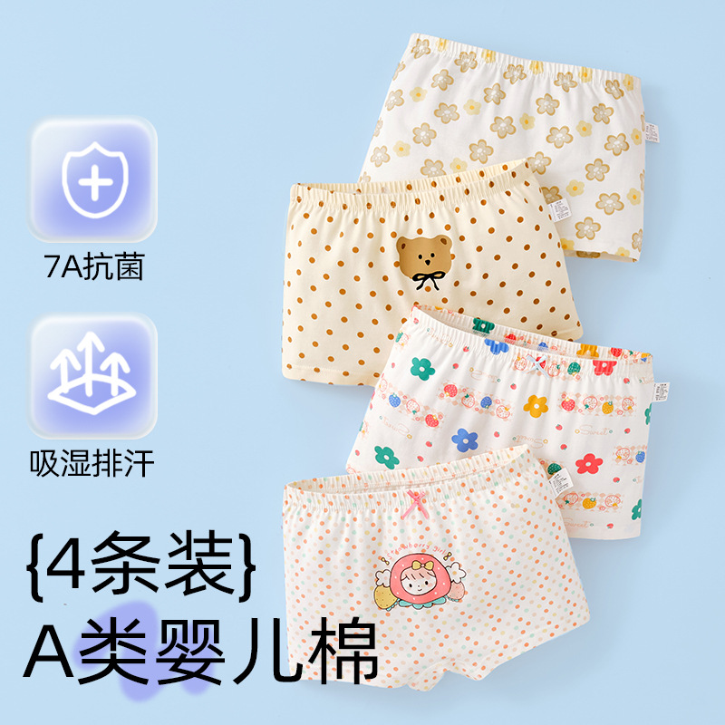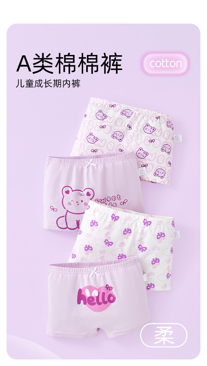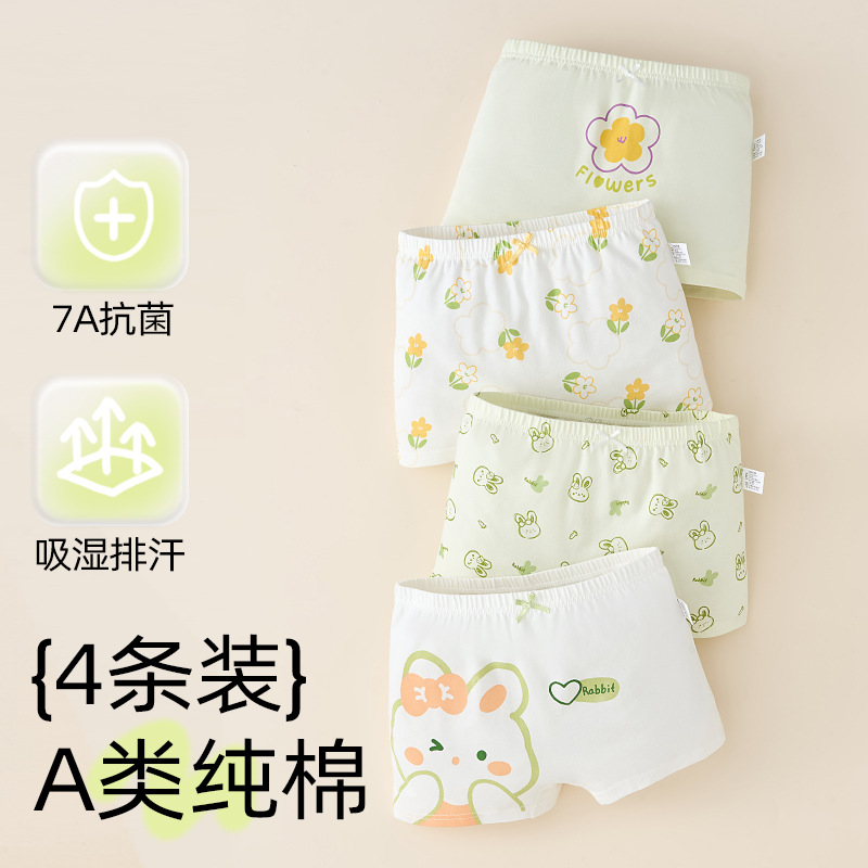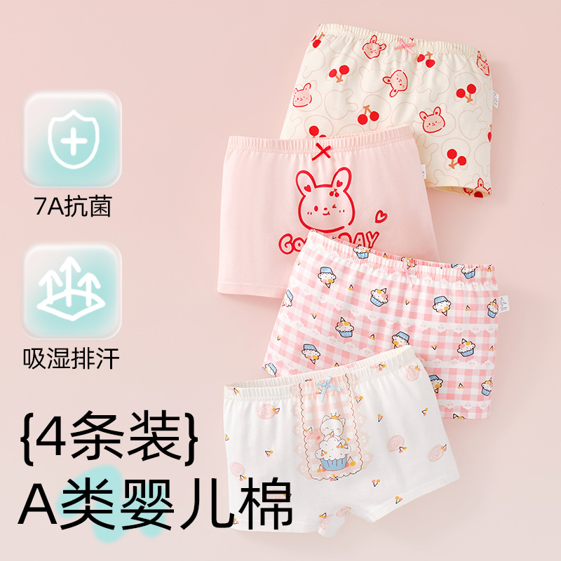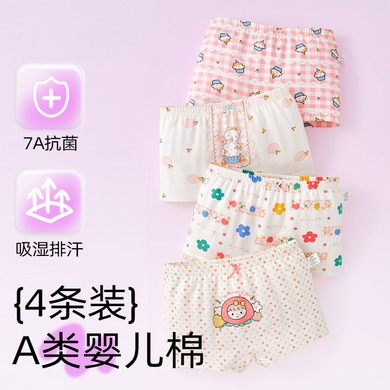 어린이 및 소녀 속옷 퓨어 코튼 클래스 A 코튼 6-12 세 어린 소녀와 아기의 중간 및 큰 어린이 복서 반바지스토어 가기