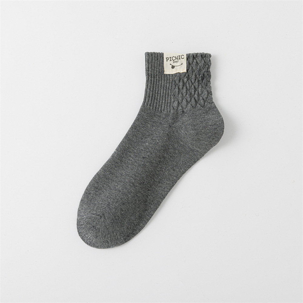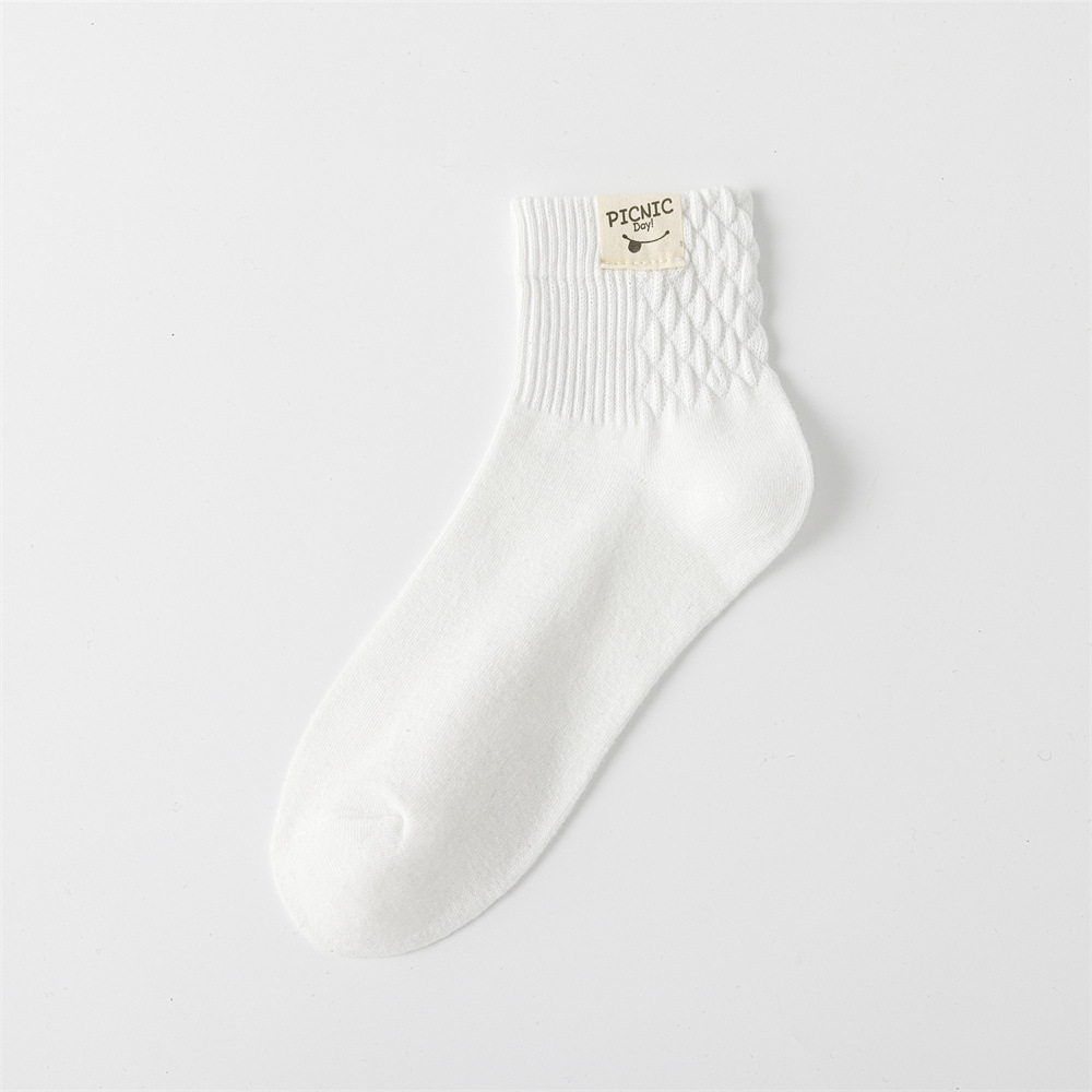 남성 천 라벨 스마일리 화이트 메쉬 양말 짧은 양말 코튼 땀 흡수 통기성 스포츠 솔리드 컬러 로우 사이드 봄과 가을 짧은 튜브