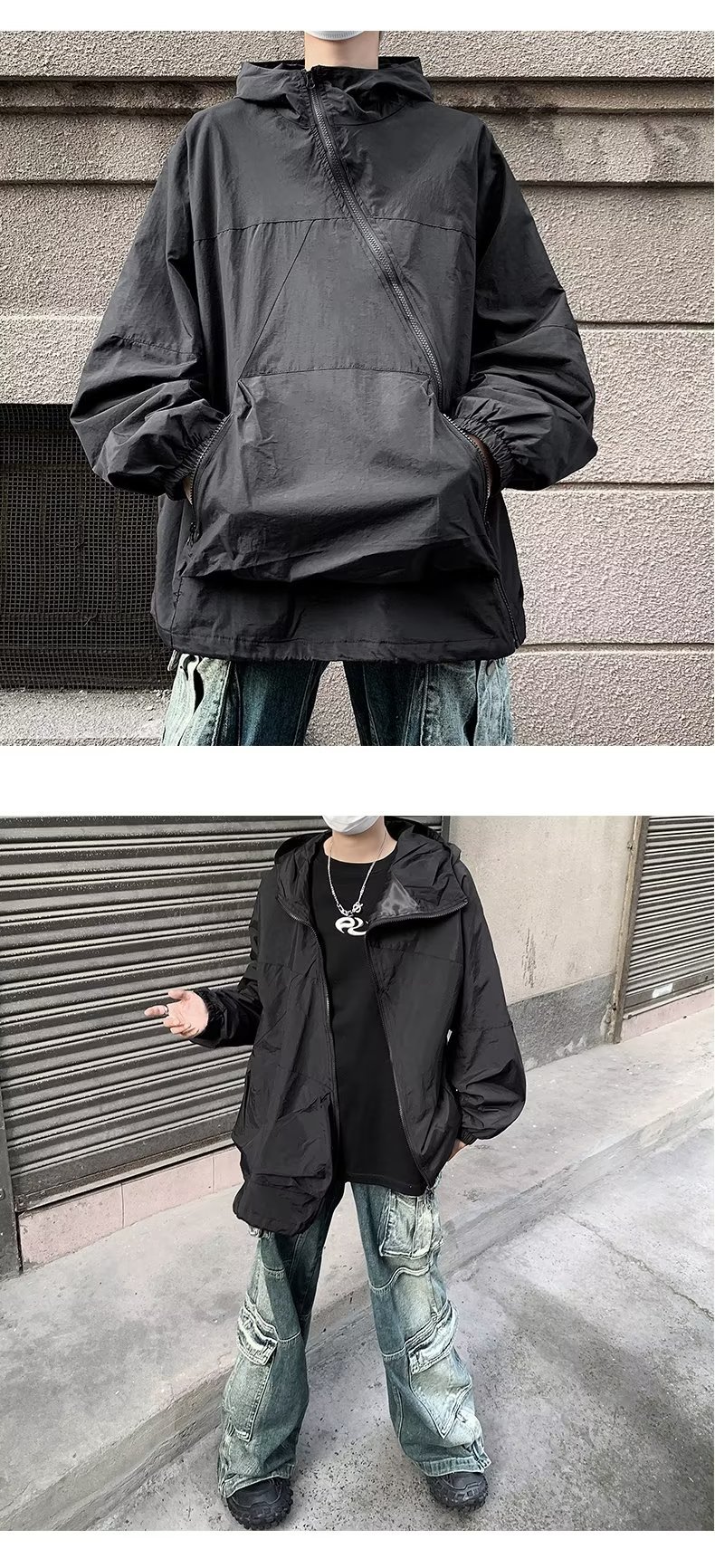 2025 봄 재킷 남성 코트 지퍼 루즈 재킷 트렌디 한 디자인 센스 블랙 재킷 코트