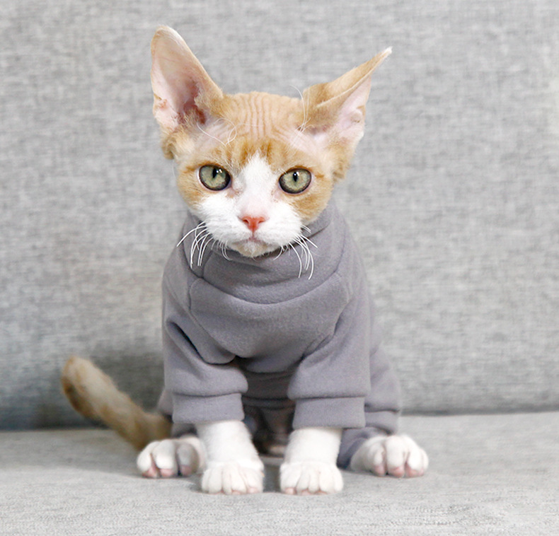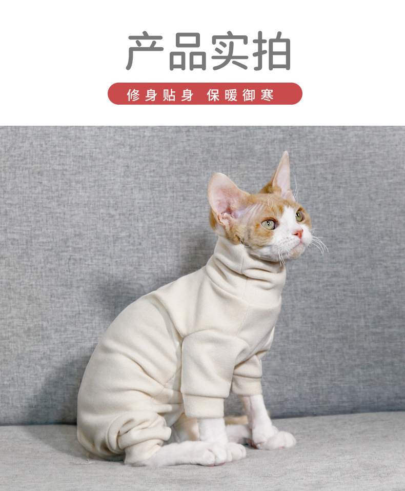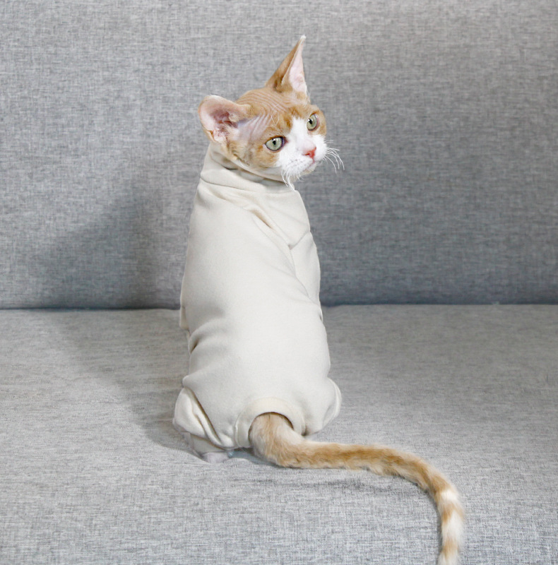 고양이 옷, 따뜻하고 배를 보호하는 네발옷, 독일산 무털 봄가을 털빠짐 방지 이너웨어, 애완 고양이 옷