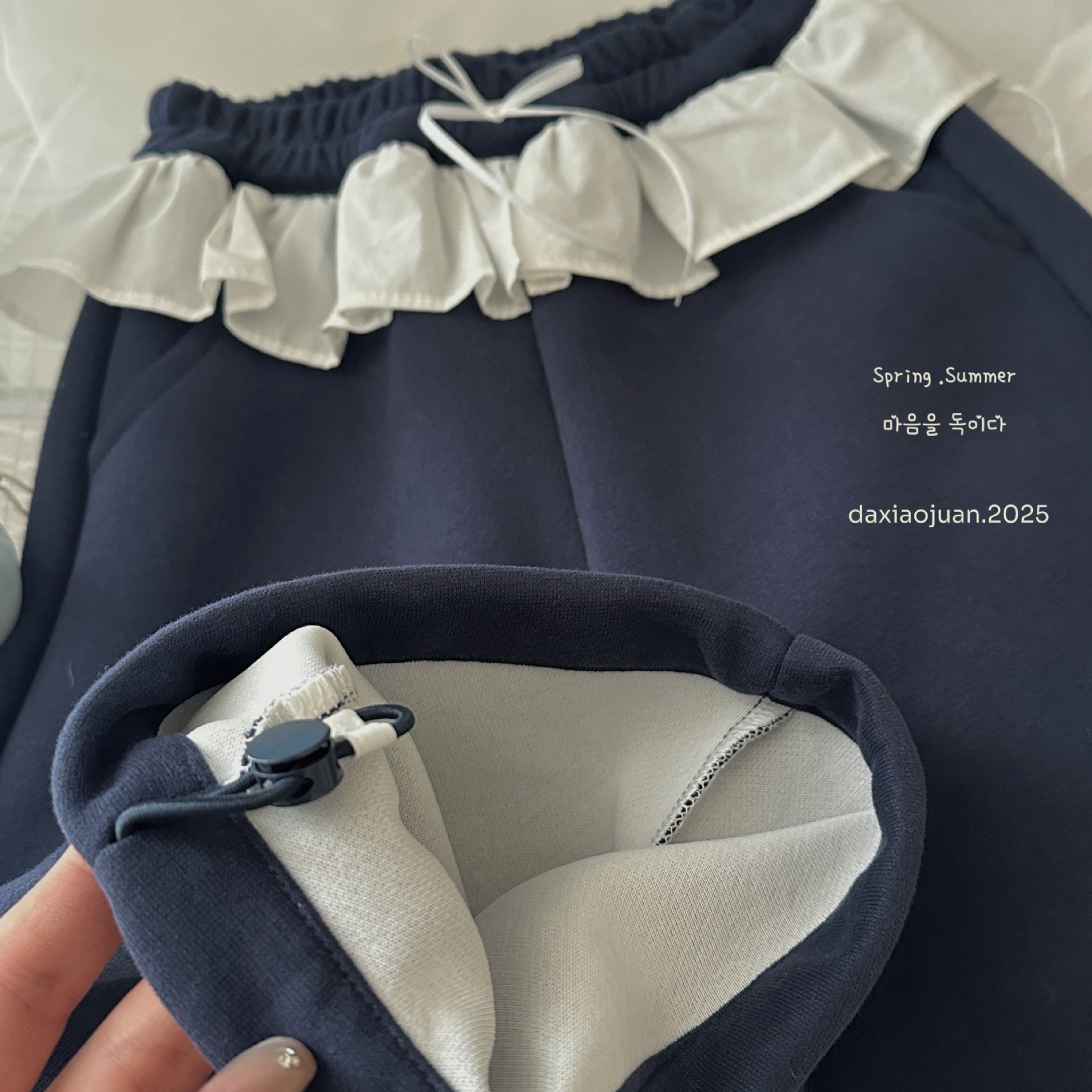 사이즈 롤 25 새로운 소녀 봄과 가을 레이스 스트레이트 캐주얼 바지 한국식 바지-70688