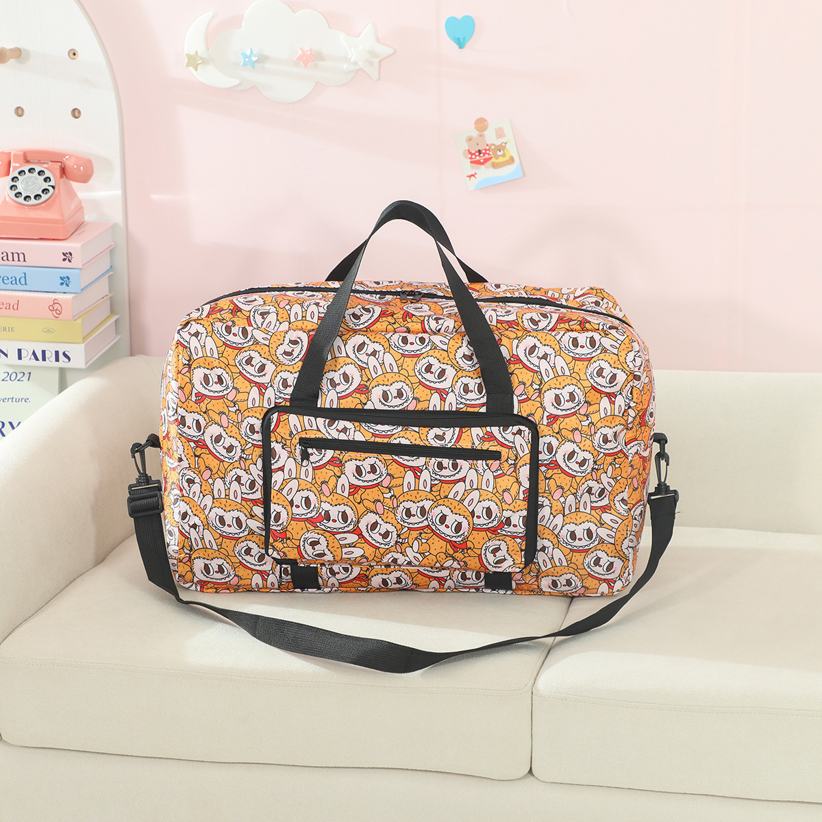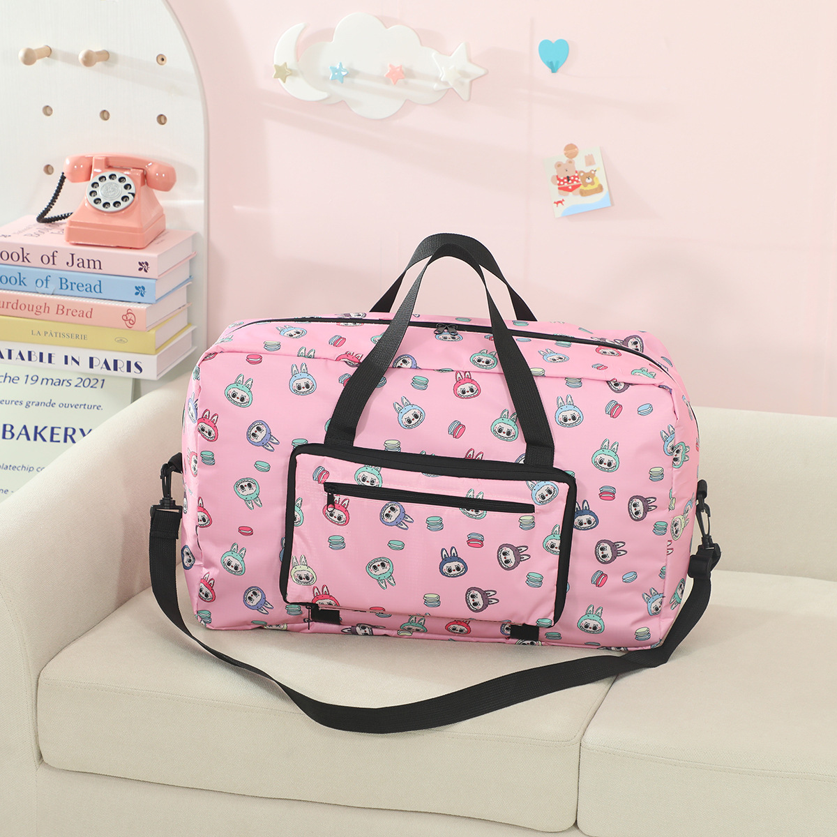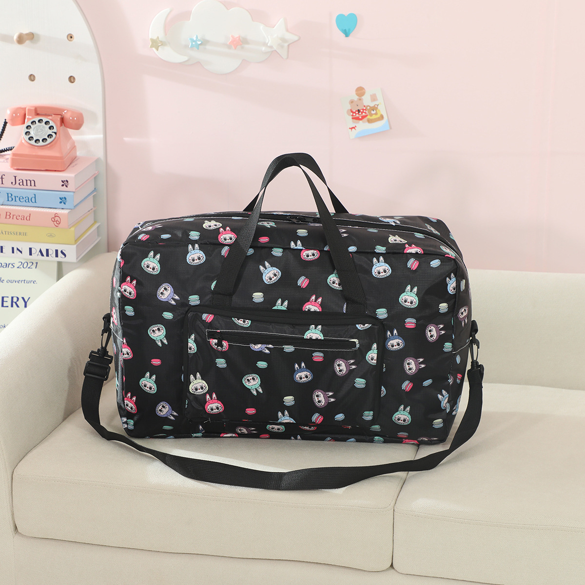 새로운 버블 마트 Labubu 휴대용 접이식 여행 가방 대용량 옥스포드 천 여행 가방 교수형 여행 케이스스토어 가기