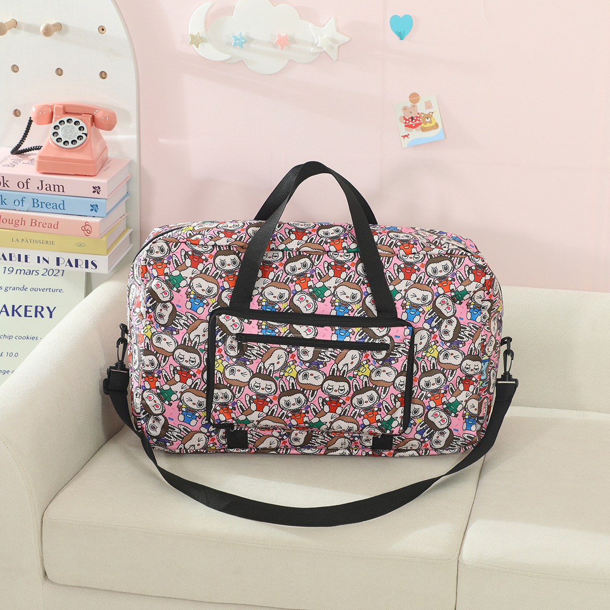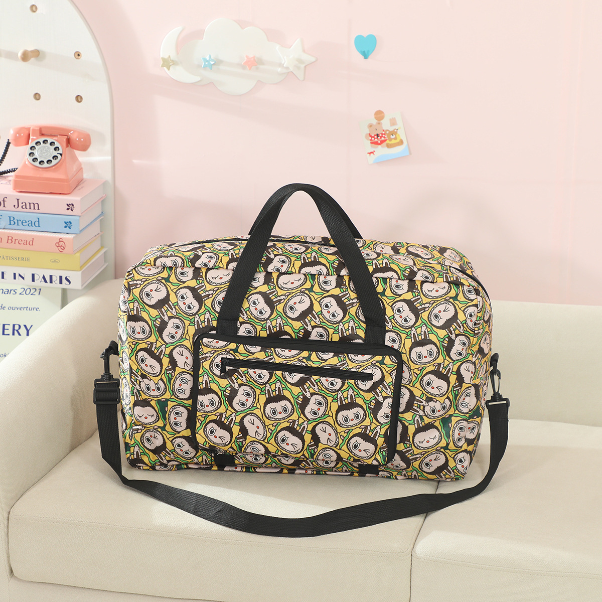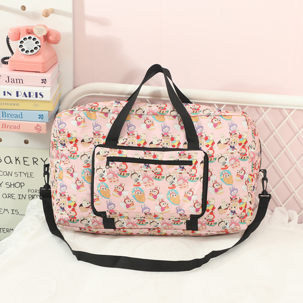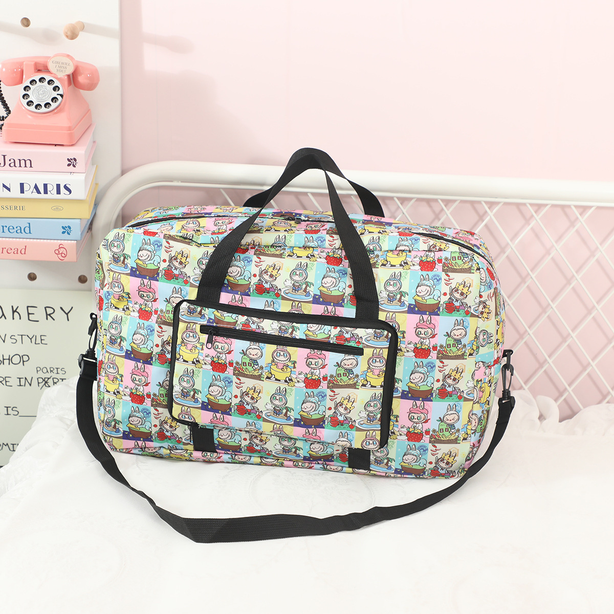 새로운 버블 마트 Labubu 휴대용 접이식 여행 가방 대용량 옥스포드 천 여행 가방 교수형 여행 케이스스토어 가기