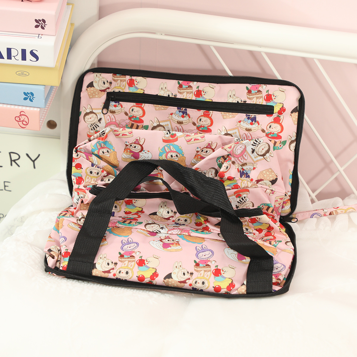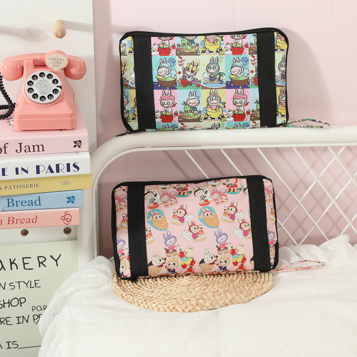 새로운 버블 마트 Labubu 휴대용 접이식 여행 가방 대용량 옥스포드 천 여행 가방 교수형 여행 케이스