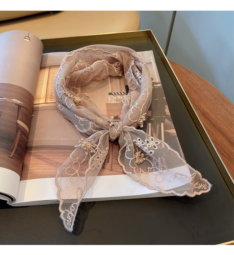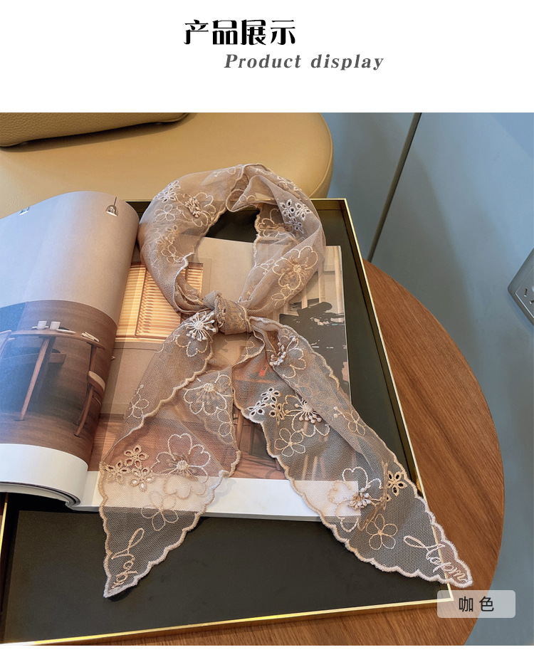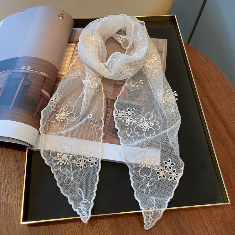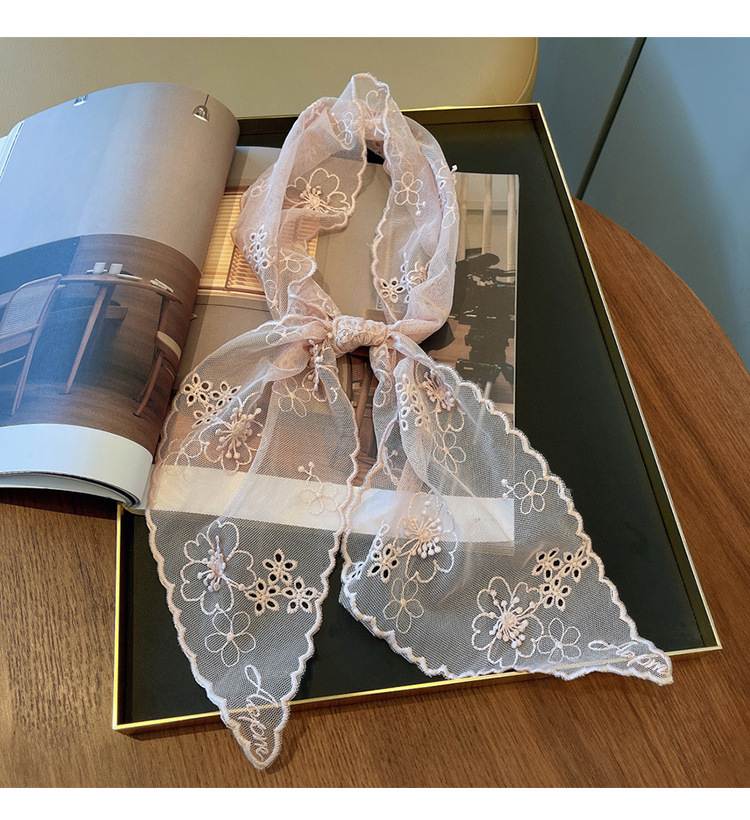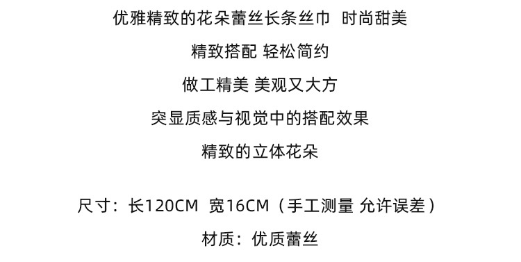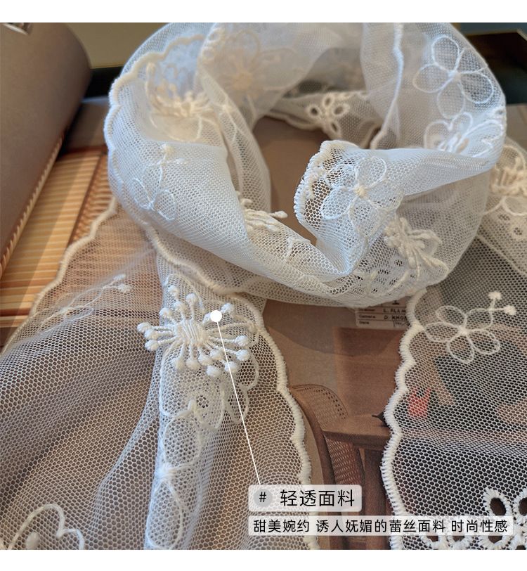立体浮雕刺绣蕾丝长条丝巾绣花百搭装饰小领巾衬衫搭配围巾春款女