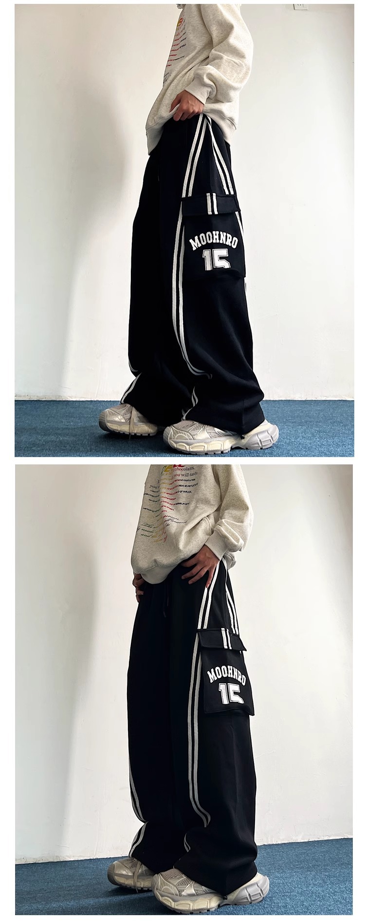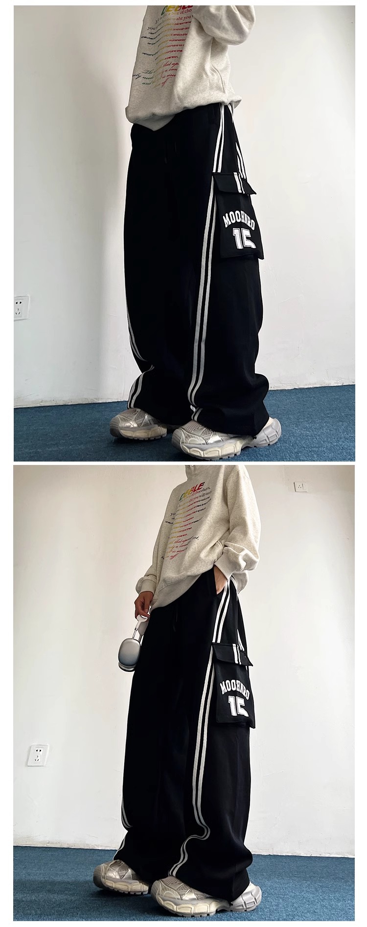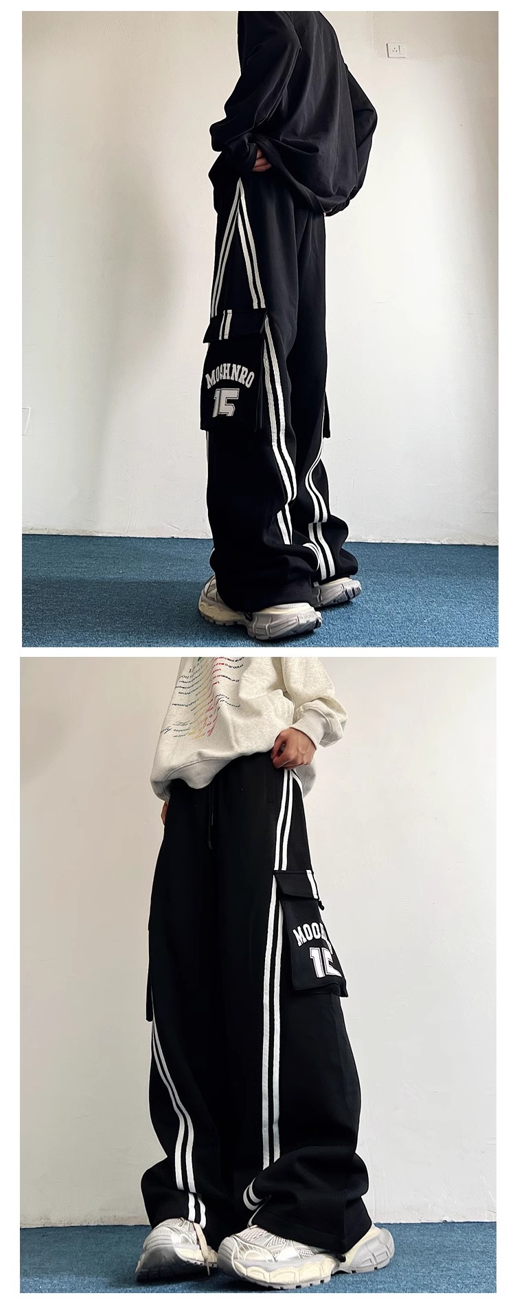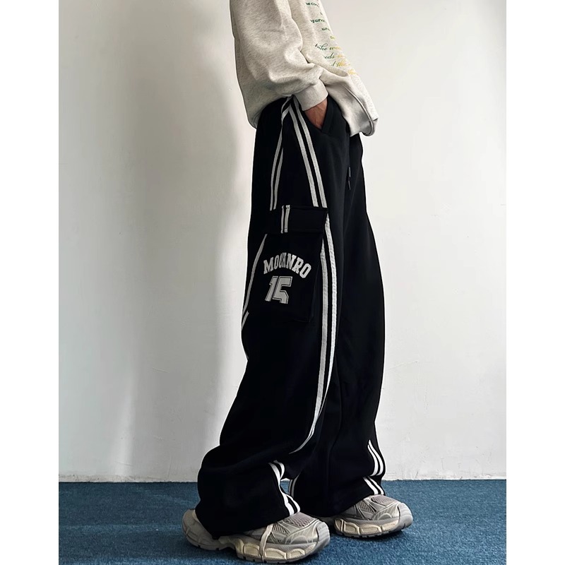 줄무늬 바지 남성 2025 년 봄과 가을 새로운 대형 포켓 미국 패션 브랜드 스마트 느슨한 스트레이트 캐주얼 바지스토어 가기