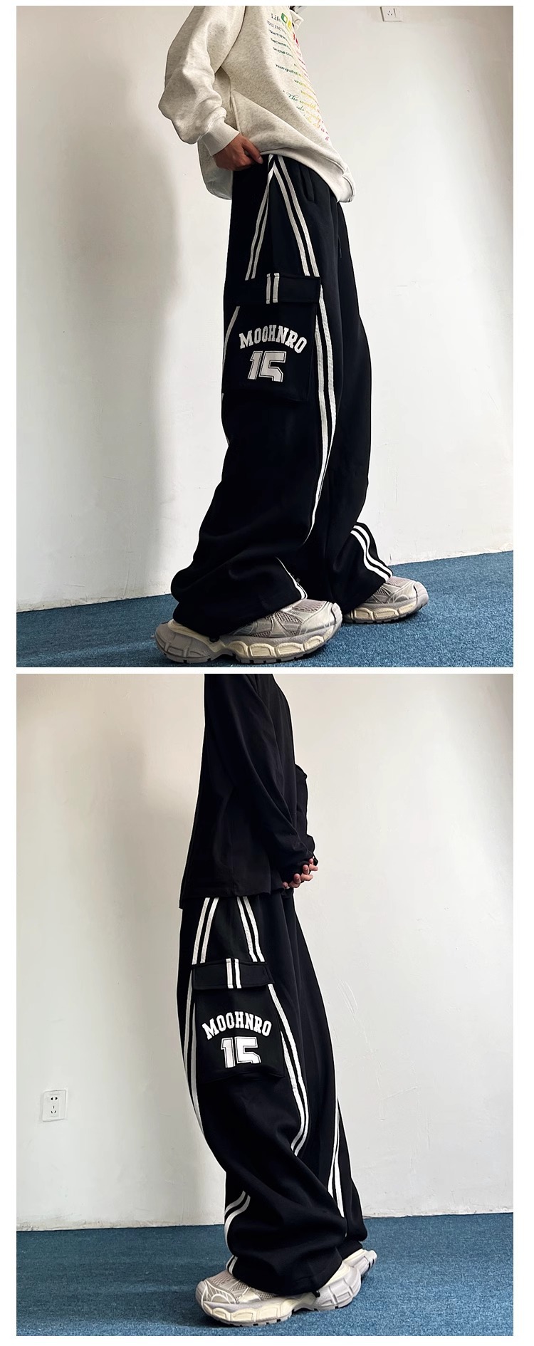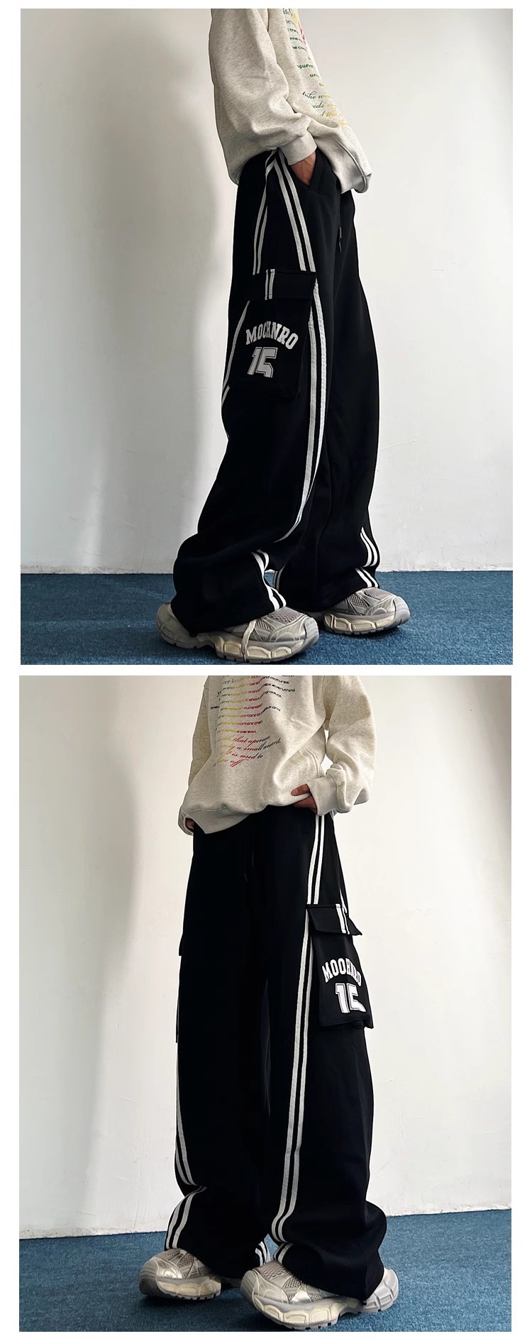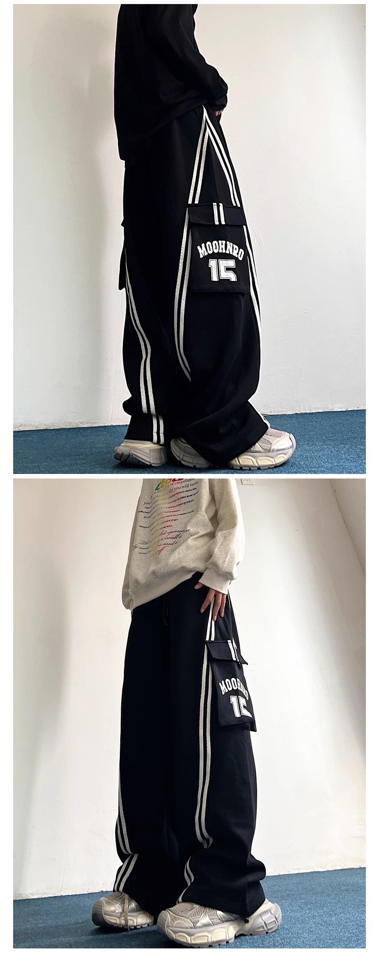 줄무늬 바지 남성 2025 년 봄과 가을 새로운 대형 포켓 미국 패션 브랜드 스마트 느슨한 스트레이트 캐주얼 바지스토어 가기