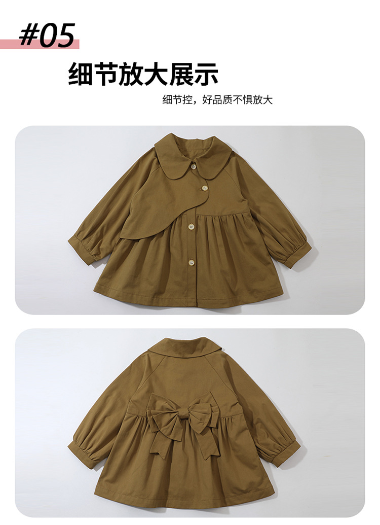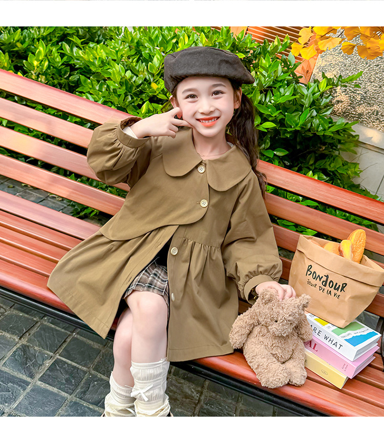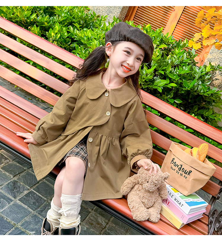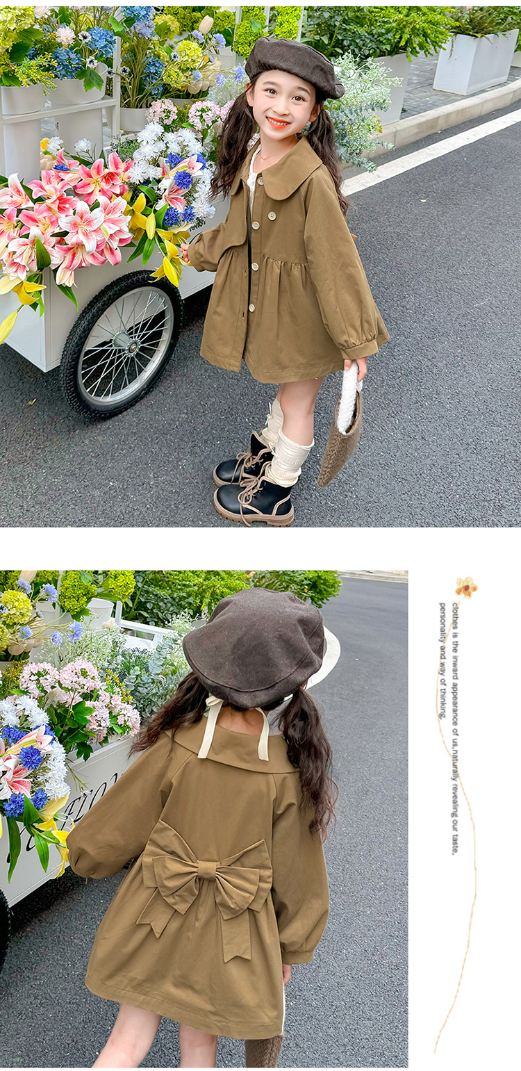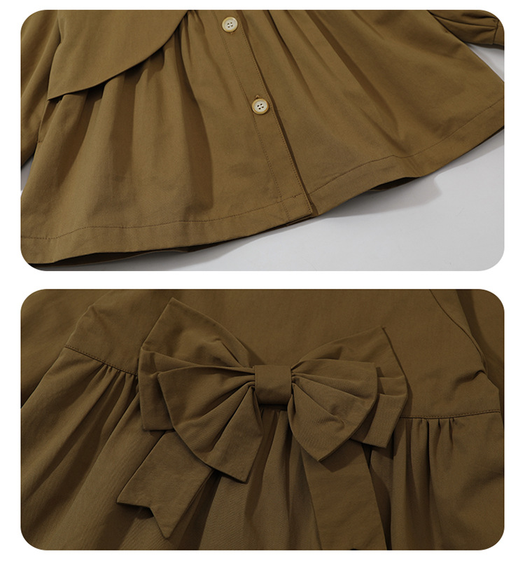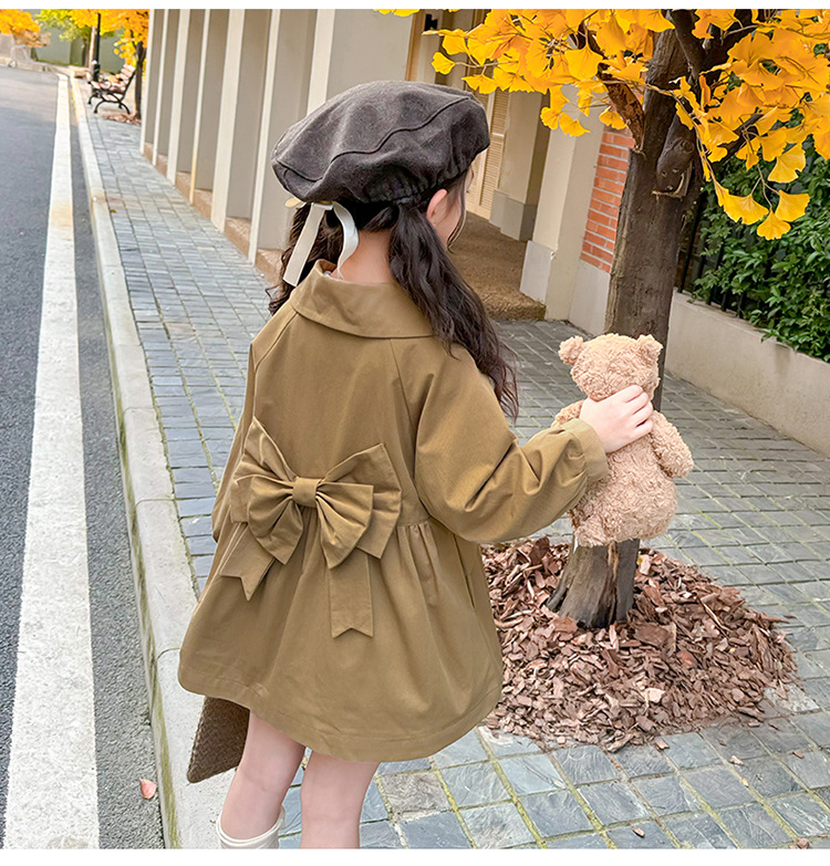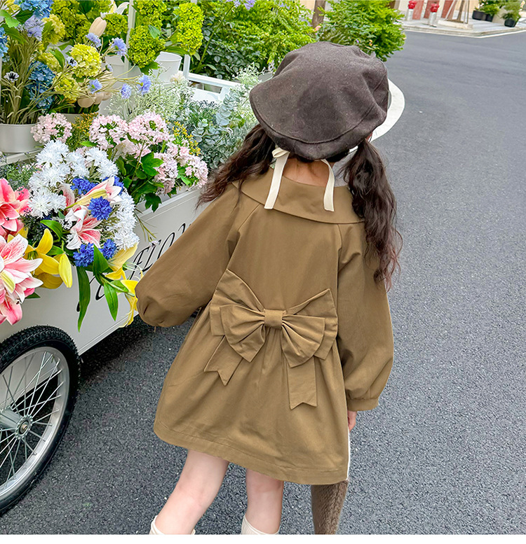 소녀 코트 봄과 가을 2025 새로운 어린이 세련 된 패셔너블 탑 아기 소녀 중간 길이의 보우 코트스토어 가기