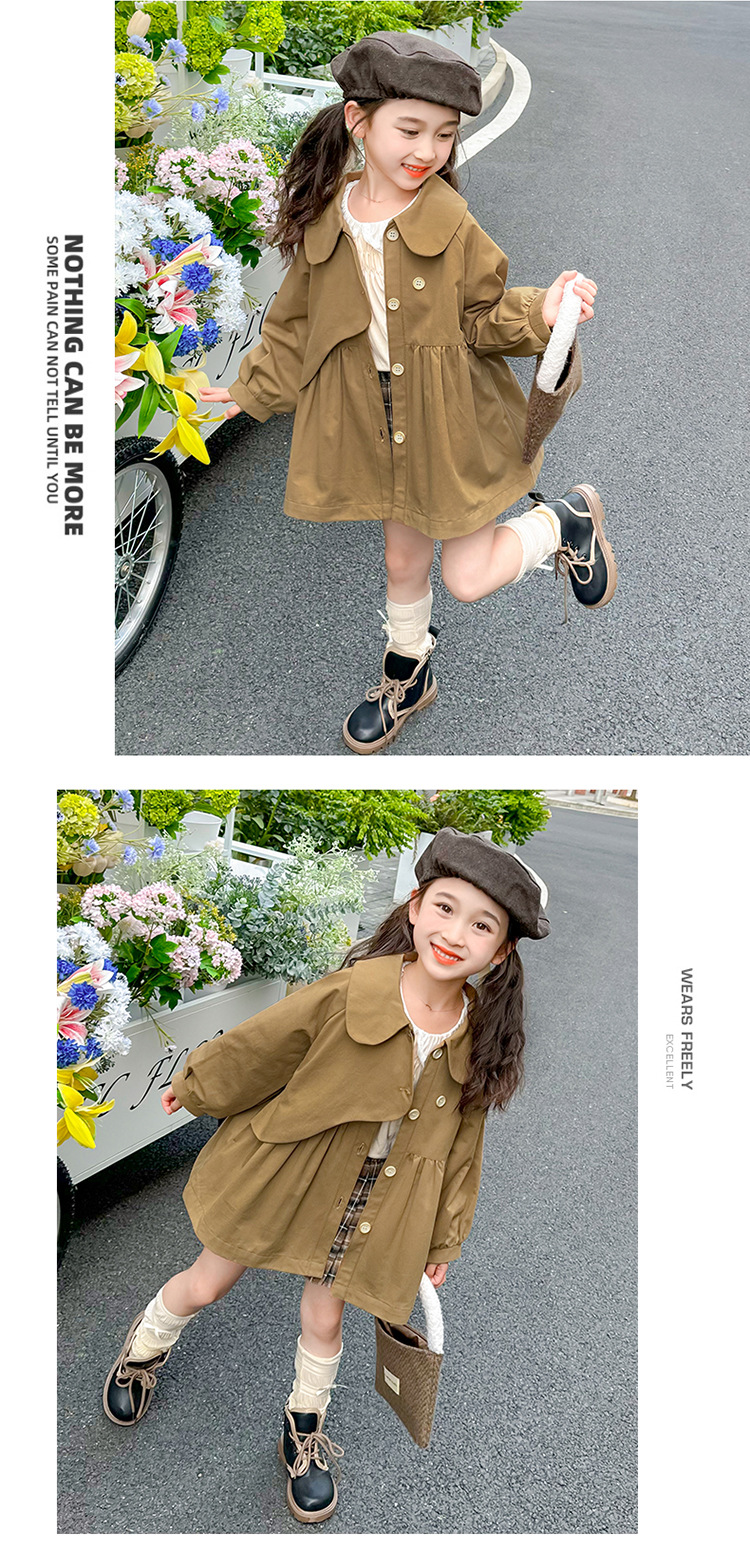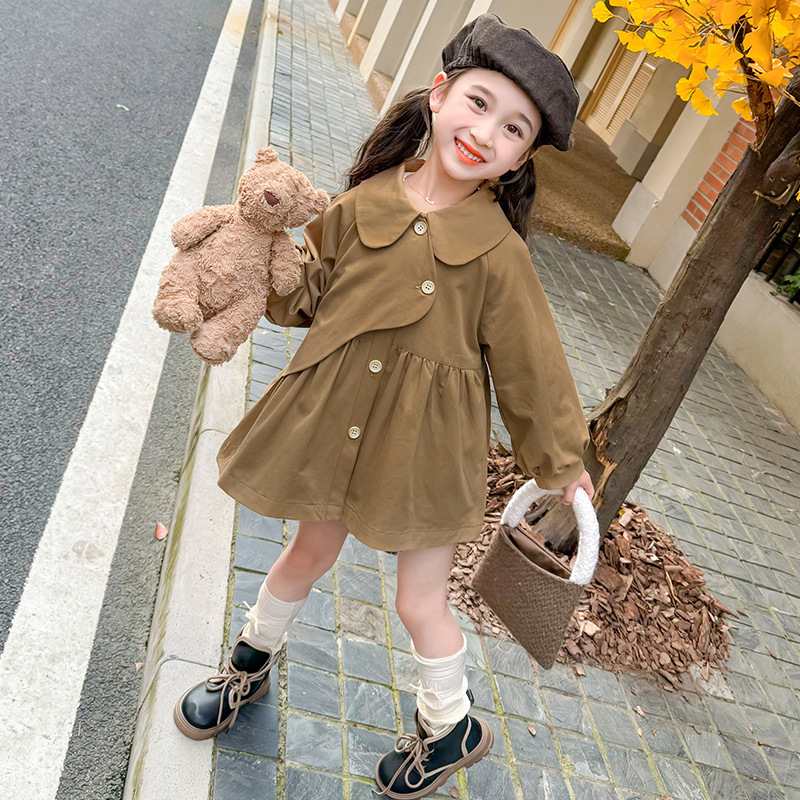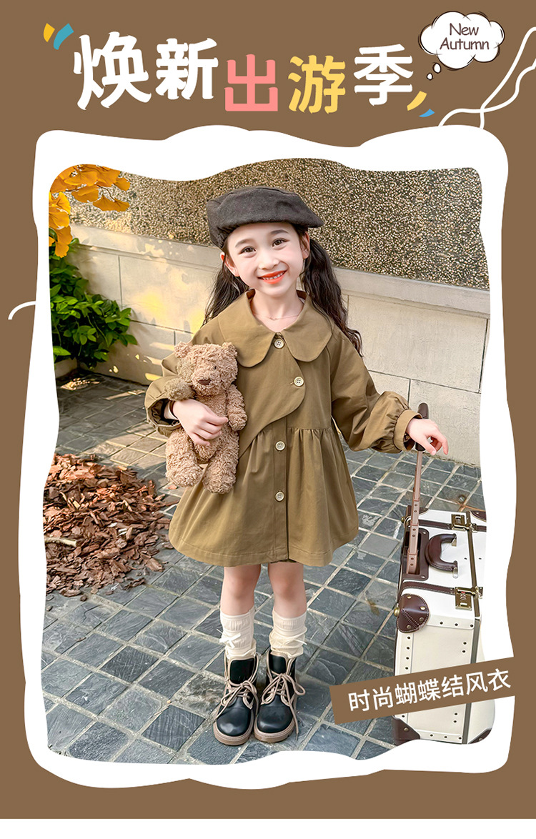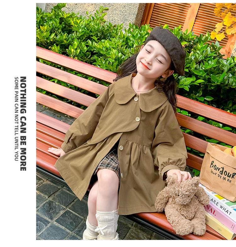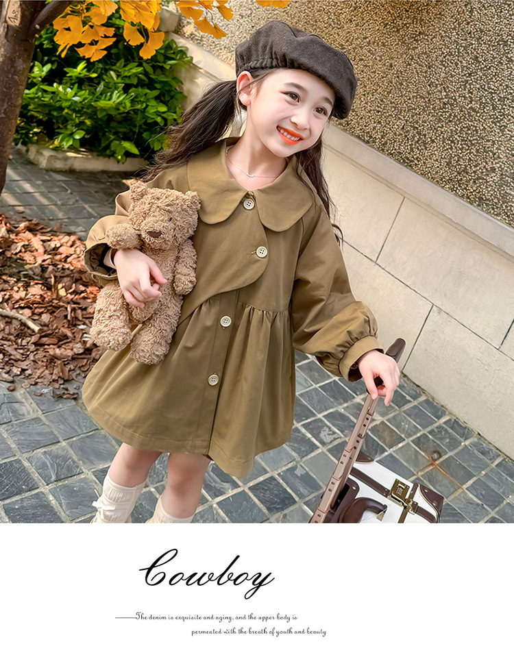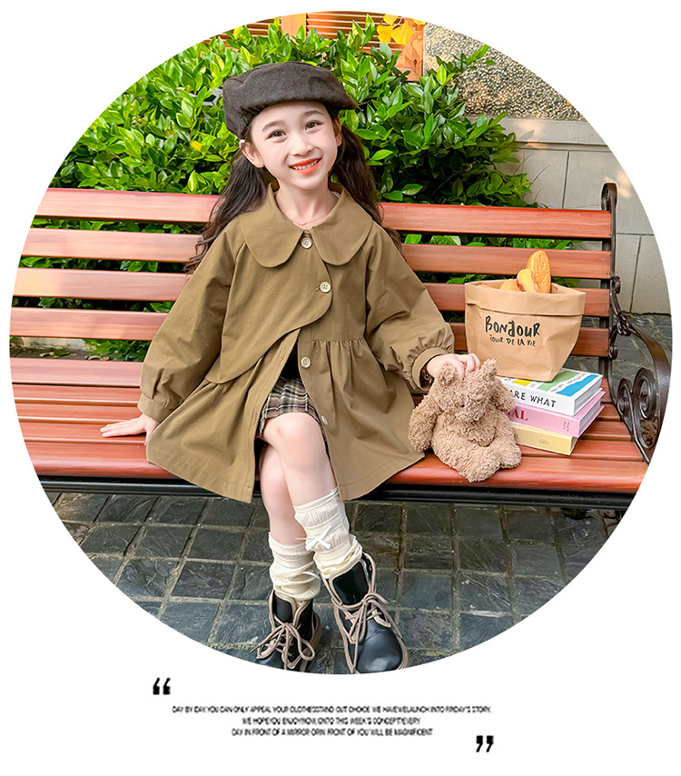 소녀 코트 봄과 가을 2025 새로운 어린이 세련 된 패셔너블 탑 아기 소녀 중간 길이의 보우 코트스토어 가기