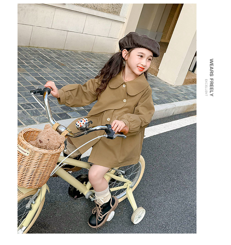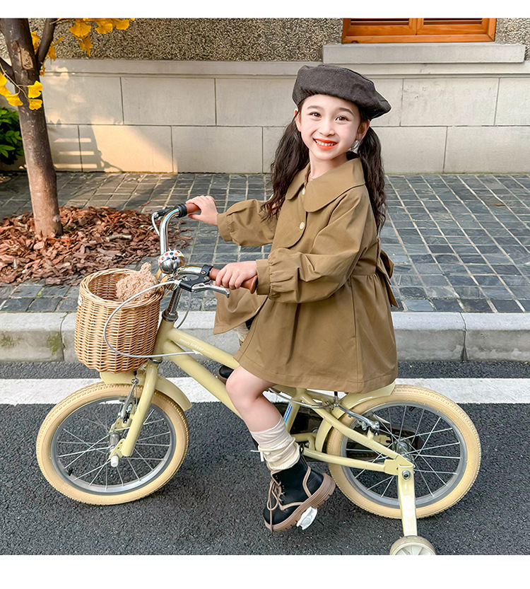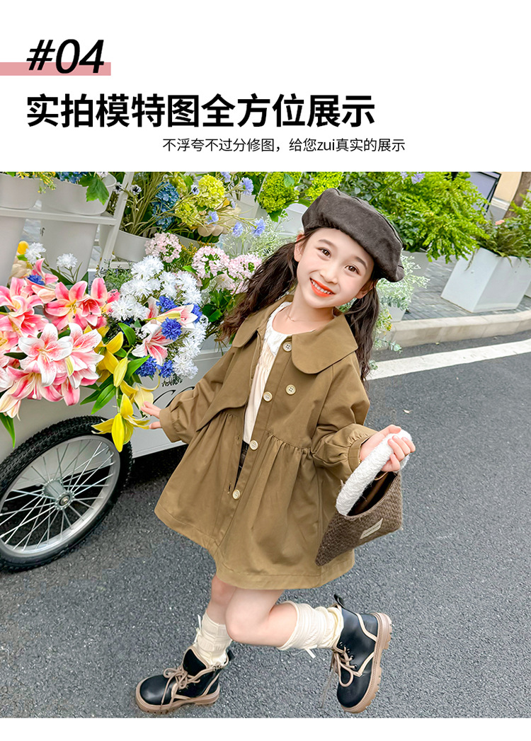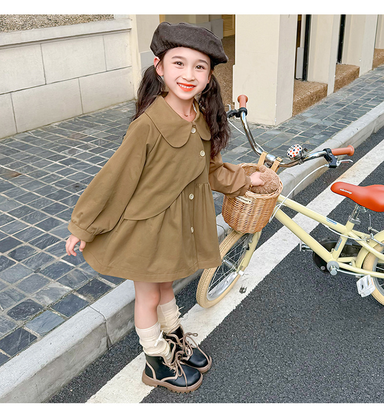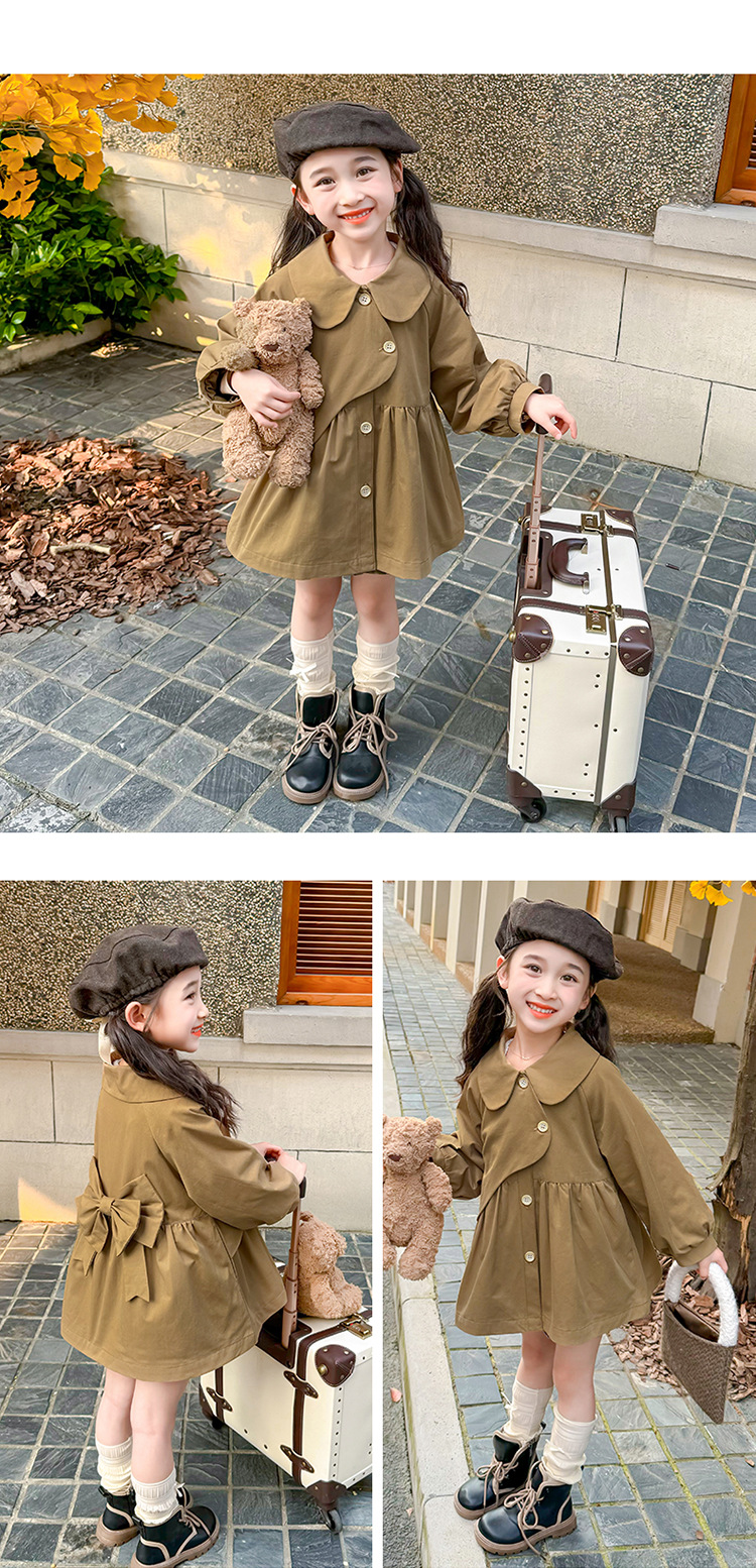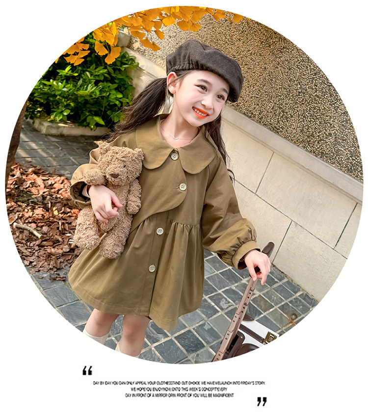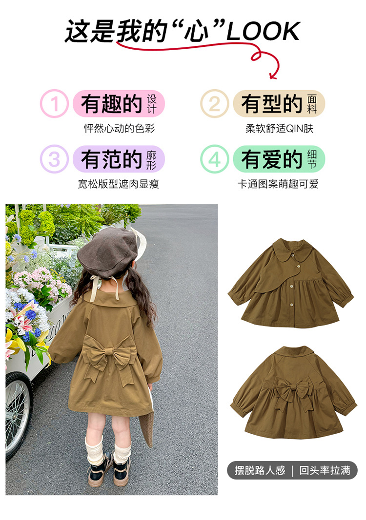 소녀 코트 봄과 가을 2025 새로운 어린이 세련 된 패셔너블 탑 아기 소녀 중간 길이의 보우 코트스토어 가기