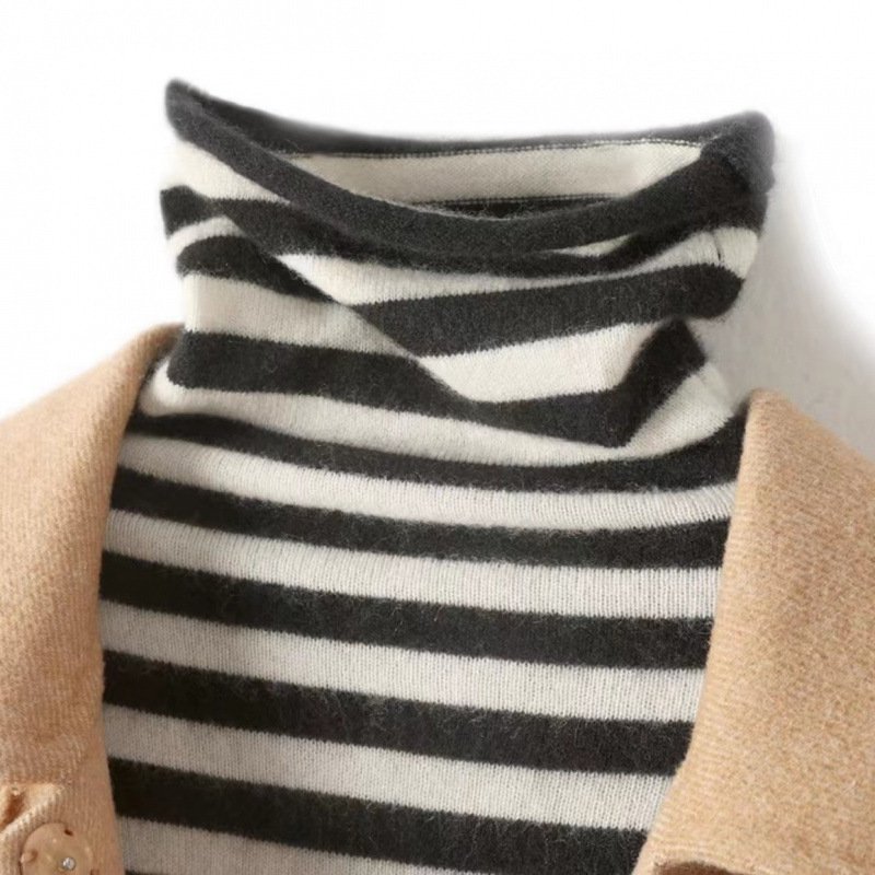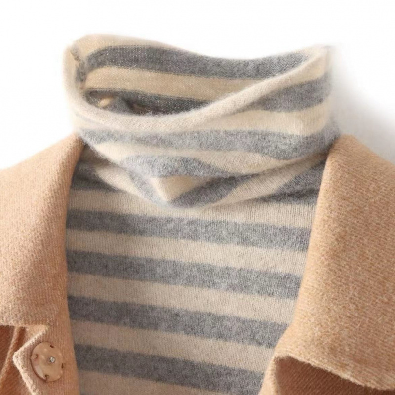 가벼운 럭셔리 소프트 왁스 하이 칼라 베이스 셔츠 여성용 긴팔 스트라이프 스타일 니트 올매치 파일 칼라 스웨터 여성의 가을 및 겨울 내부 셔츠