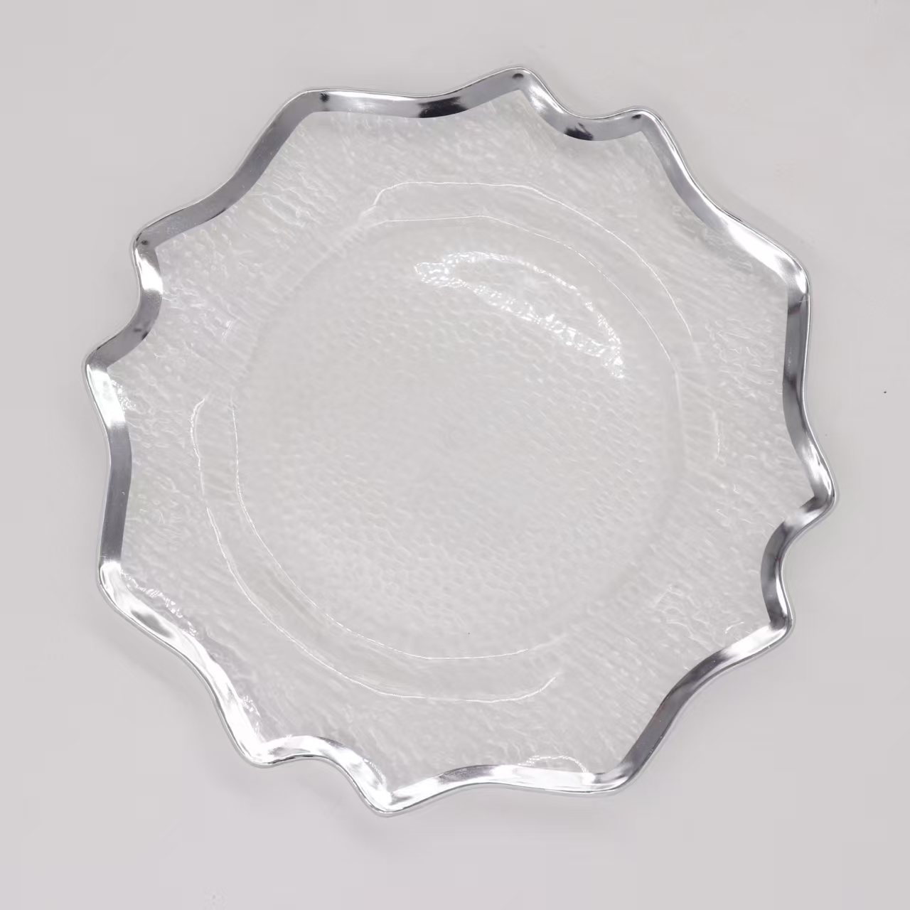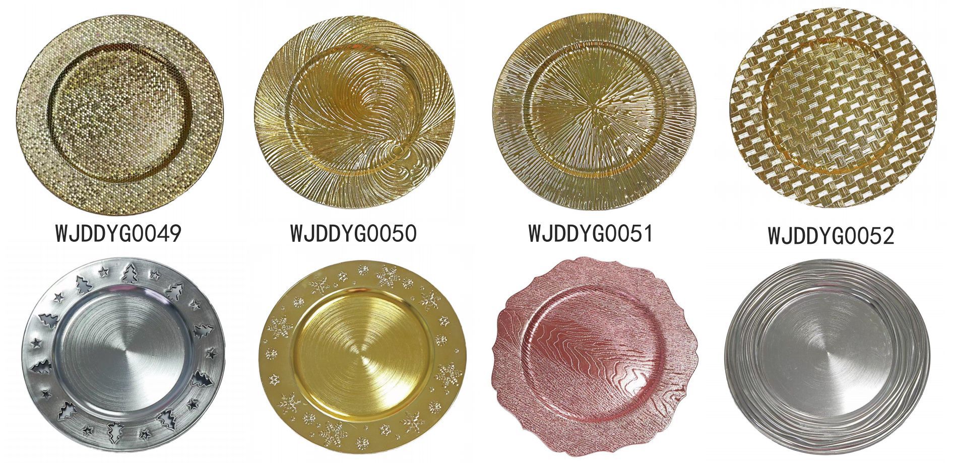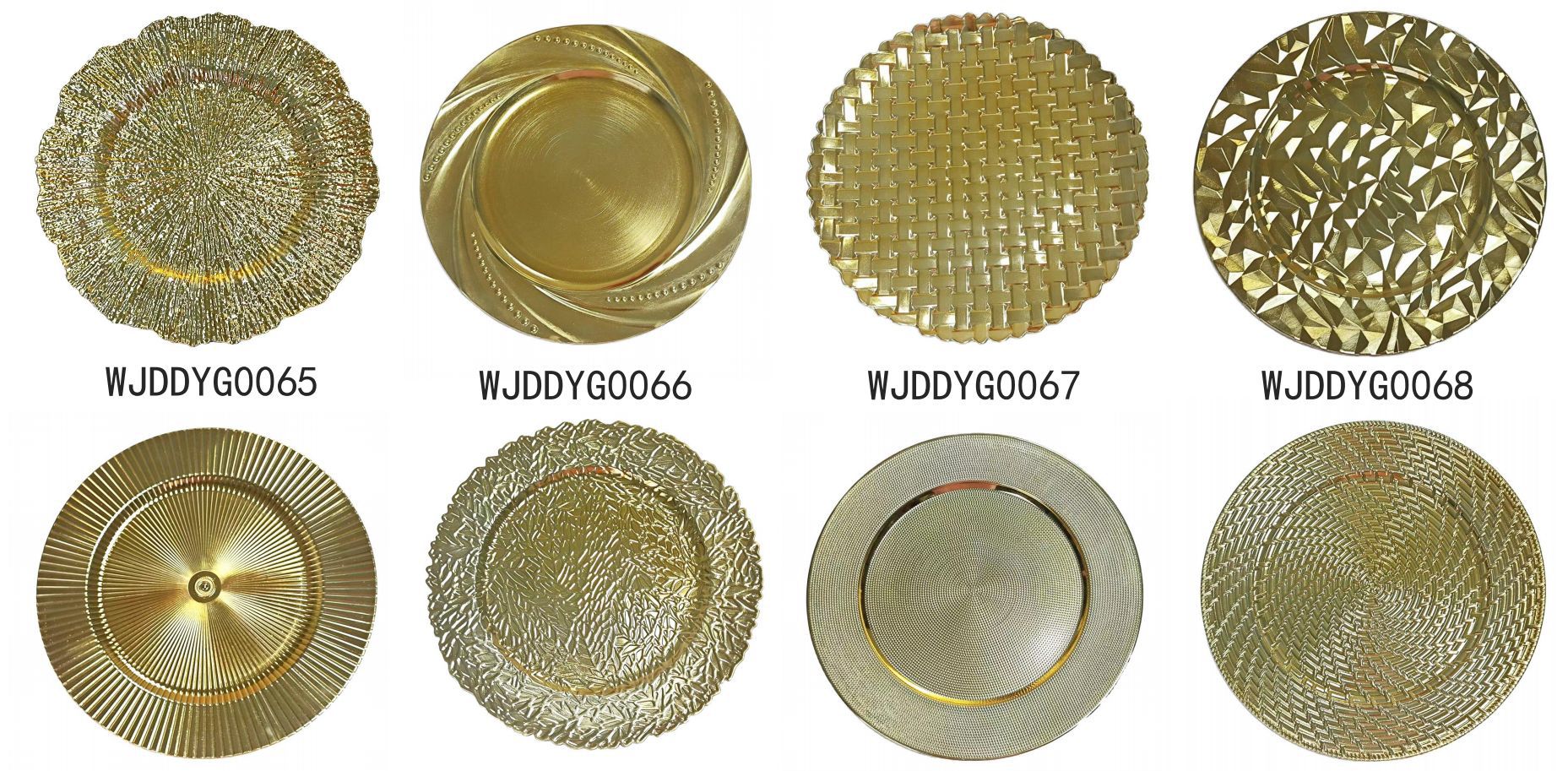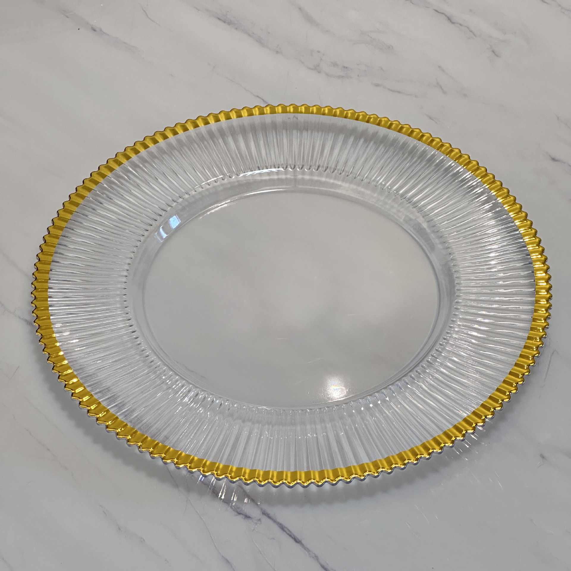 공장 직접 청동 골드 구슬 웨딩 호텔 라운드 구슬 플레이트 투명 장식 플라스틱 플레이트 충전기 플레이트