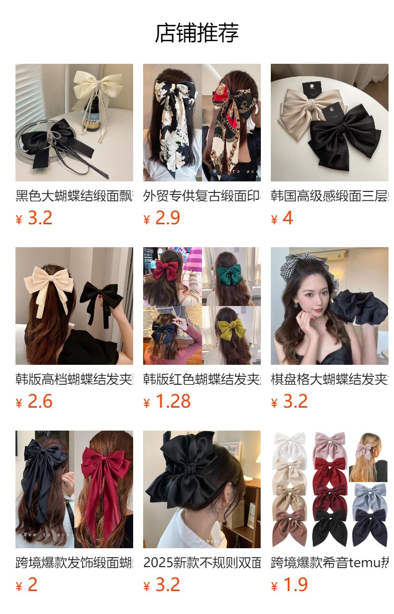 어린이 큰 활 머리핀 공주 스타일 새틴 버건디 리본 머리핀 여성용 머리 리본 머리 액세서리스토어 가기