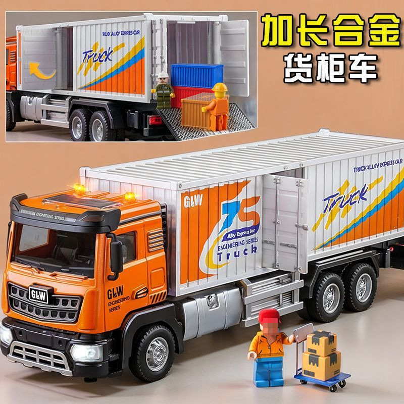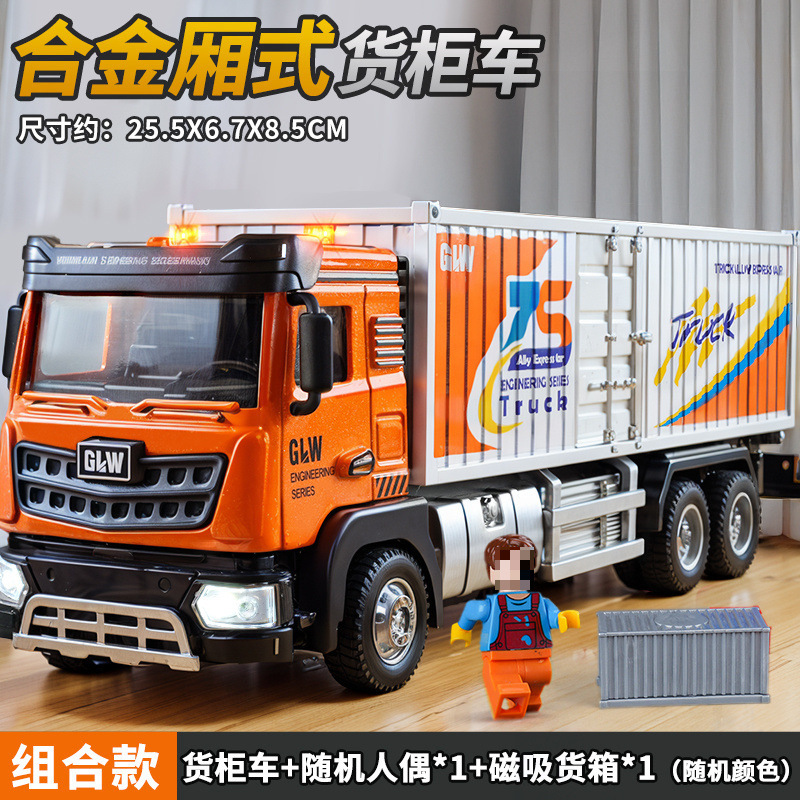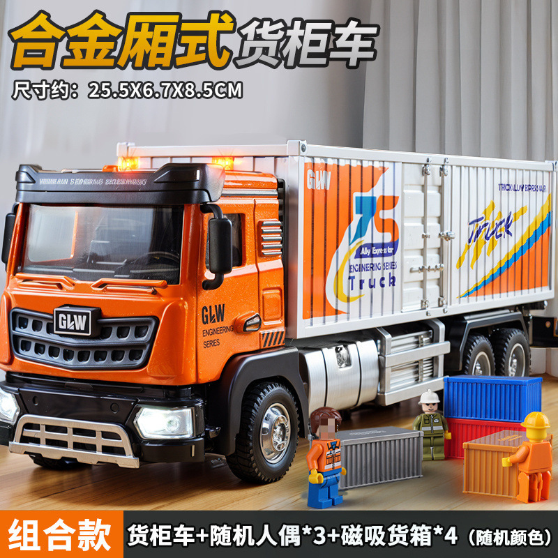 • [빨간색 및 녹색 조명 + 무료 인형 3개 + 화물 상자 4개] 확장 컨테이너 트럭 - 주황색