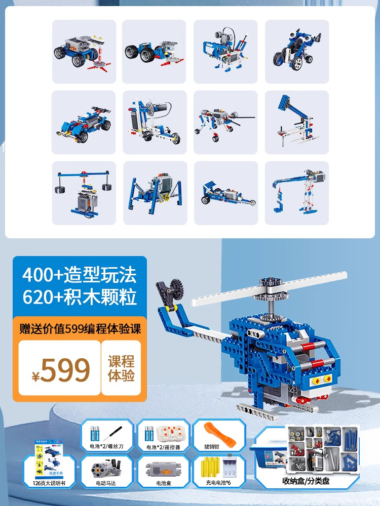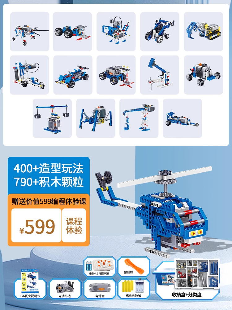 • 9686 과학 및 교육 [업그레이드 버전] 626 입자(큰 설명서, 충전식 배터리, 보관 상자, 분류 트레이 포함)