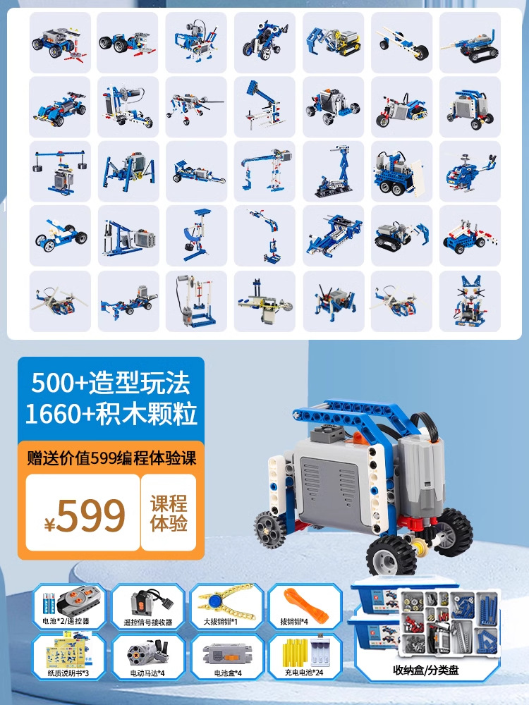 • 원격 제어 프로그래밍 9686 과학 및 교육 [업그레이드 버전] 626 입자(대형 설명서, 충전식 배터리, 보관 상자, 분류 트레이 포함)