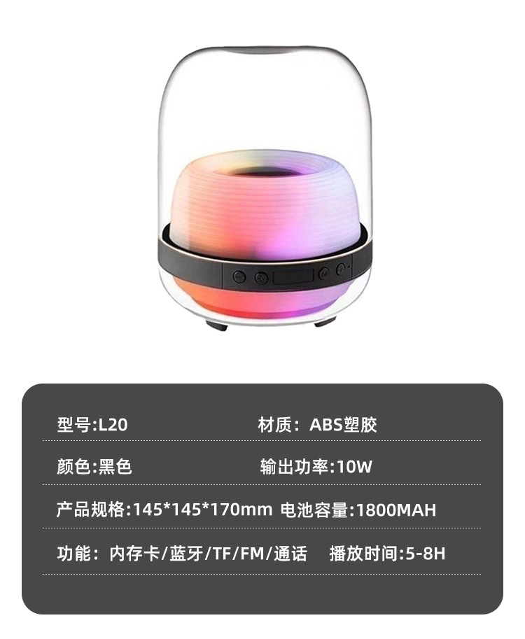 다채로운 투명 크리스탈 블루투스 스피커 L20 서브 우퍼 스마트 스테레오 화려한 조명 효과 블루투스 스테레오