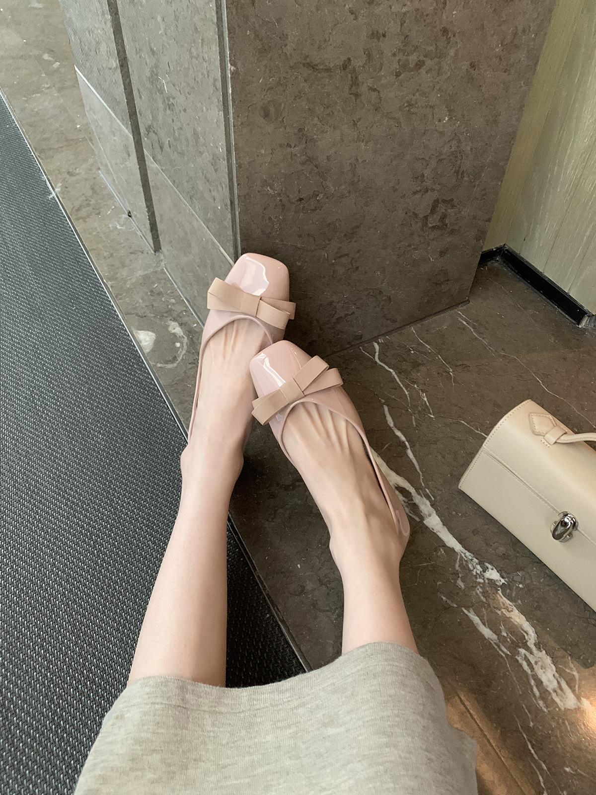 중국과 프랑스 스타일의 기질 작은 광장 머리 활 플랫 통근 모든 경기 얕은 입 캐주얼 여성을위한 올 매치 싱글 레이어 신발스토어 가기