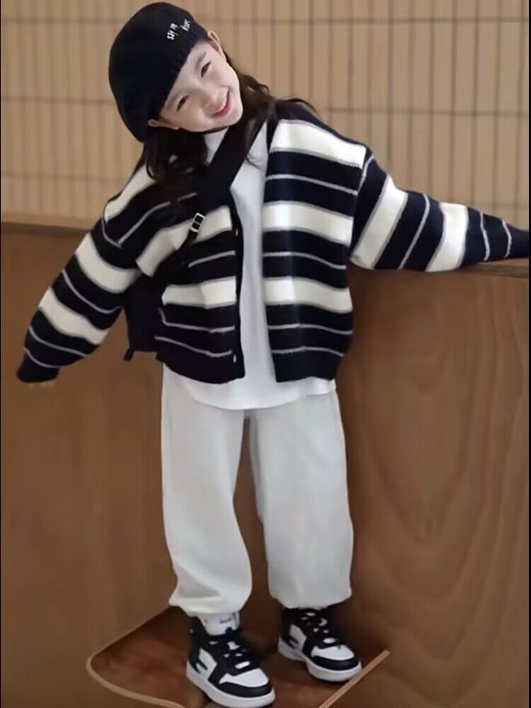 소녀 가을 니트 카디건 3 피스 세트 TikTok 폭발 어린이 스웨터 카디건 세트 패션 인터넷 레드 가을스토어 가기