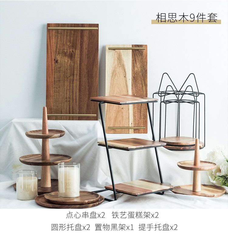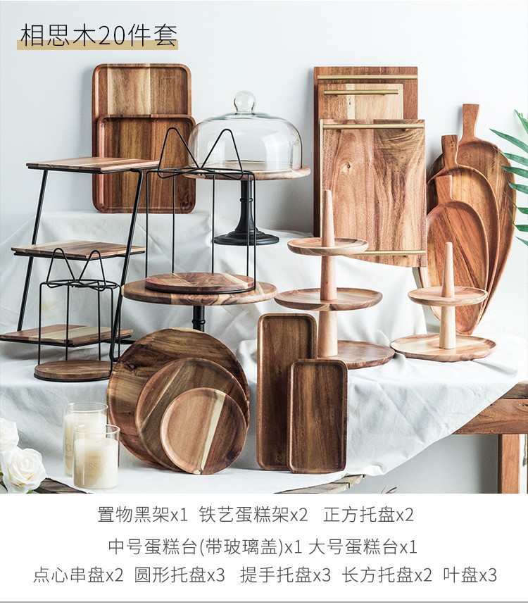 아카시아 나무 디저트 테이블 장식품 결혼식 생일 장식 소품 나무 트레이 케이크 플레이트 딤섬 랙 디스플레이 선반스토어 가기