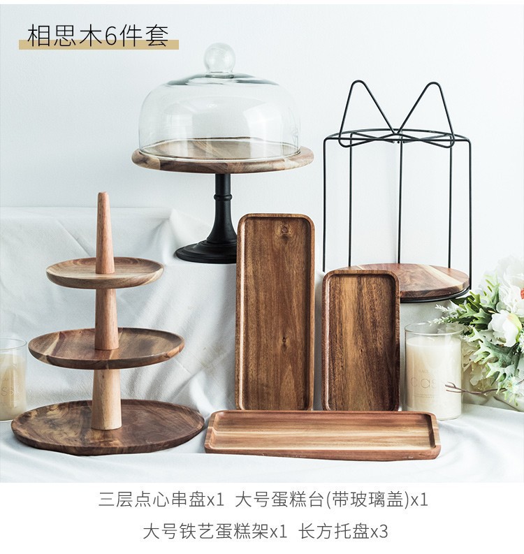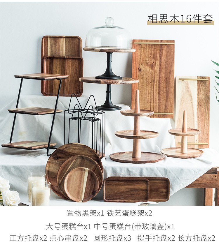 아카시아 나무 디저트 테이블 장식품 결혼식 생일 장식 소품 나무 트레이 케이크 플레이트 딤섬 랙 디스플레이 선반