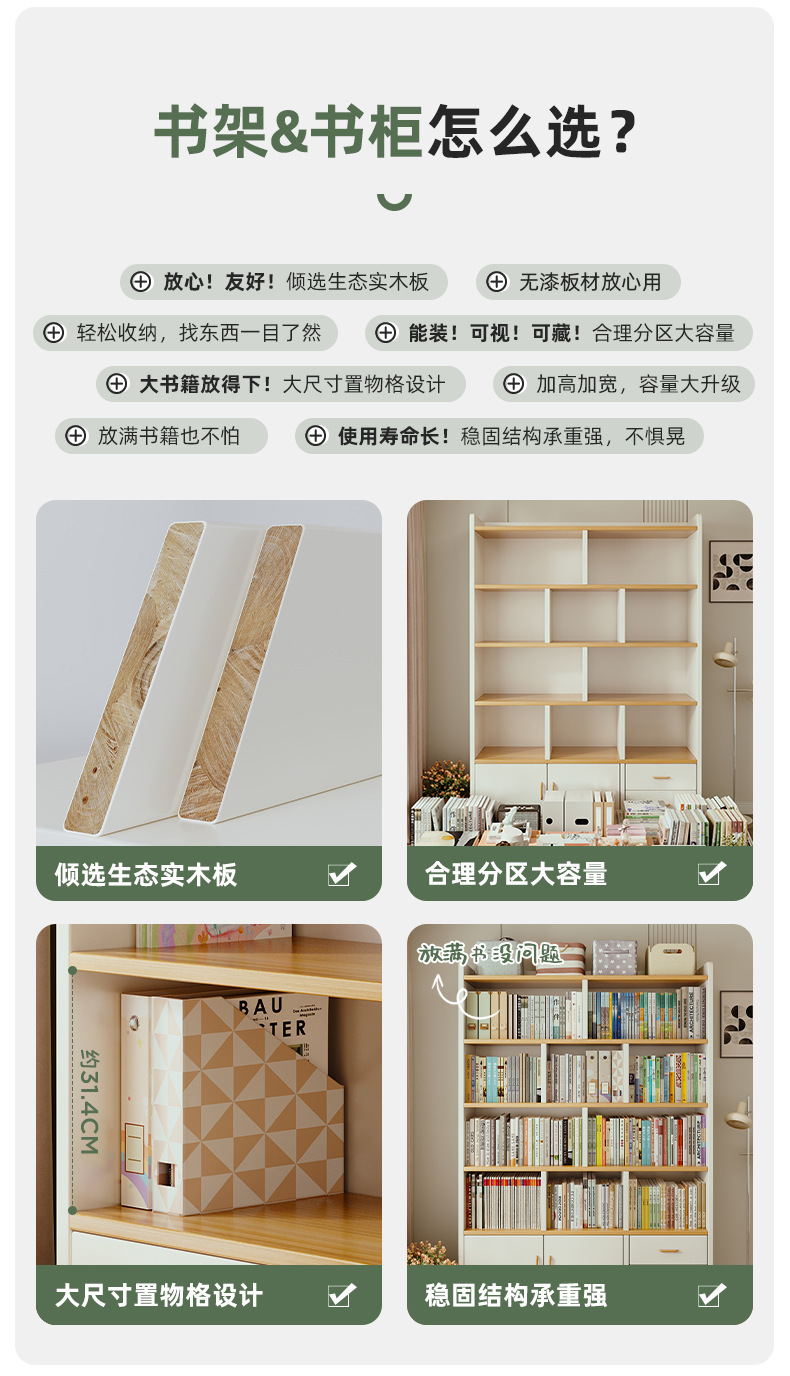 B ^ t 단단한 나무 책장 바닥 랙 다층 거실 디스플레이 사물함 벽 내각 학생 가정 아이들