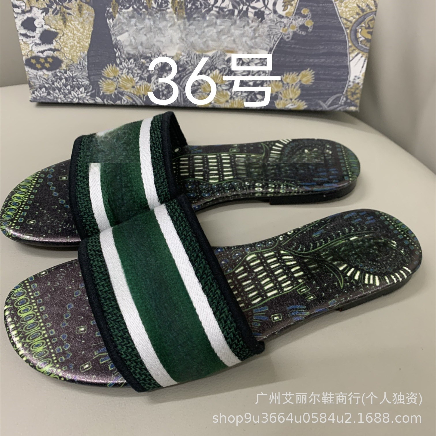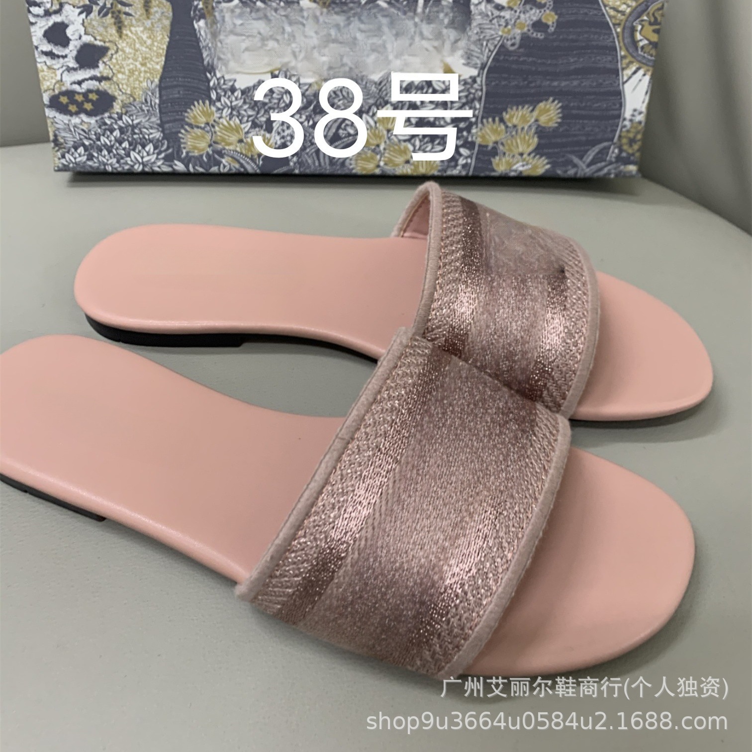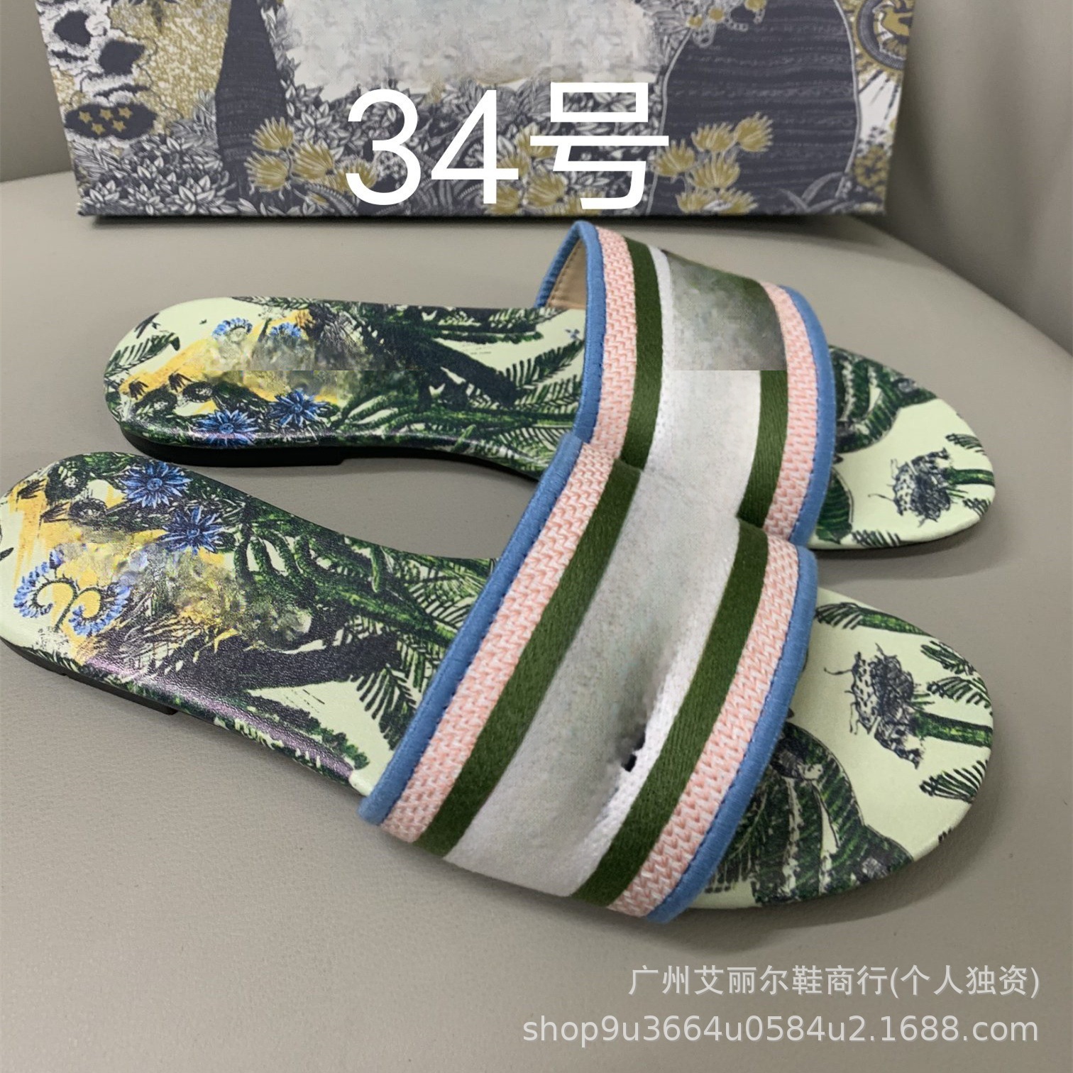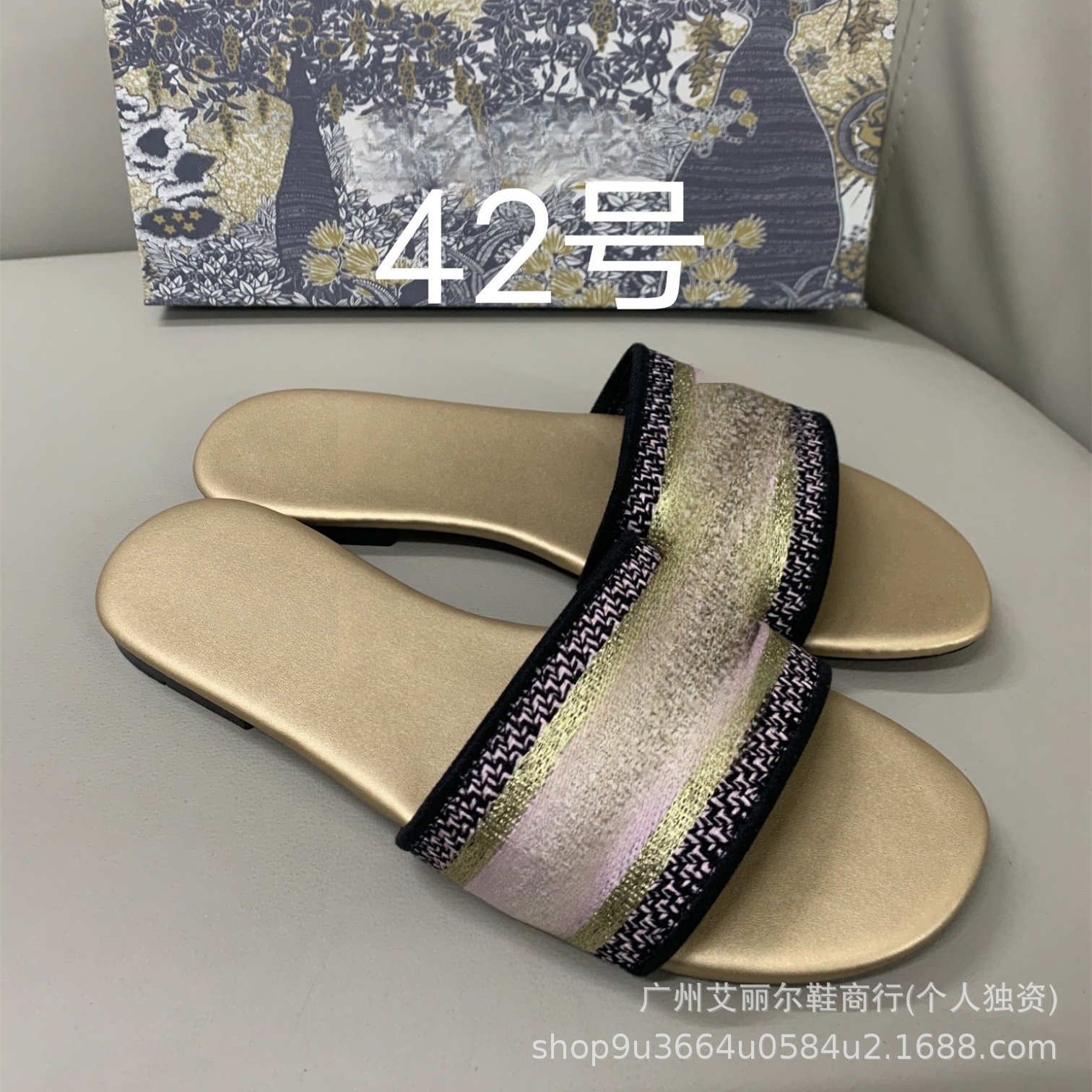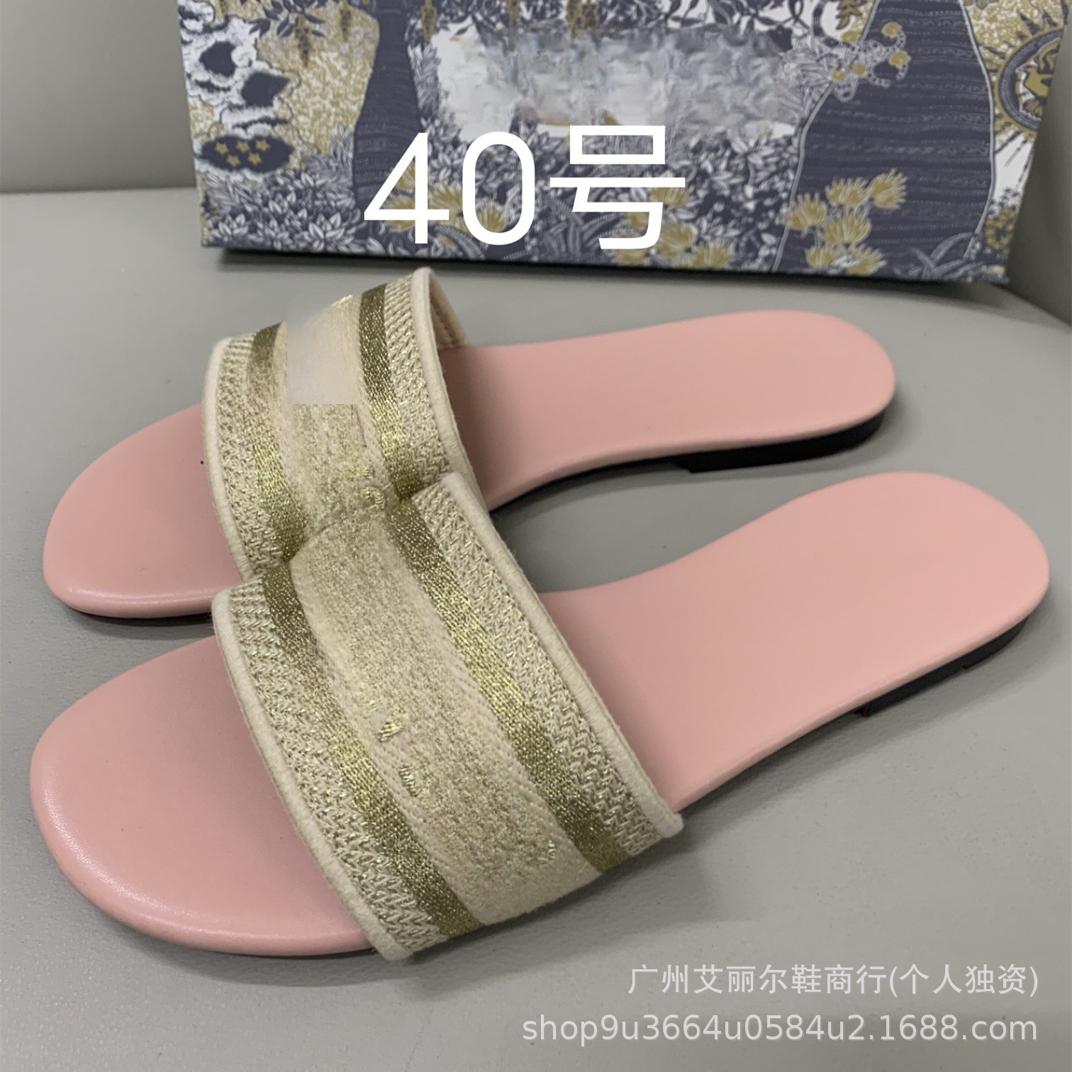 D의 플랫 슬리퍼, 여성스러운 여성화, 자카드 자수, 패셔너블한 캐주얼 샌들, 아우터용 비치 슬리퍼, 다용도