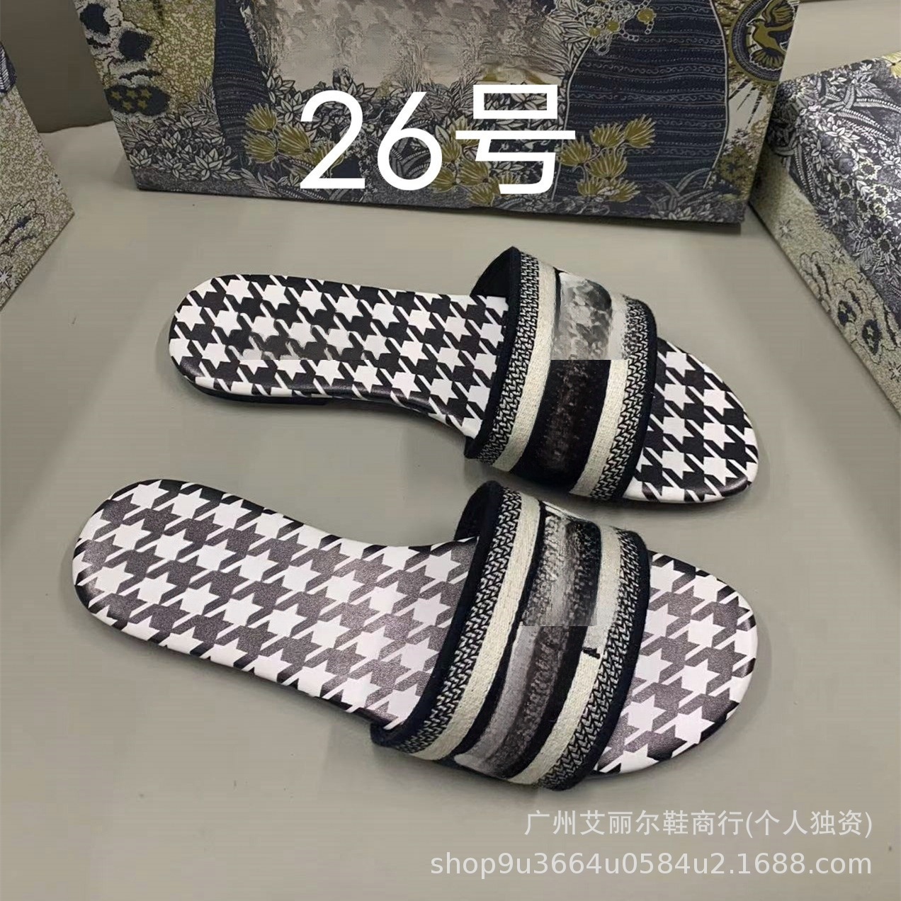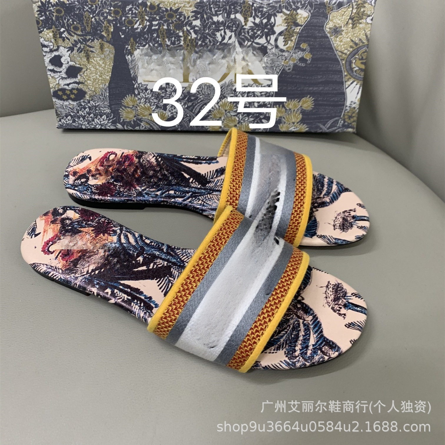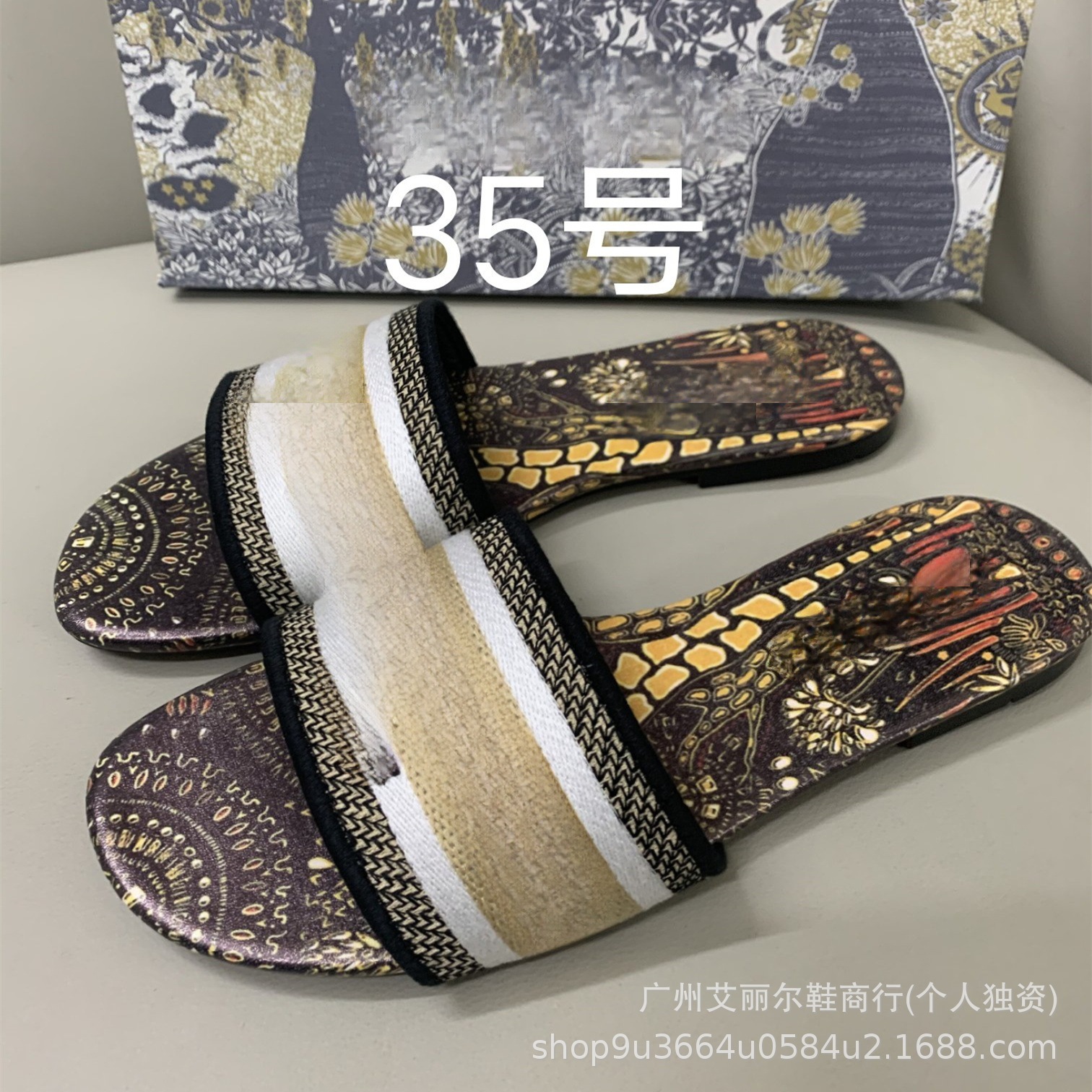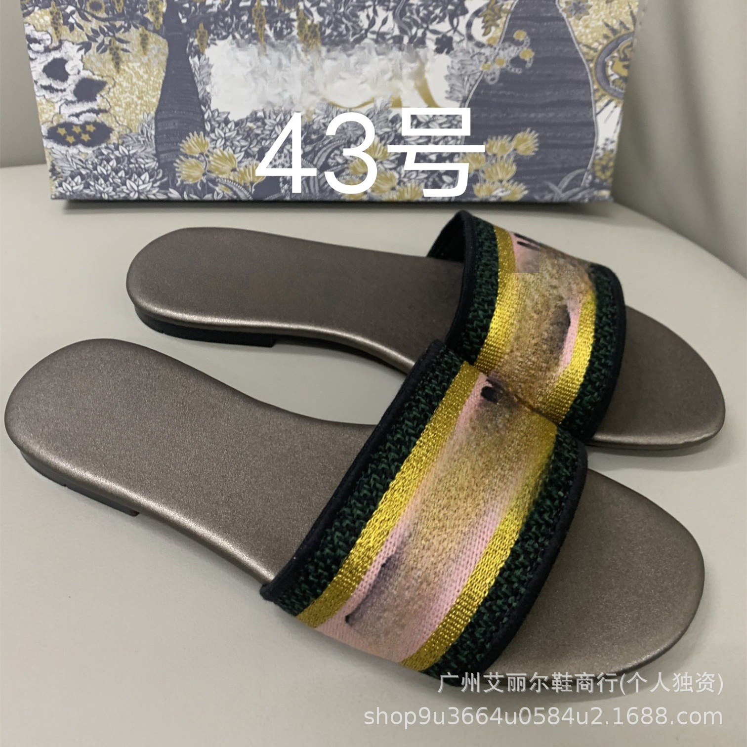 D의 플랫 슬리퍼, 여성스러운 여성화, 자카드 자수, 패셔너블한 캐주얼 샌들, 아우터용 비치 슬리퍼, 다용도