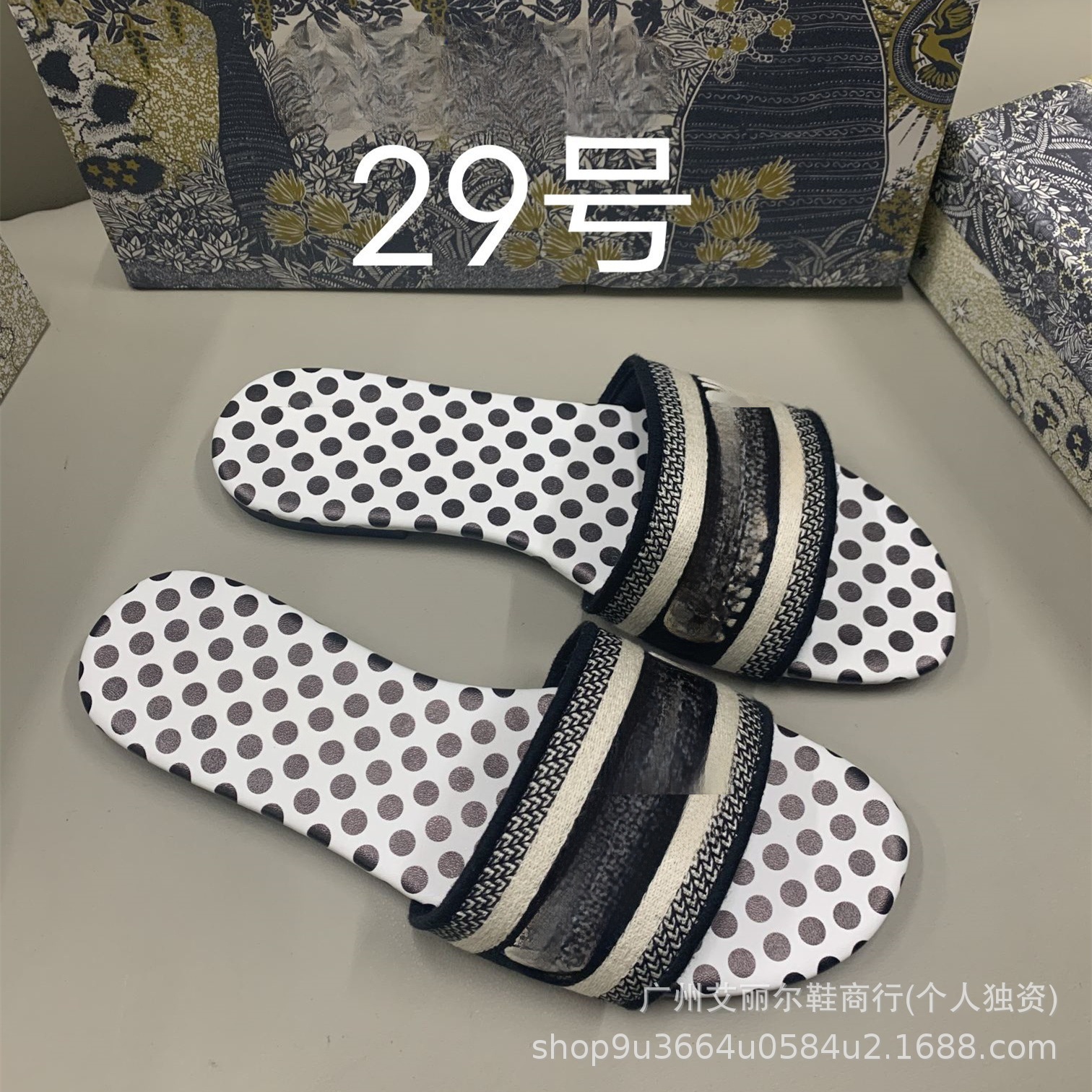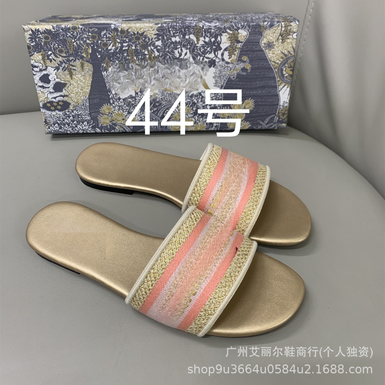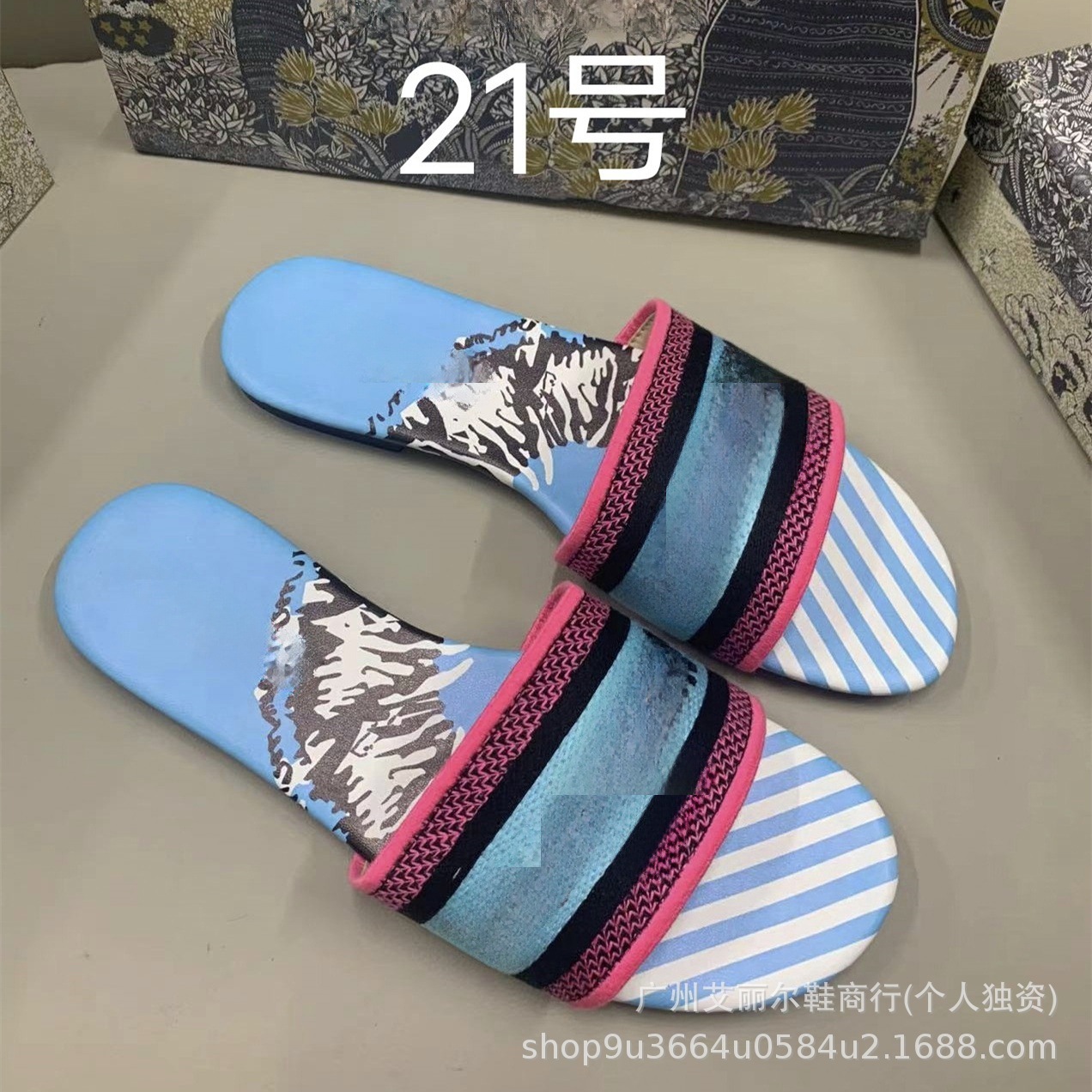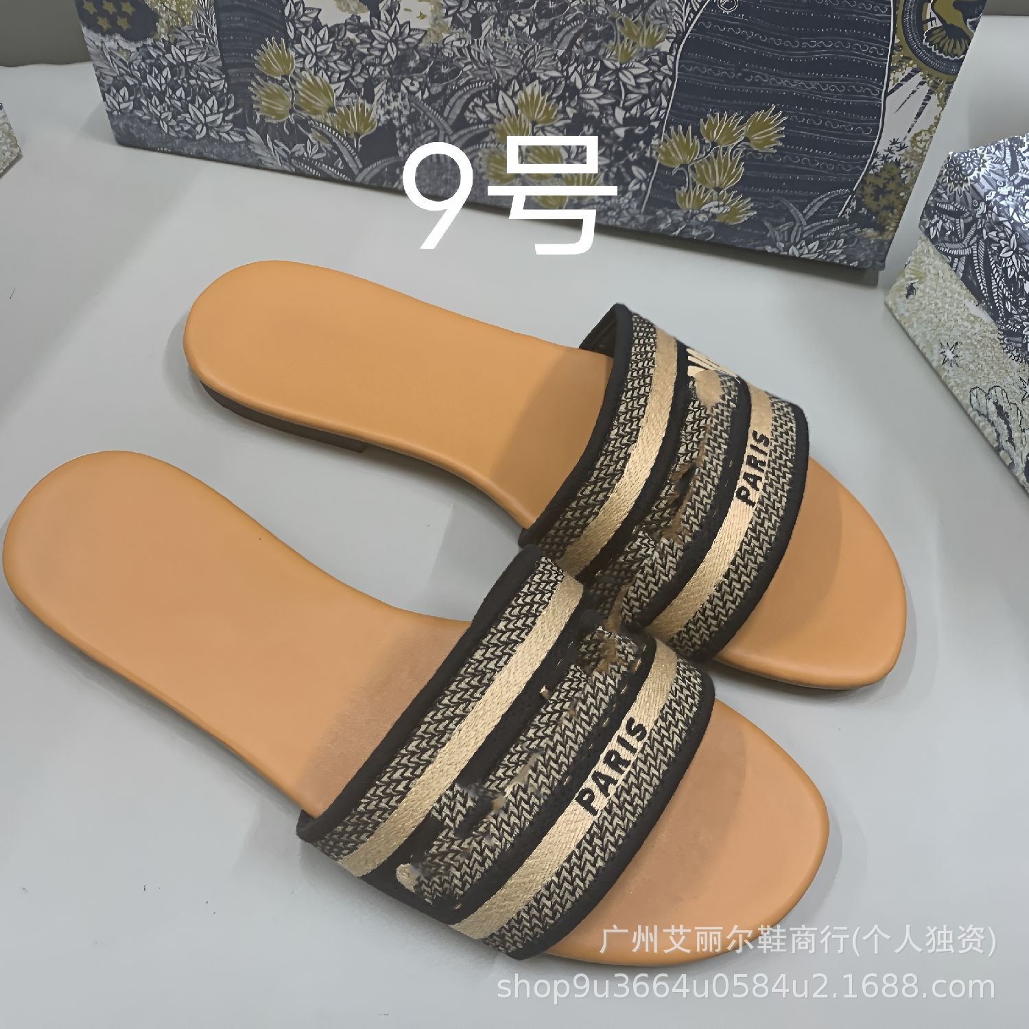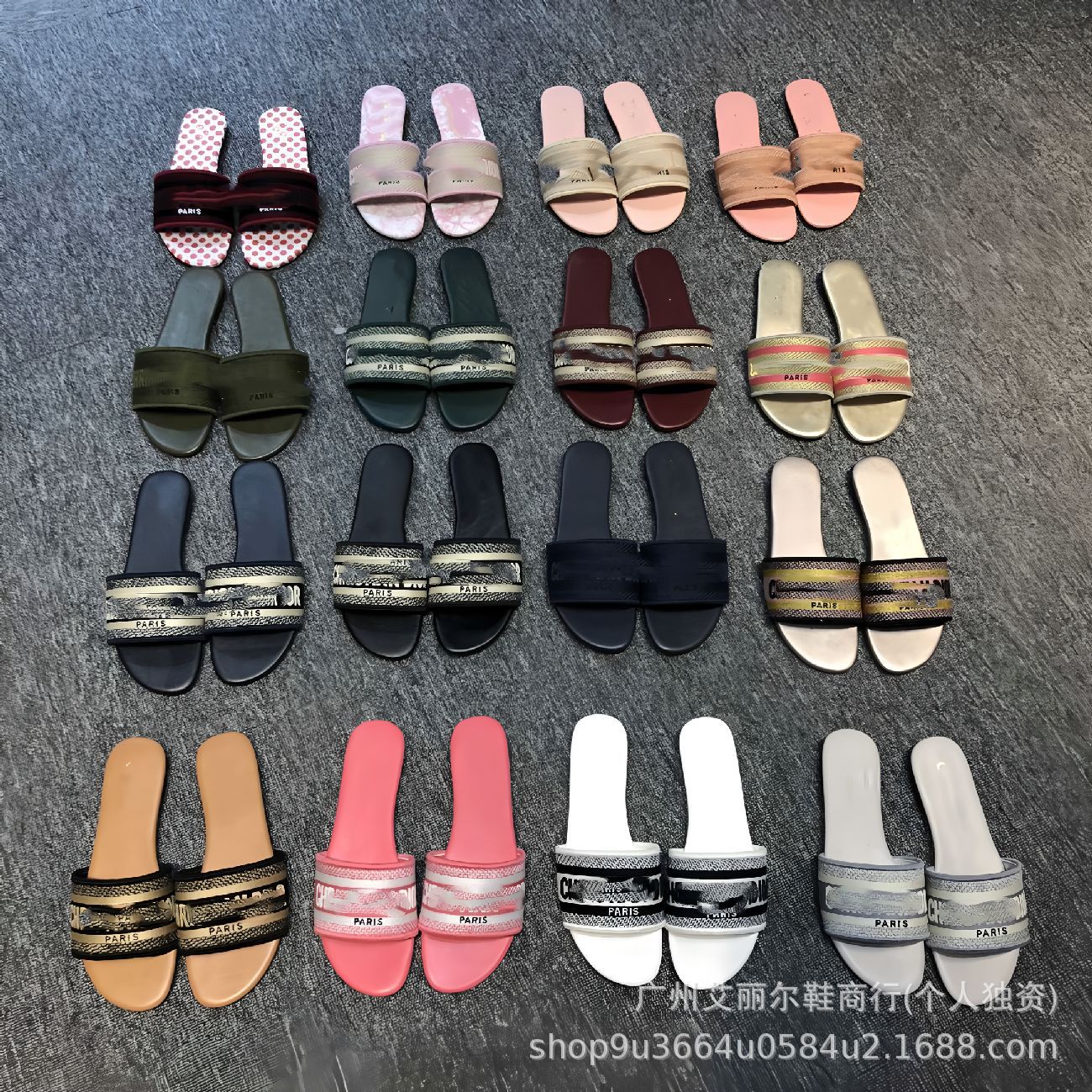 D의 플랫 슬리퍼, 여성스러운 여성화, 자카드 자수, 패셔너블한 캐주얼 샌들, 아우터용 비치 슬리퍼, 다용도