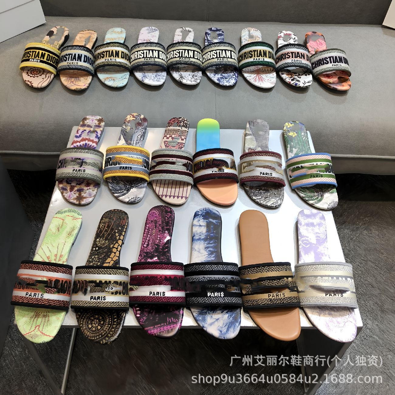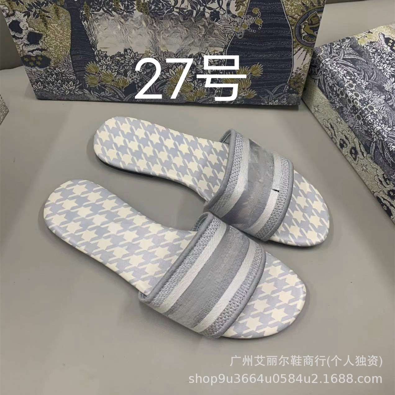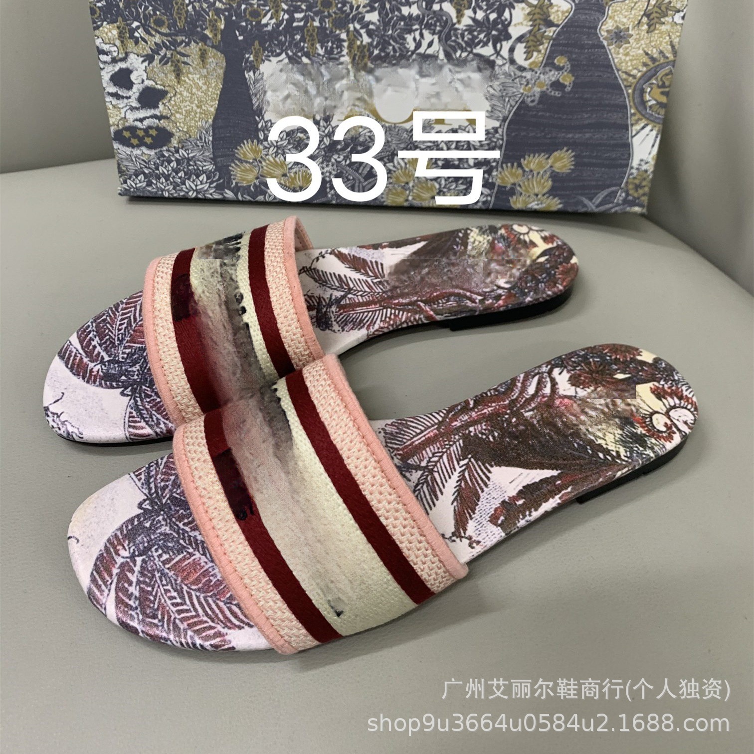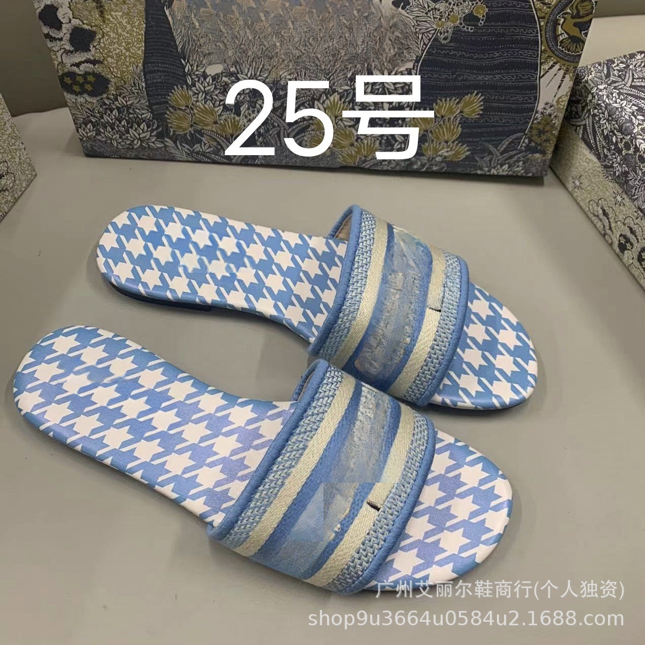 D의 플랫 슬리퍼, 여성스러운 여성화, 자카드 자수, 패셔너블한 캐주얼 샌들, 아우터용 비치 슬리퍼, 다용도