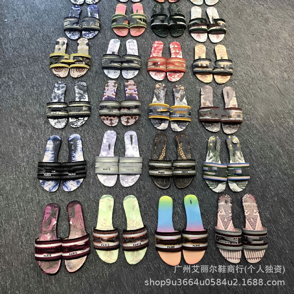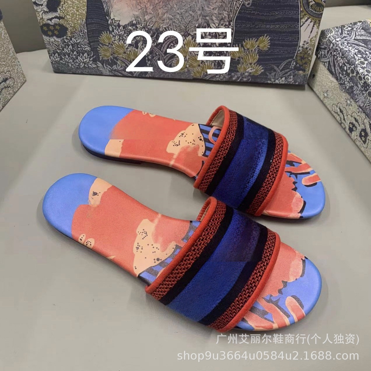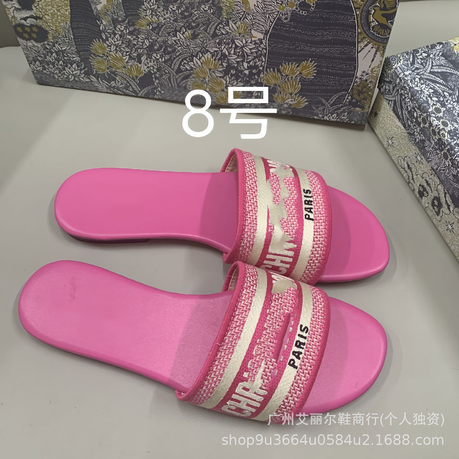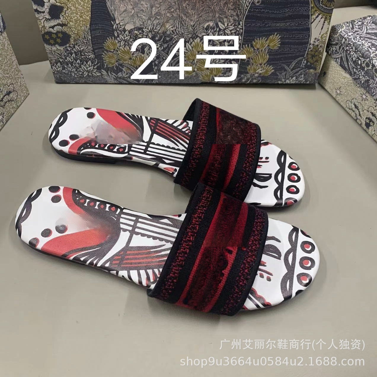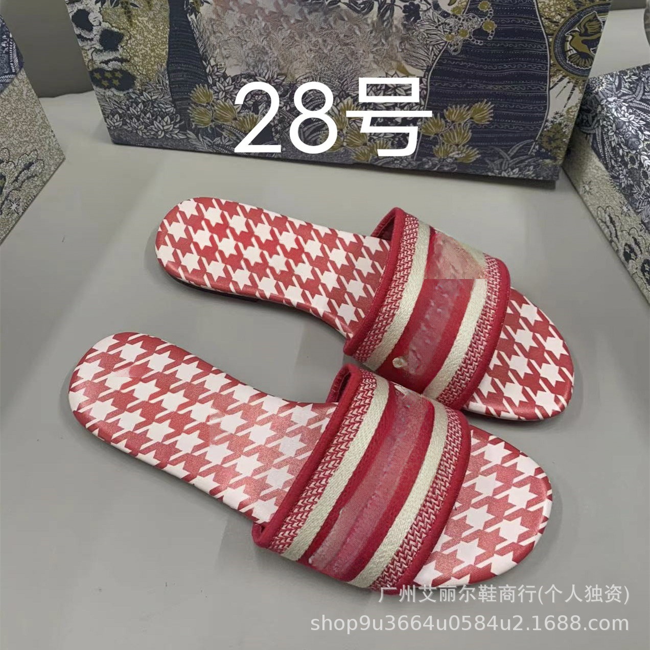 D의 플랫 슬리퍼, 여성스러운 여성화, 자카드 자수, 패셔너블한 캐주얼 샌들, 아우터용 비치 슬리퍼, 다용도