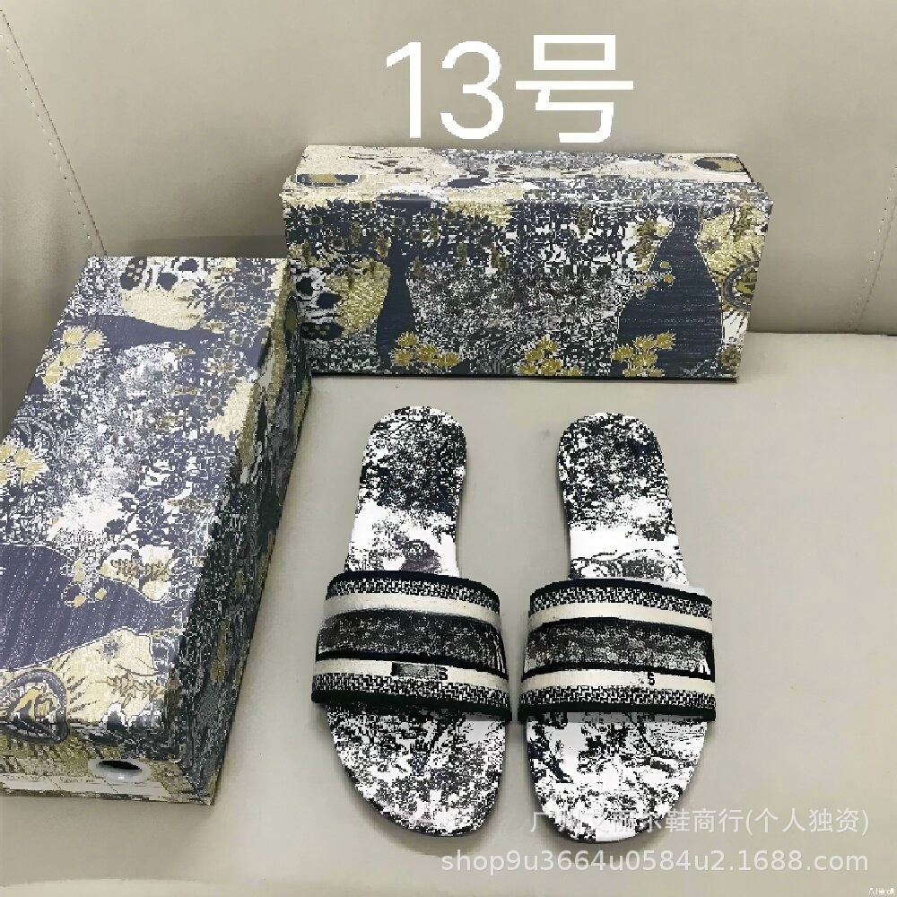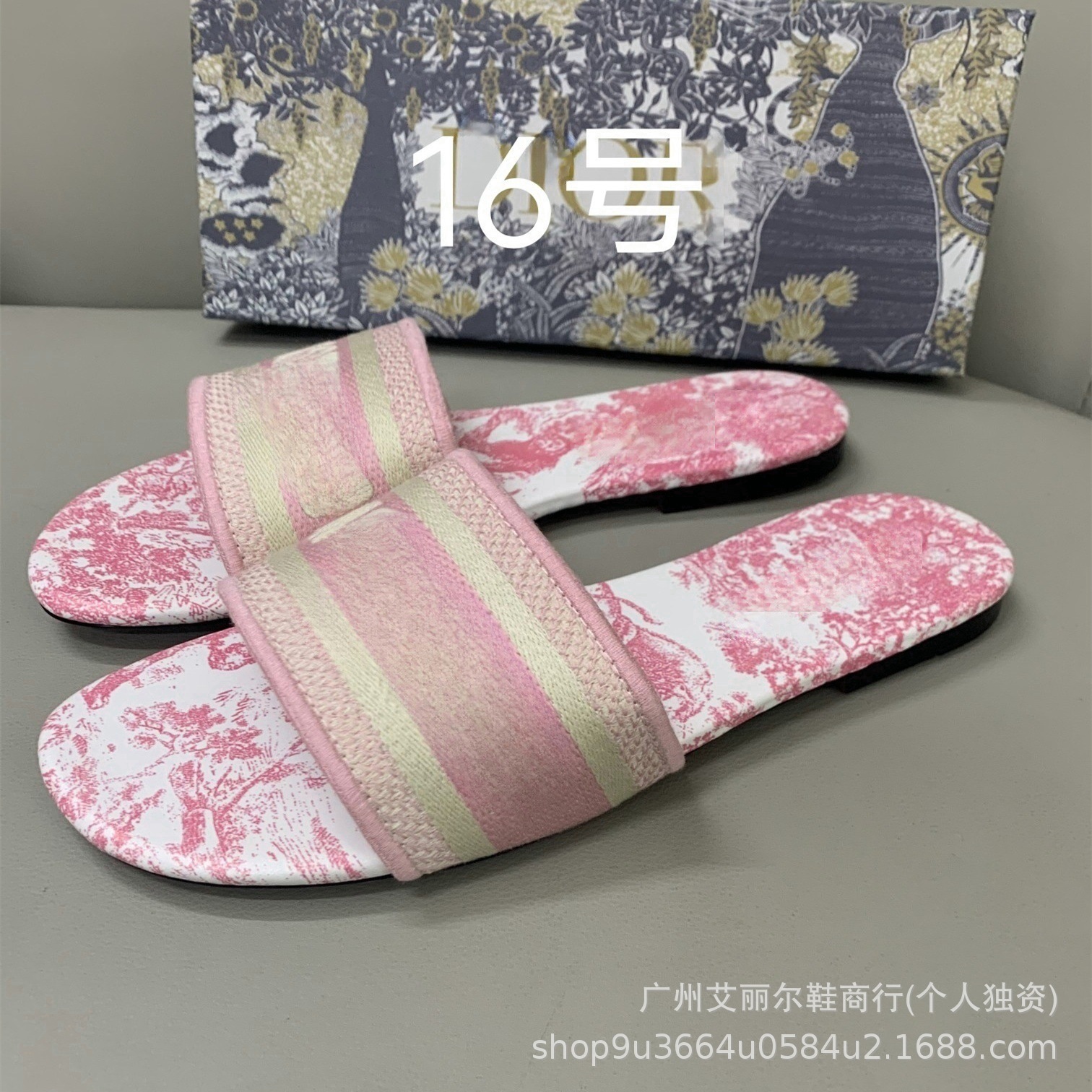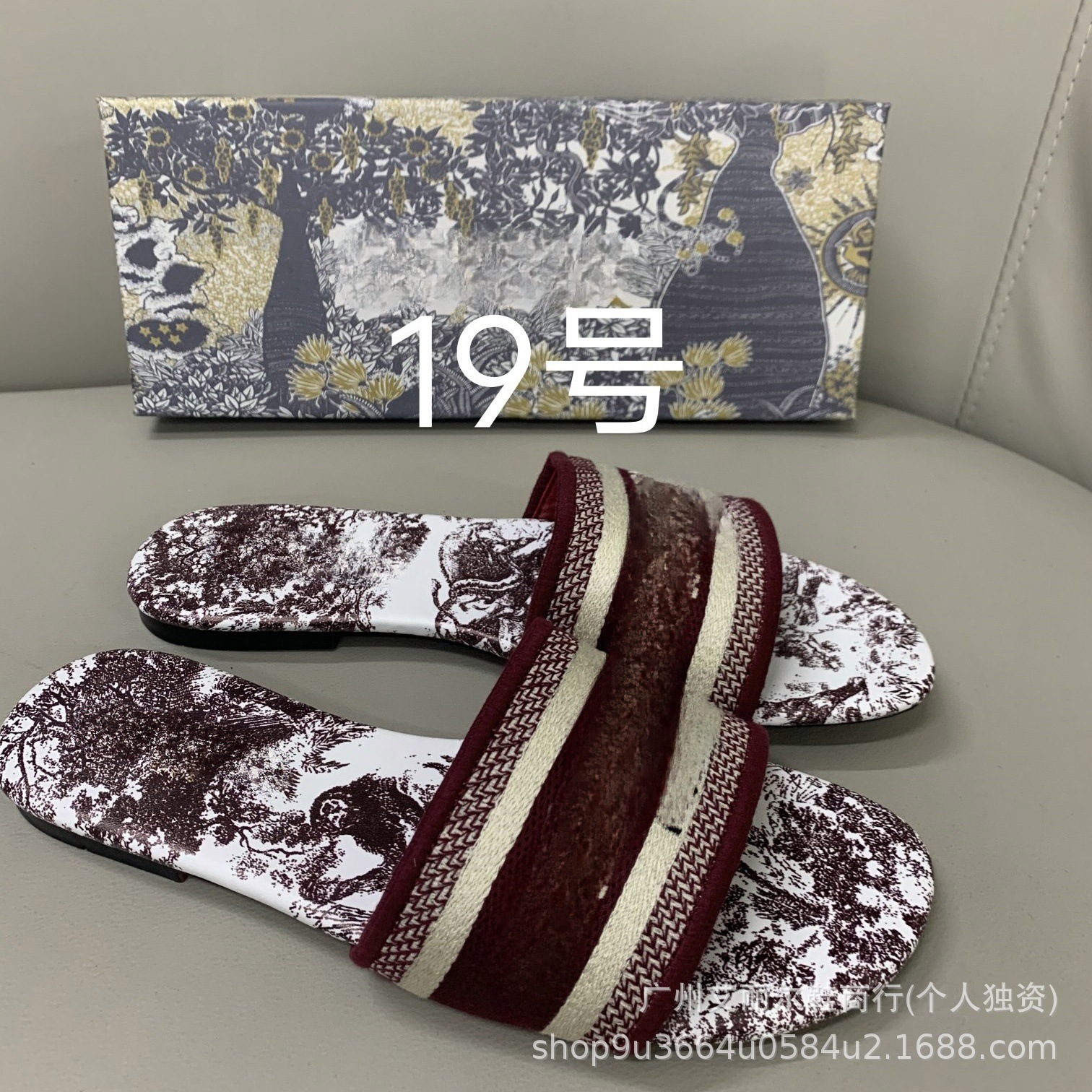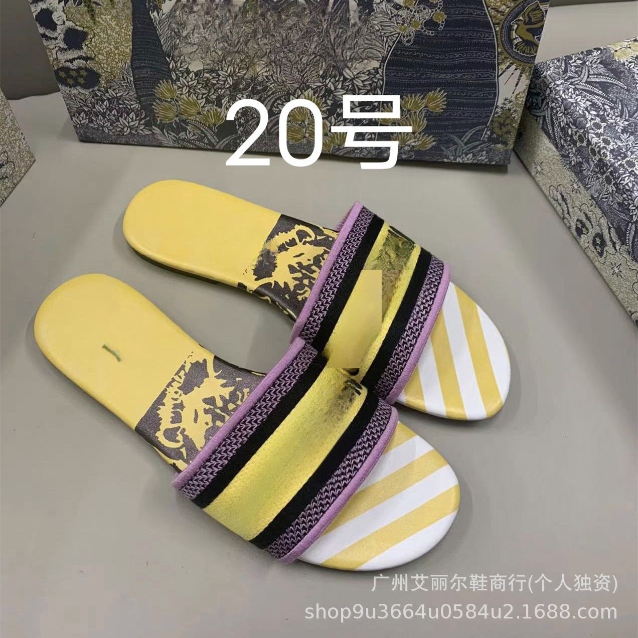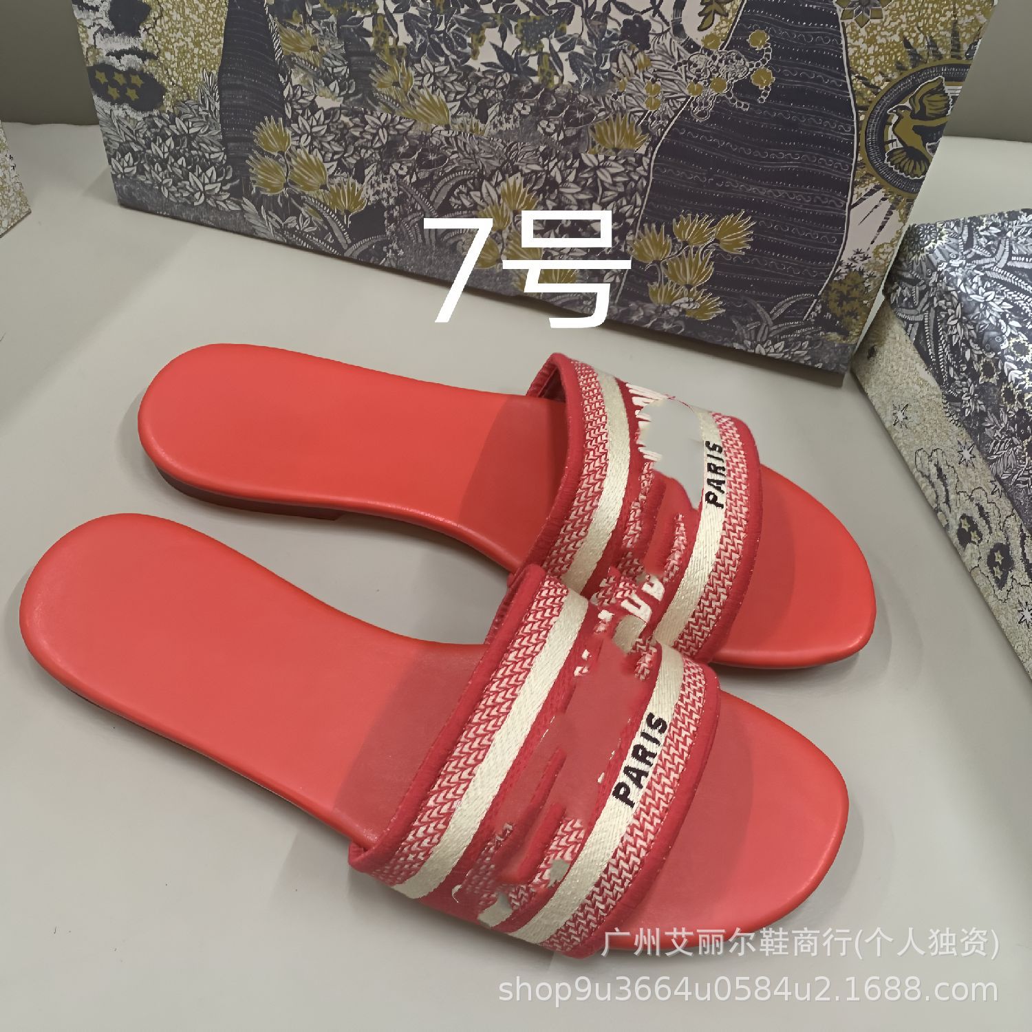 D의 플랫 슬리퍼, 여성스러운 여성화, 자카드 자수, 패셔너블한 캐주얼 샌들, 아우터용 비치 슬리퍼, 다용도