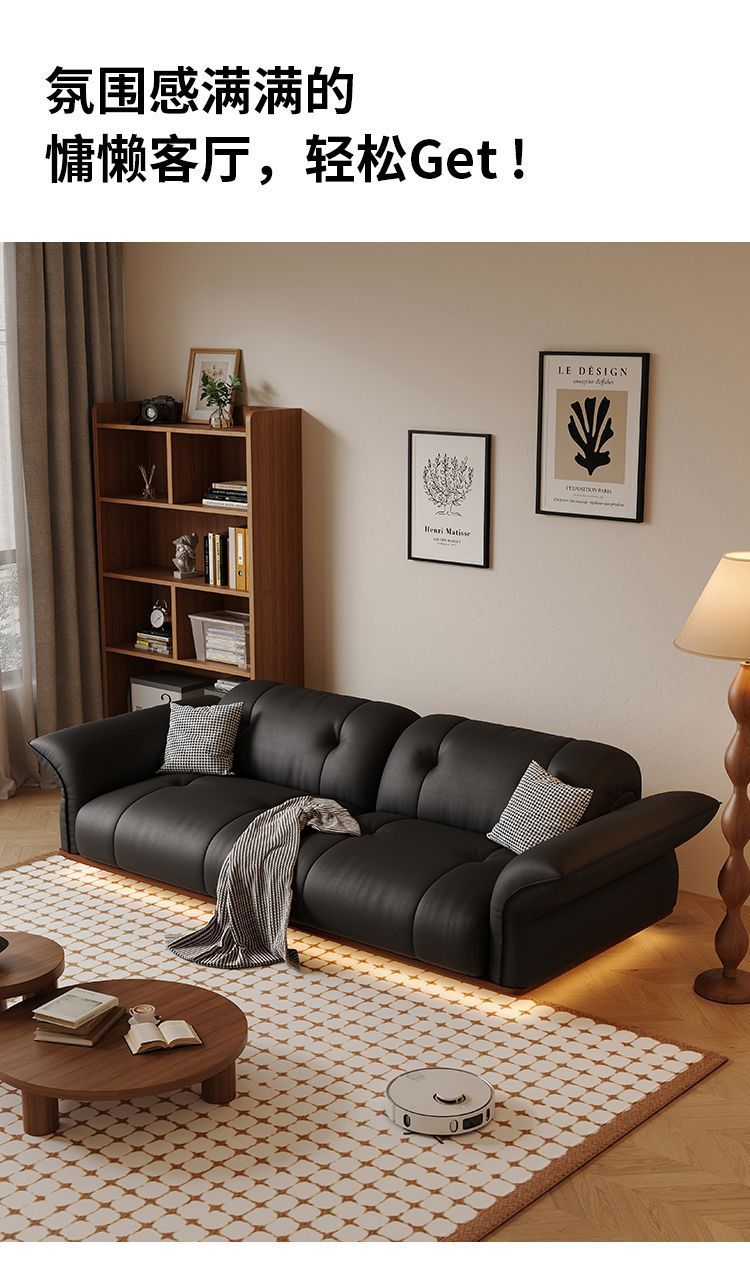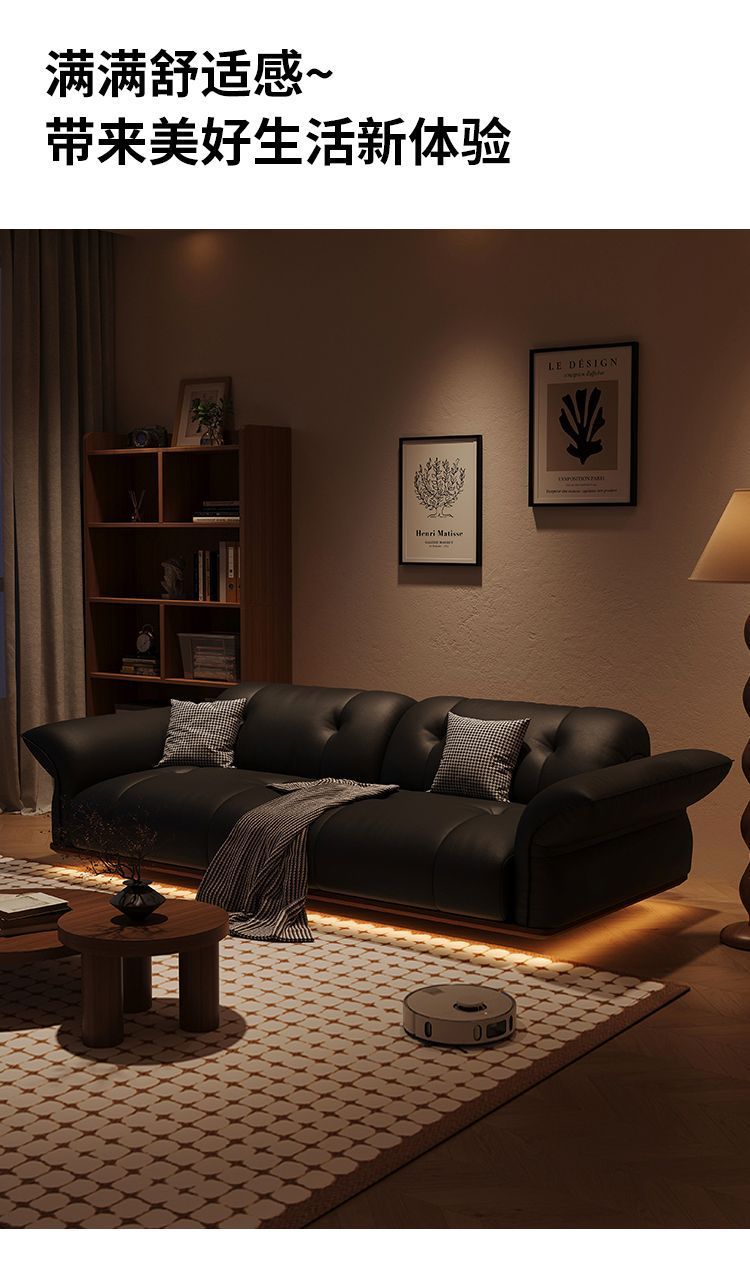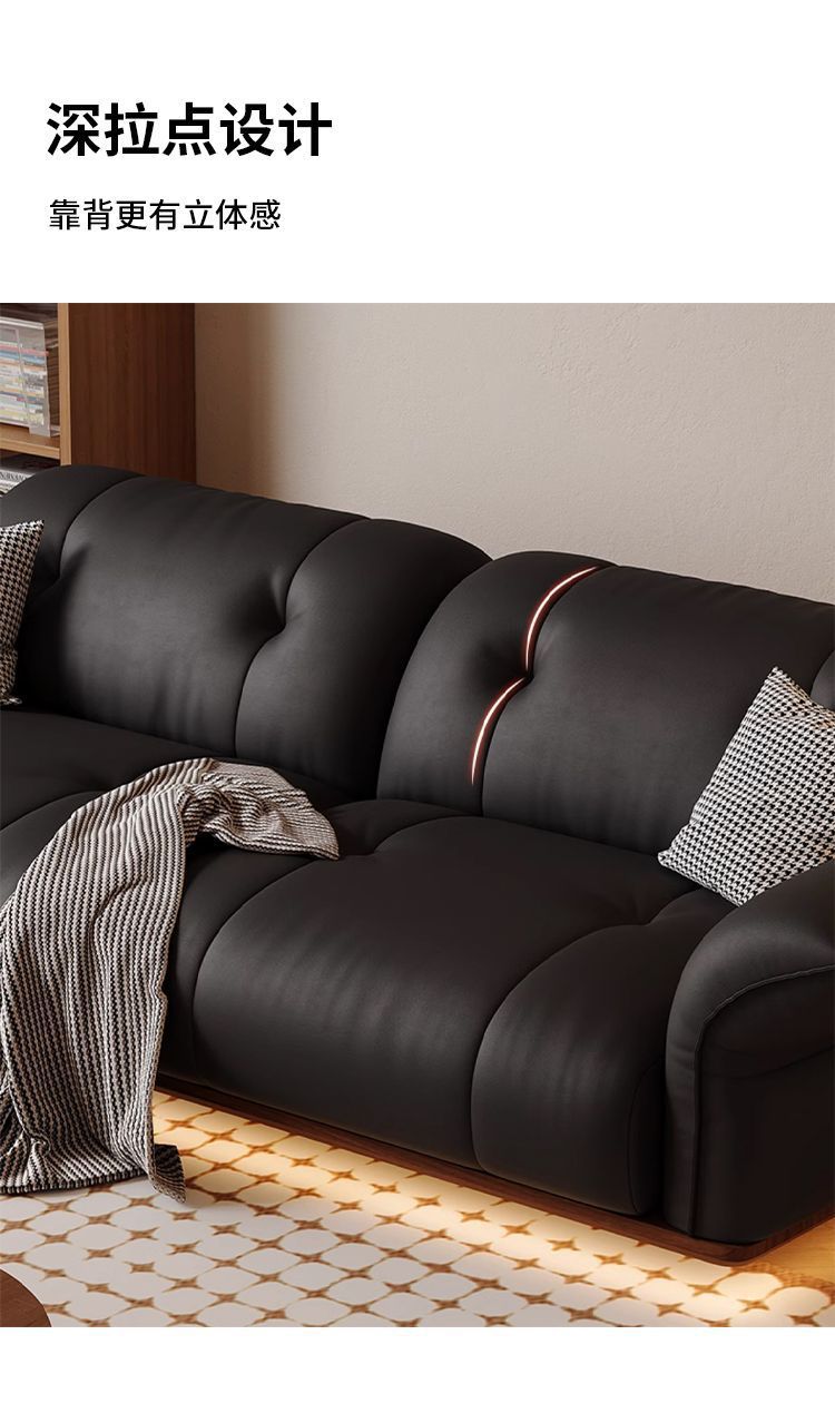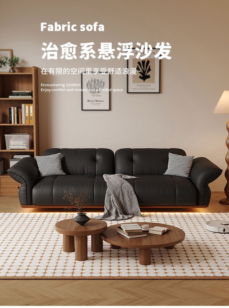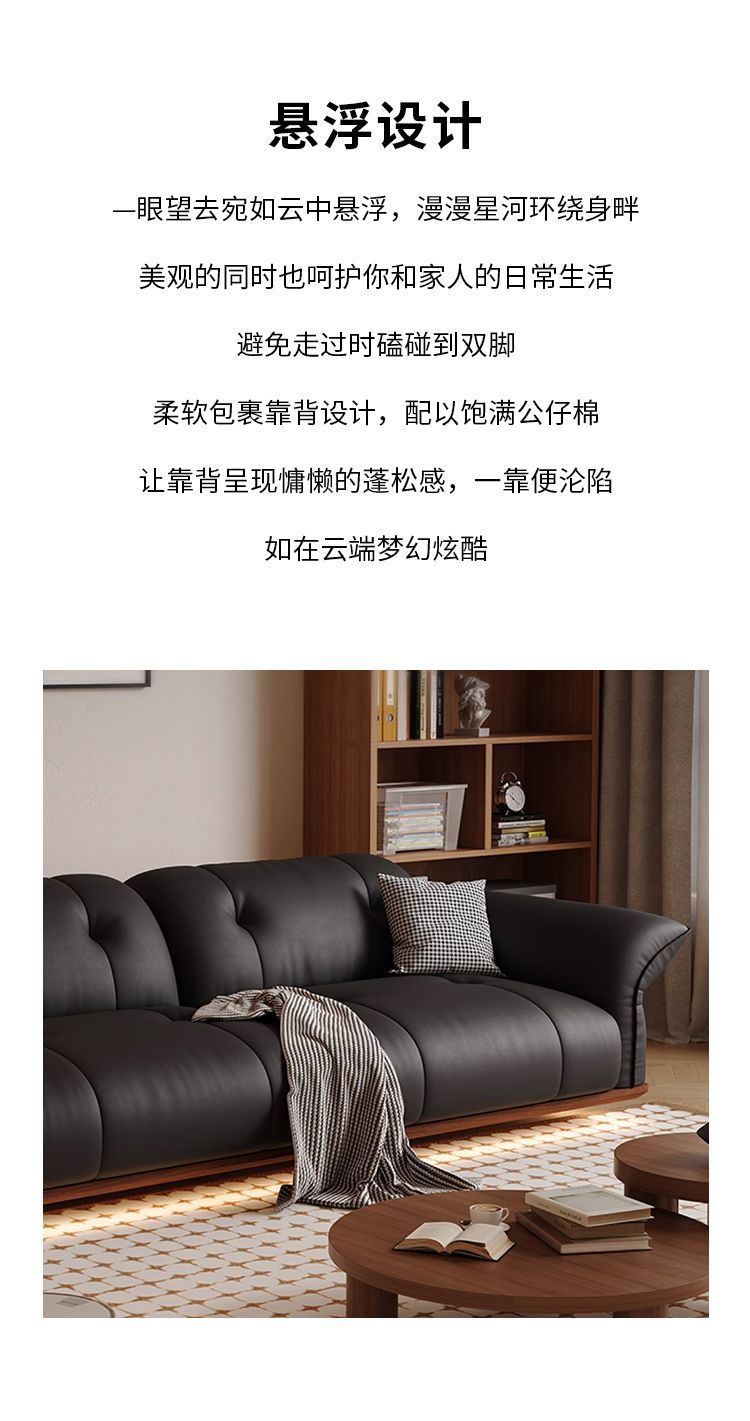 블랙 하이 엔드 서스펜션 조합 소파 현대 간단한 작은 아파트 거실 스트레이트 행 풀 세트 가죽 클라우드 소파스토어 가기