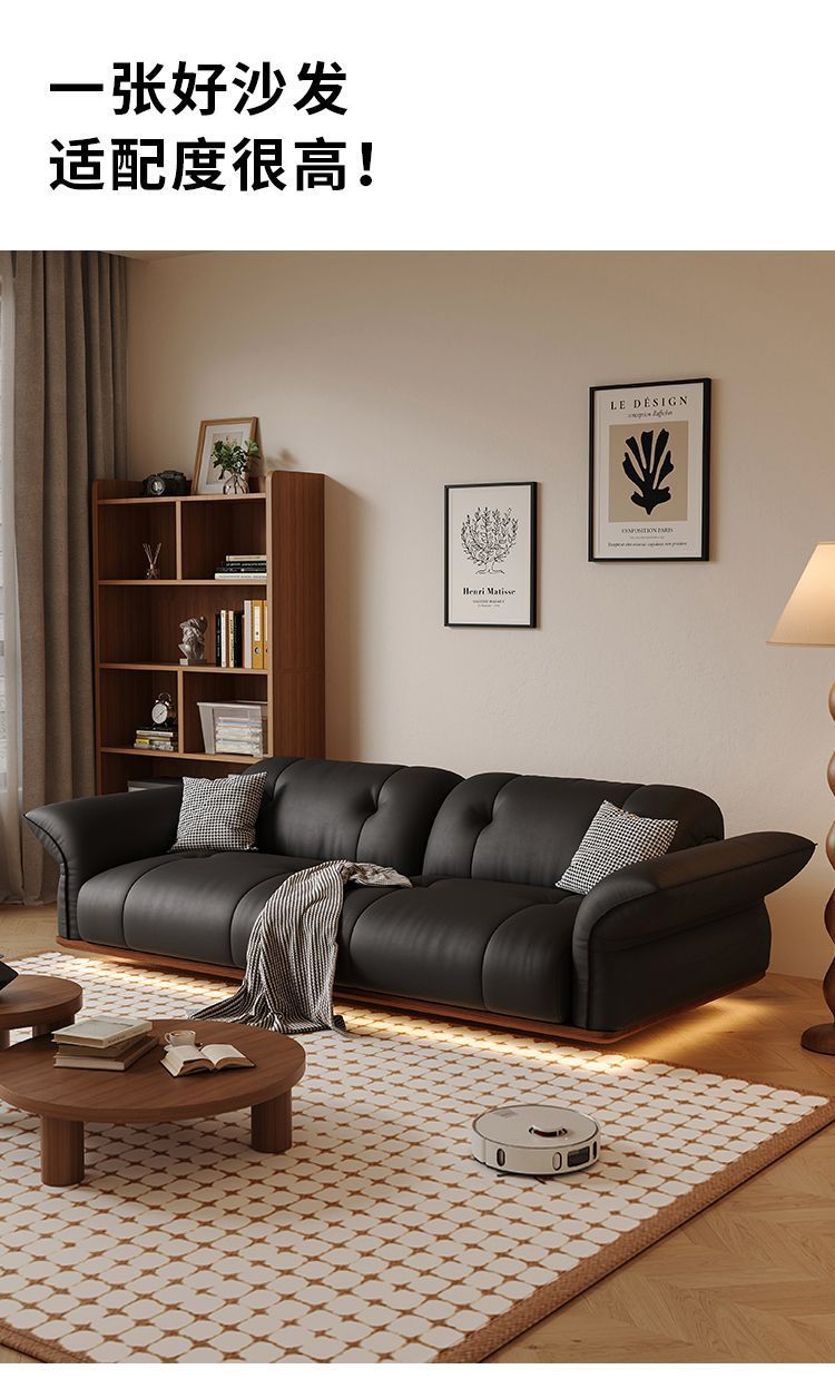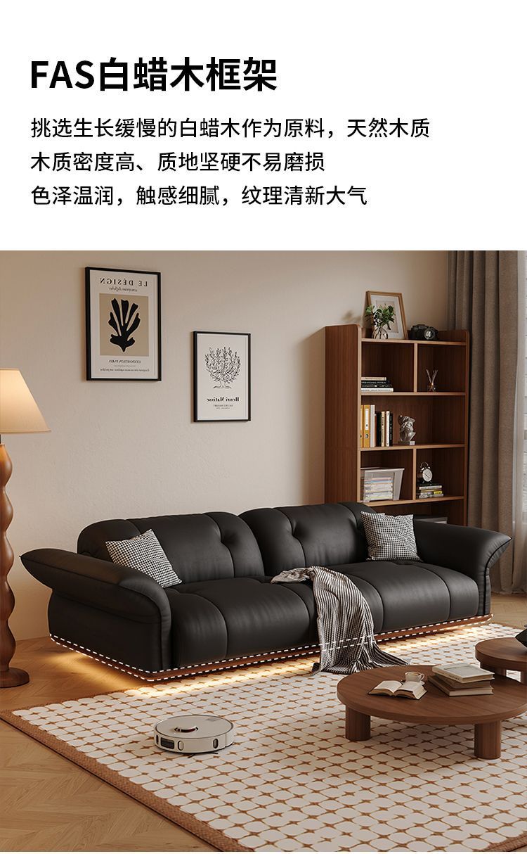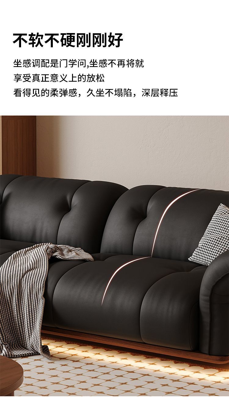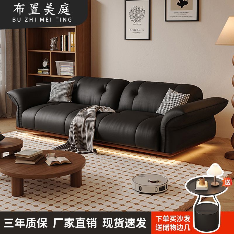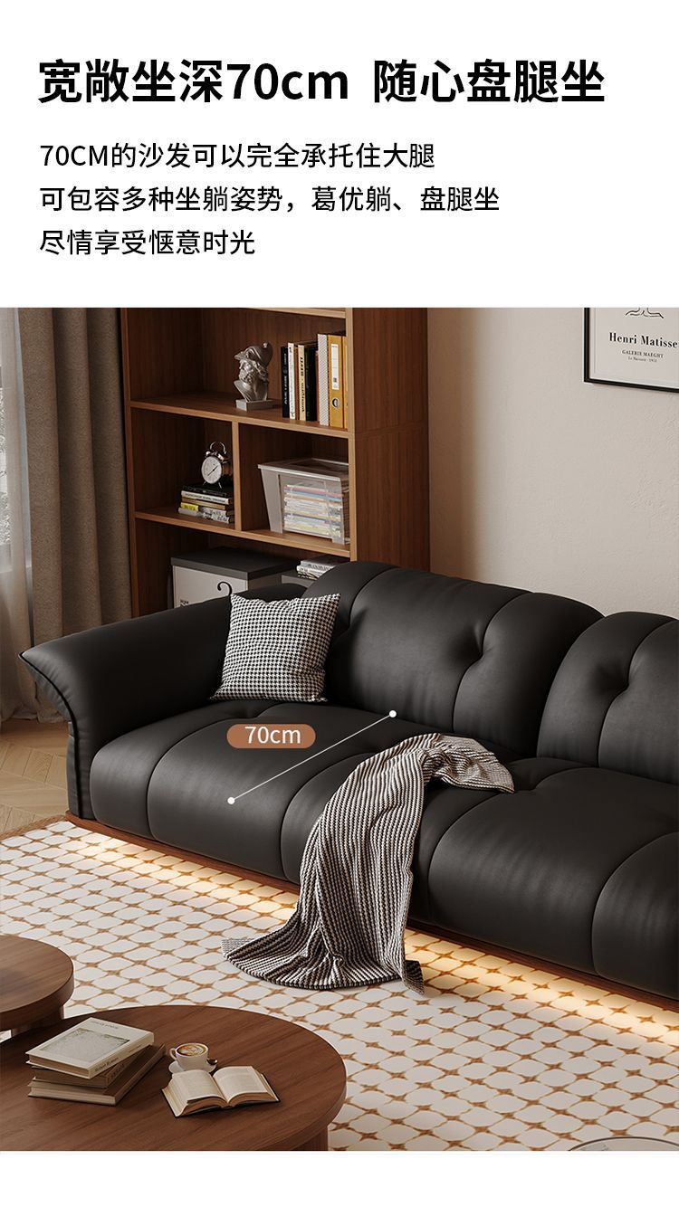 블랙 하이 엔드 서스펜션 조합 소파 현대 간단한 작은 아파트 거실 스트레이트 행 풀 세트 가죽 클라우드 소파스토어 가기