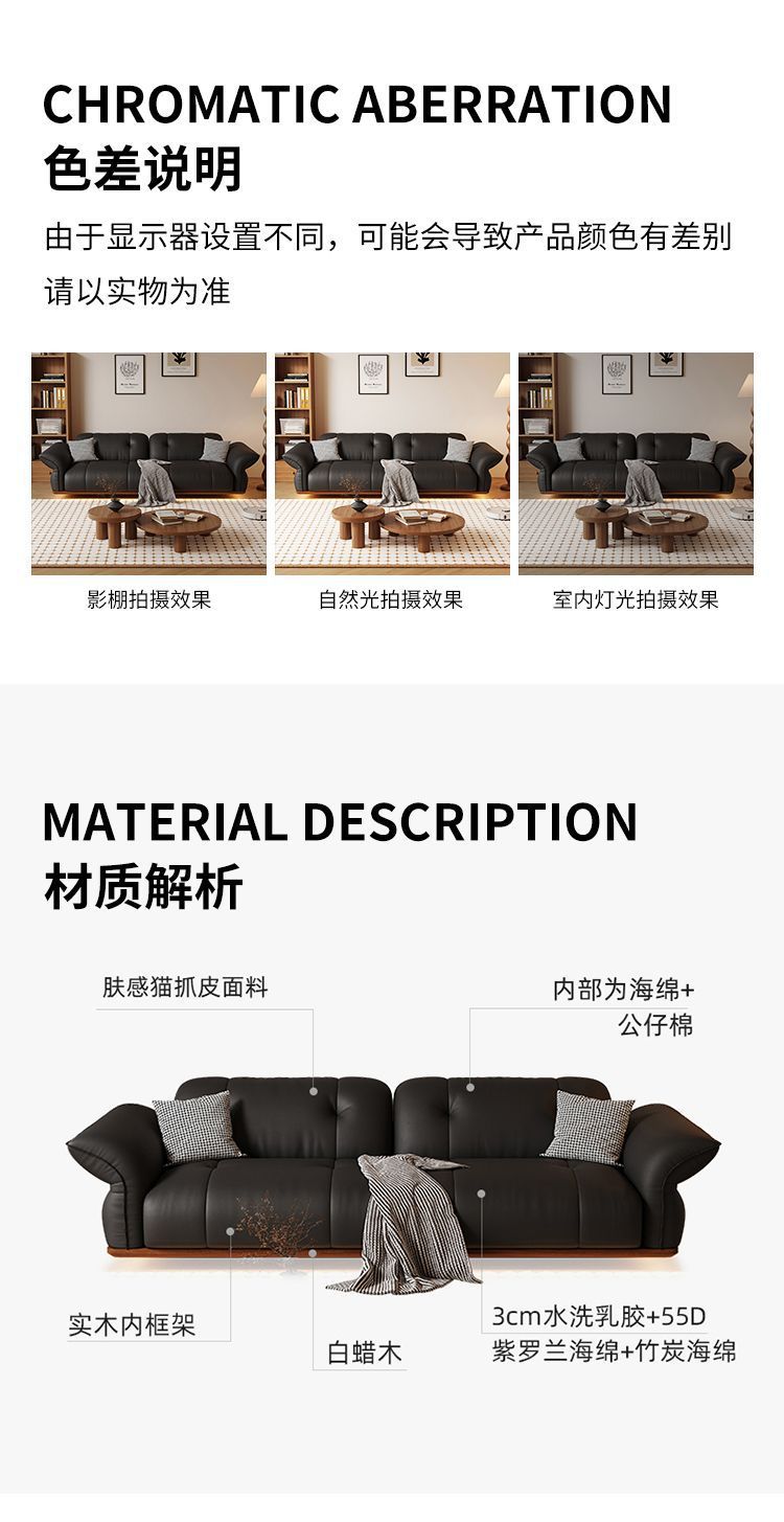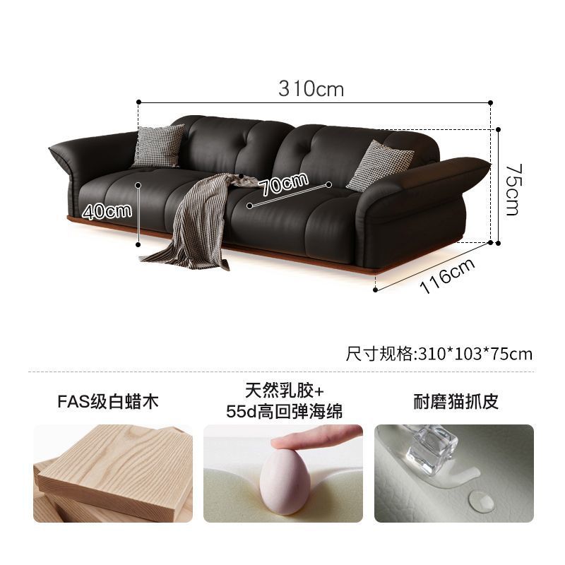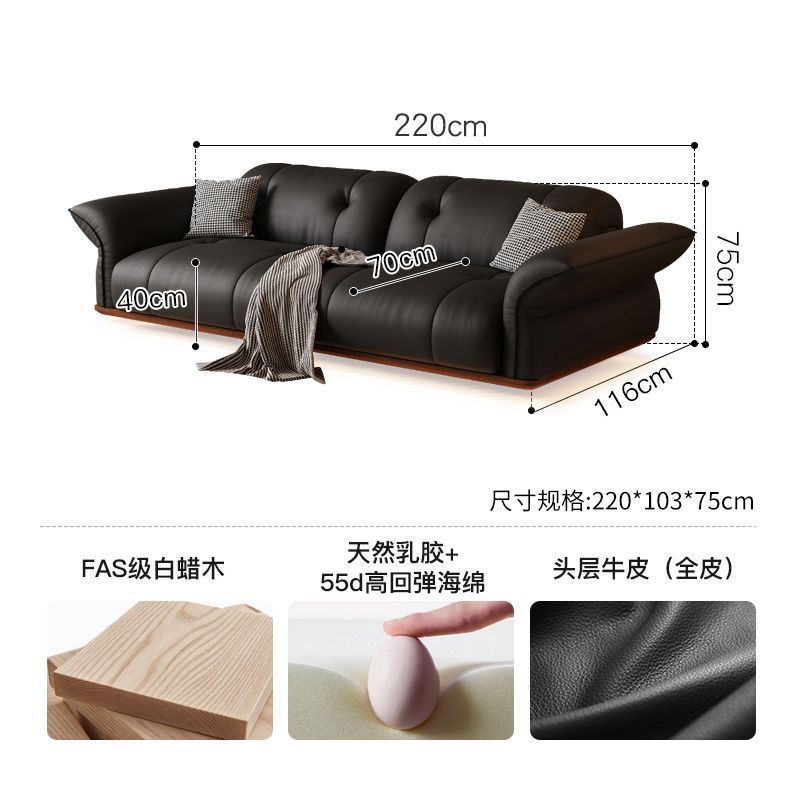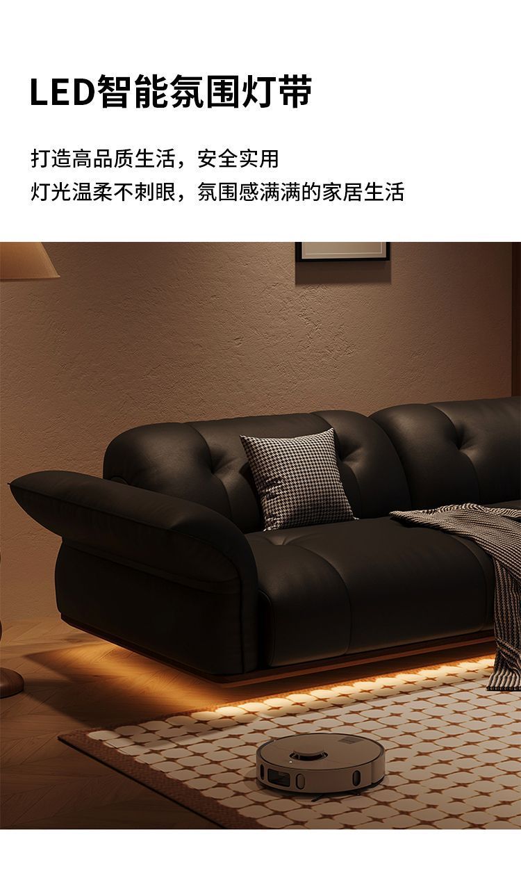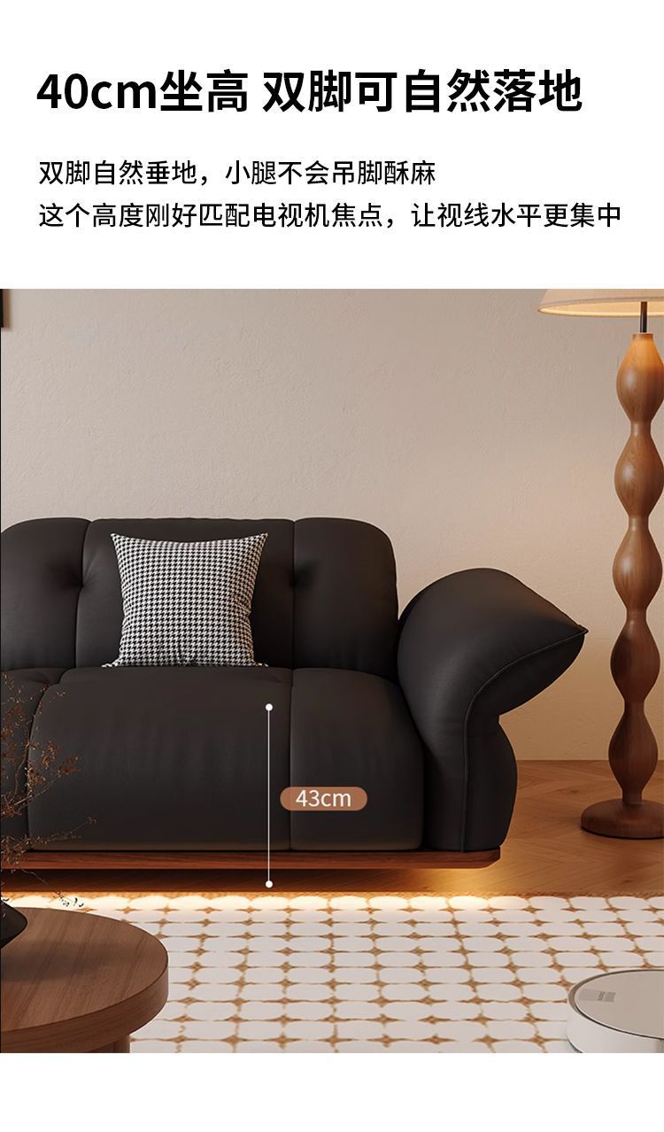 블랙 하이 엔드 서스펜션 조합 소파 현대 간단한 작은 아파트 거실 스트레이트 행 풀 세트 가죽 클라우드 소파스토어 가기