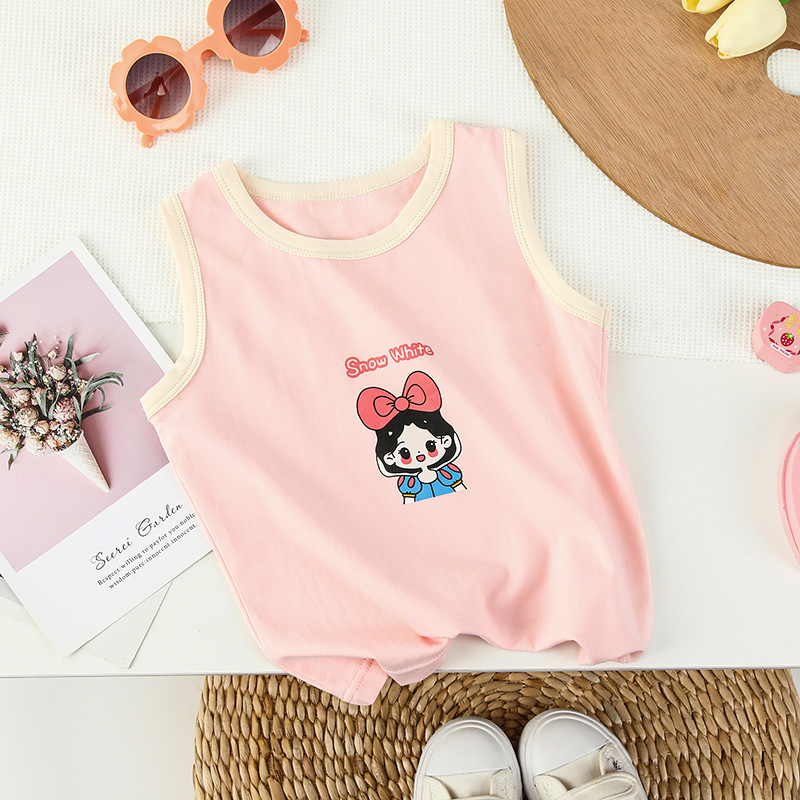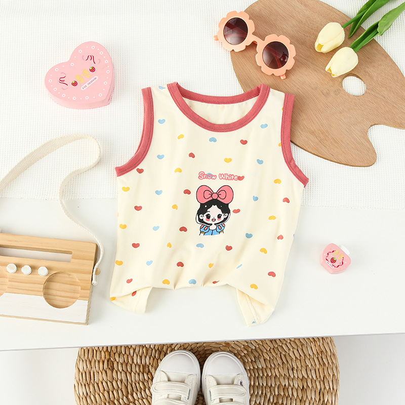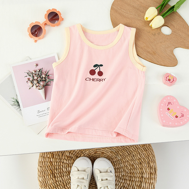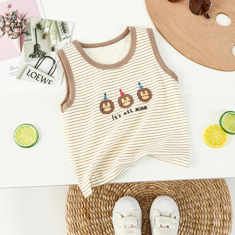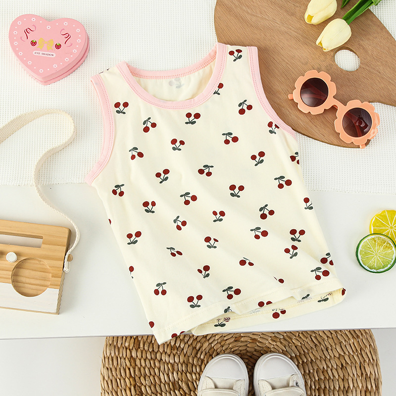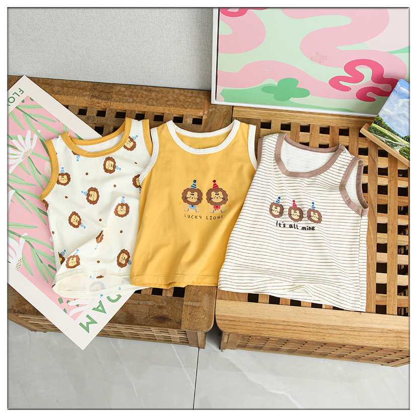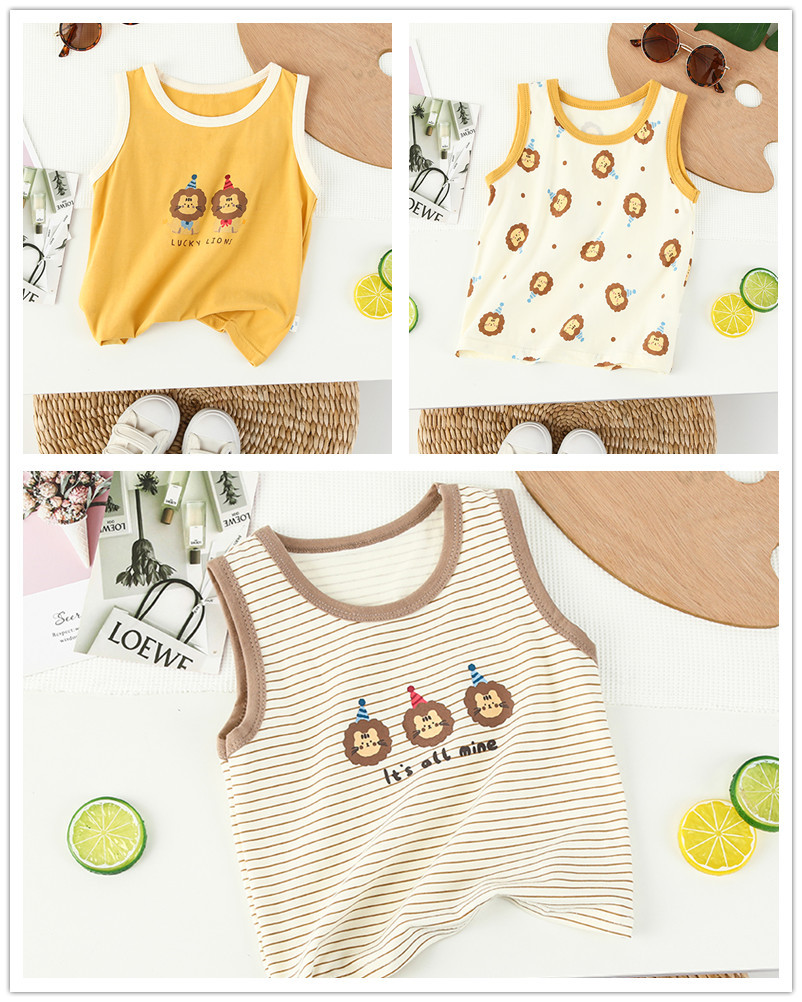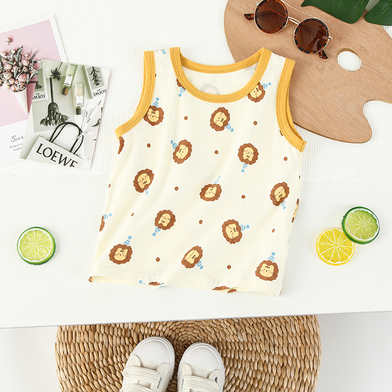 어린이 코튼 라이크라 조끼 여름 얇은 만화 인쇄 어린이 소년 및 어린이 민소매 기본 셔츠