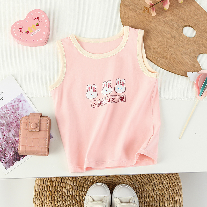 어린이 코튼 라이크라 조끼 여름 얇은 만화 인쇄 어린이 소년 및 어린이 민소매 기본 셔츠스토어 가기