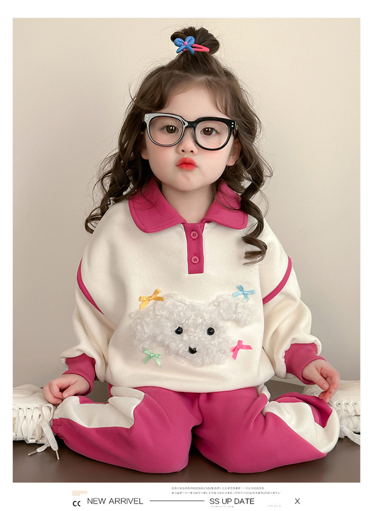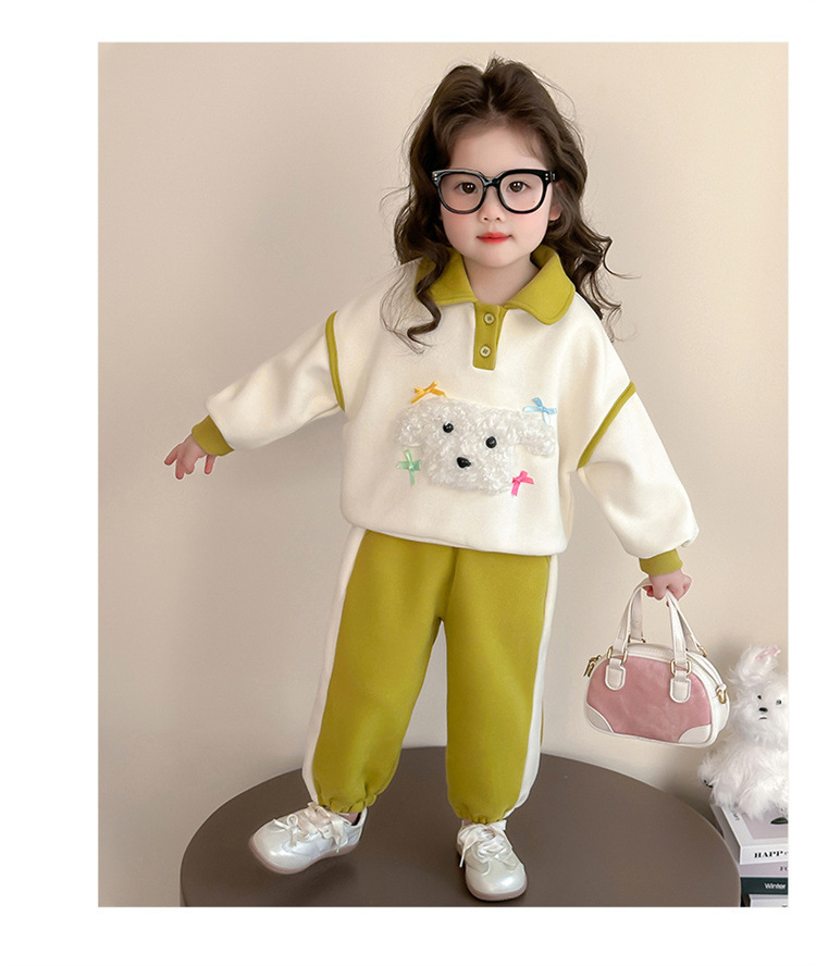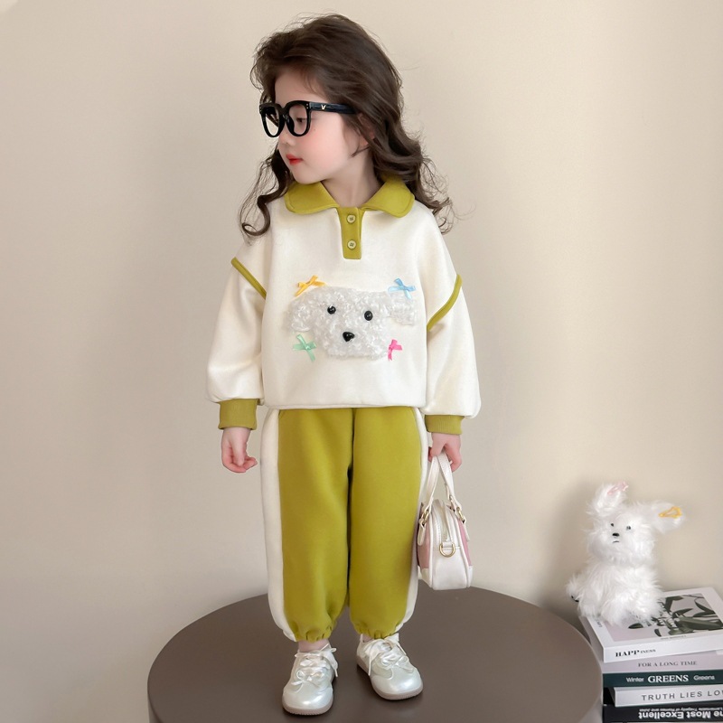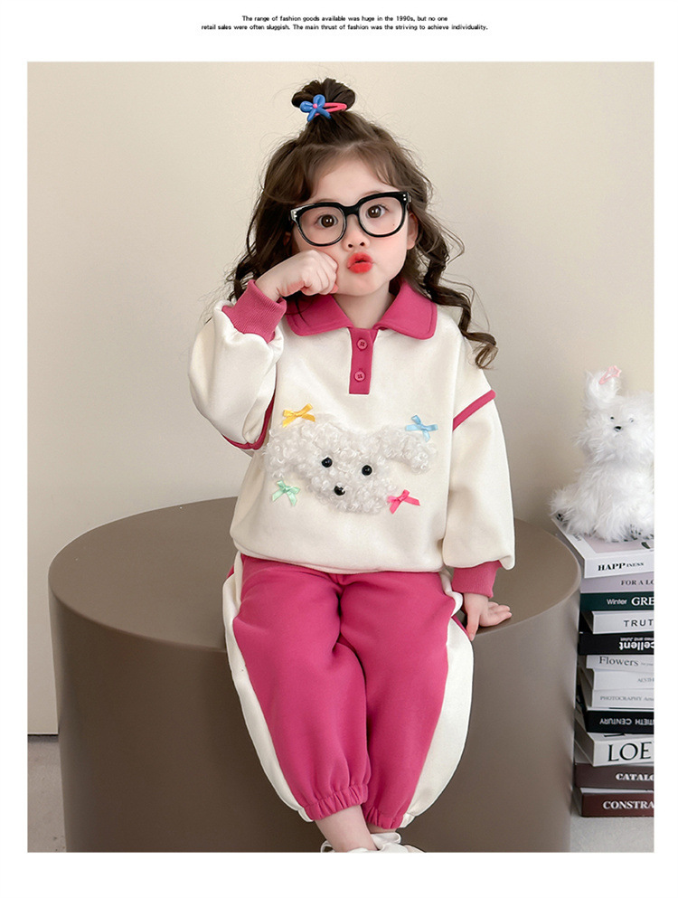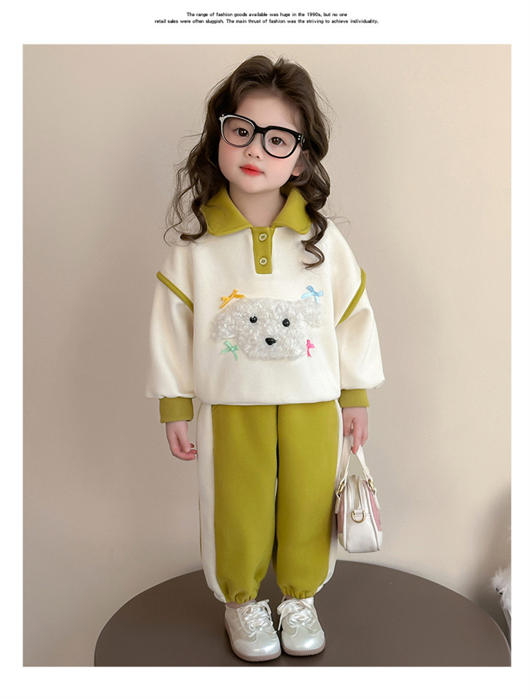 소녀 귀여운 강아지 세트 봄과 가을 2025 새로운 패션 작은 소녀 폴로 셔츠 후드 캐주얼 투피스 세트스토어 가기