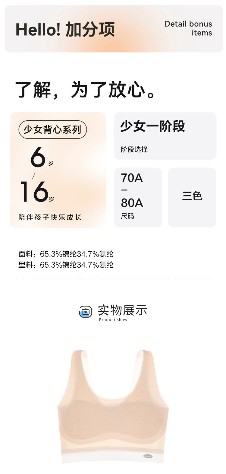 Anfeiya 소녀 속옷 작은 조끼 조기 발달 어린이 초등학교 여학생 브래지어 한 단계 흔적 없음