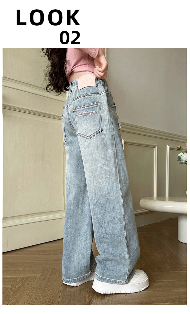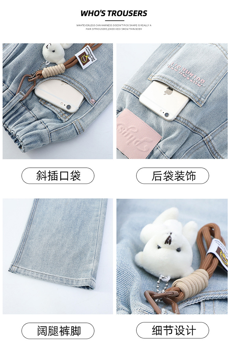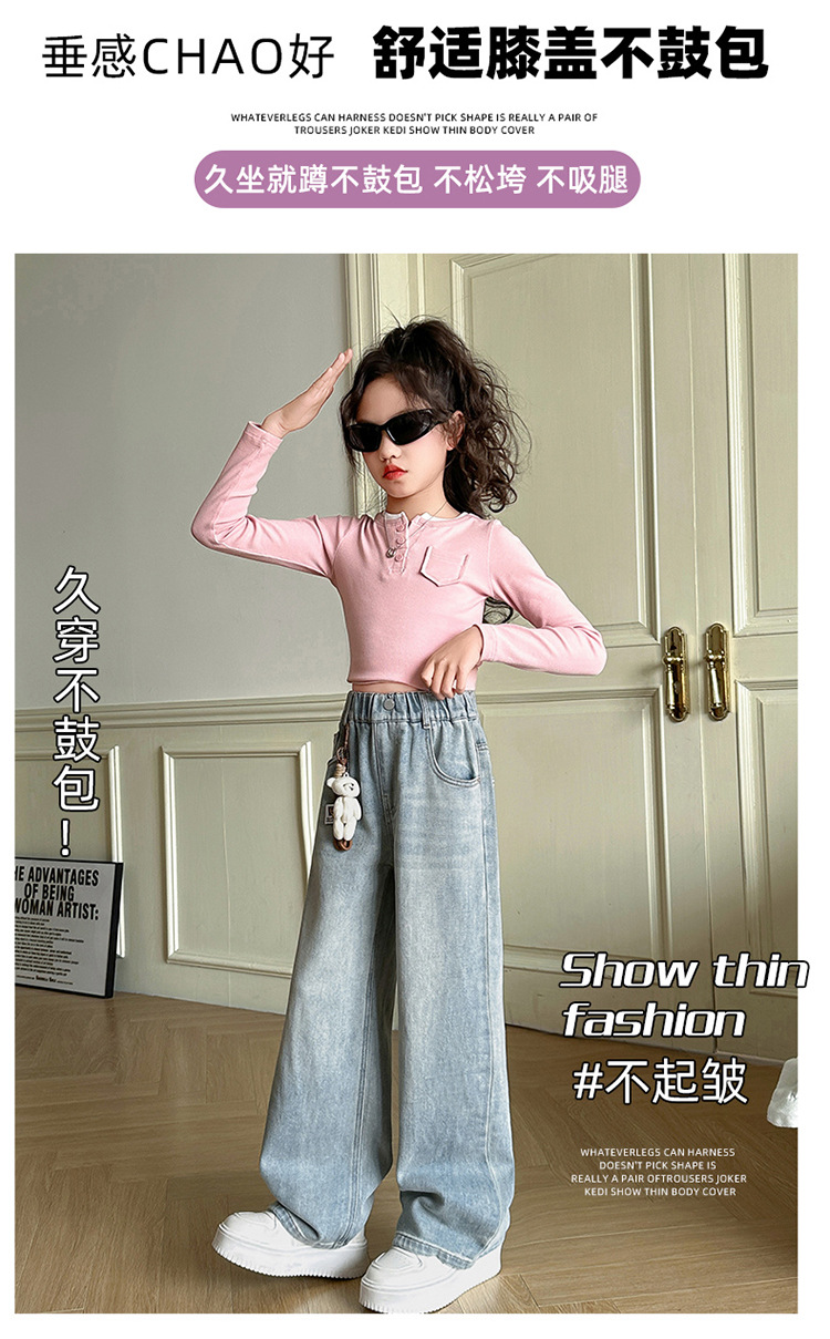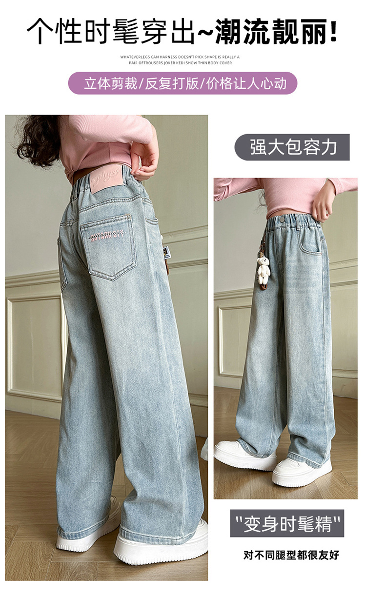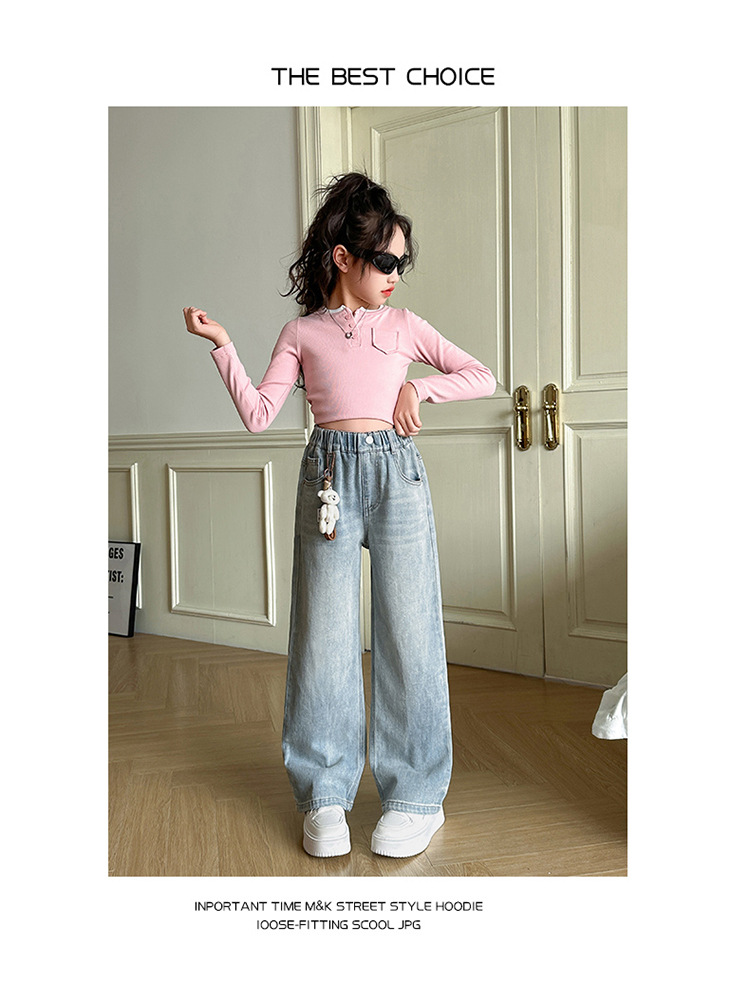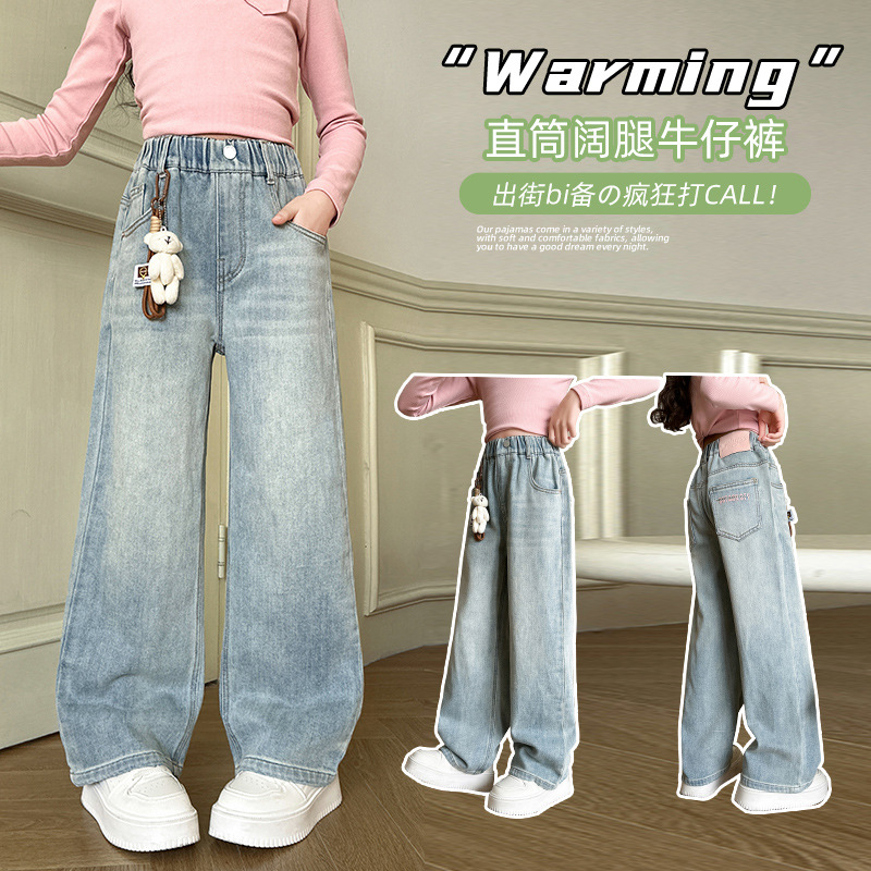 2025 새로운 곰 펜던트 청바지 봄과 가을 큰 아이들의 한국 버전 느슨한 캐주얼 넓은 다리 바지스토어 가기