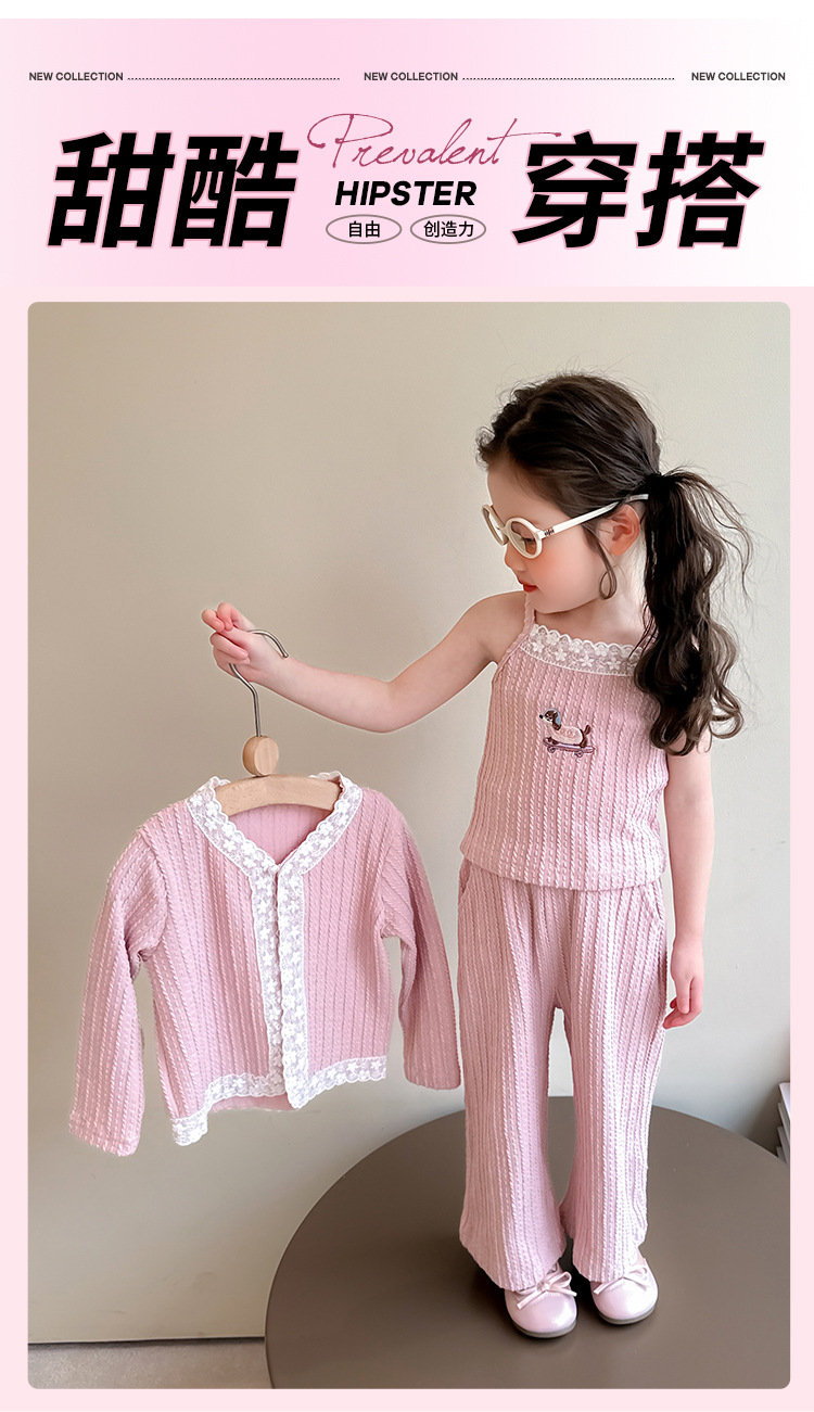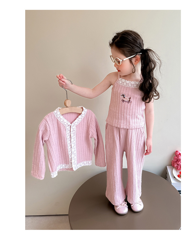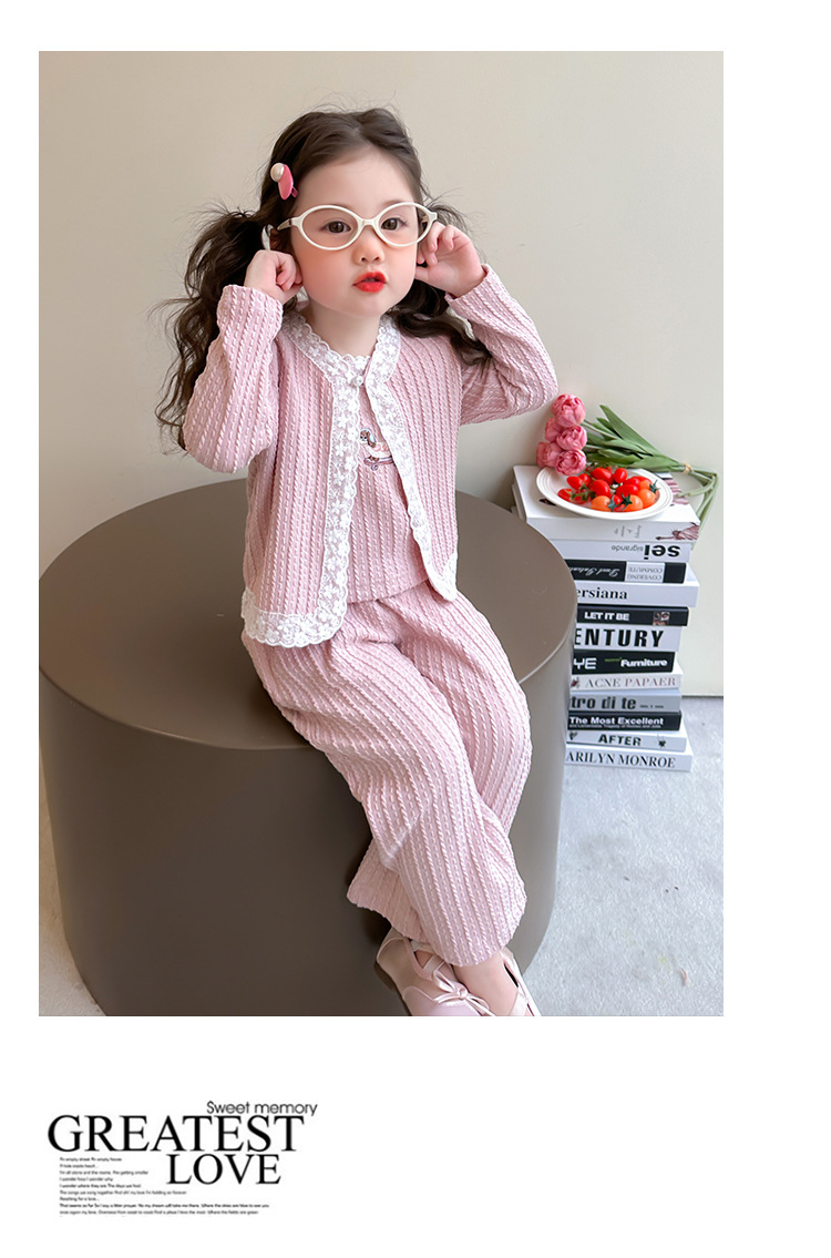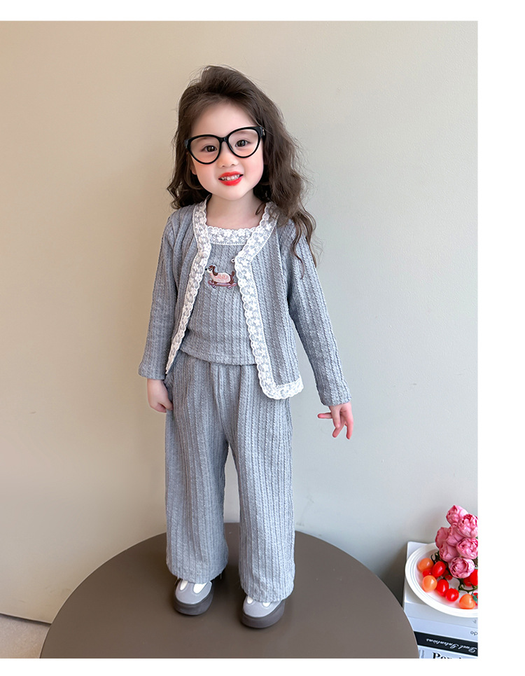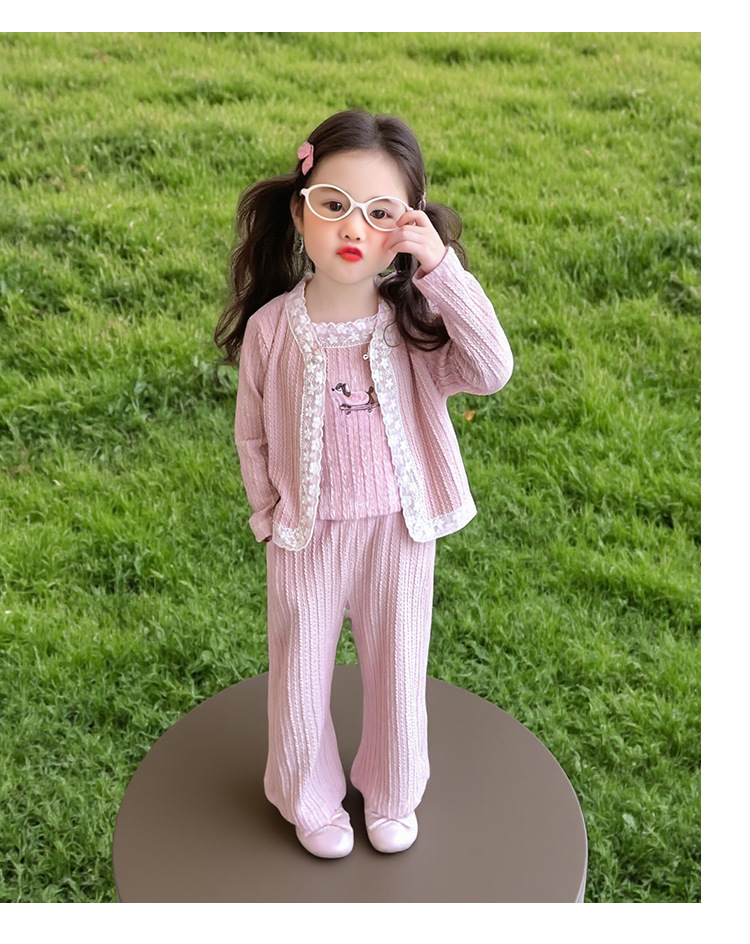 소녀 니트 카디건 3 종 세트 봄과 가을 2025 새로운 패션 어린 소녀 만화 캐주얼 세트 어린이