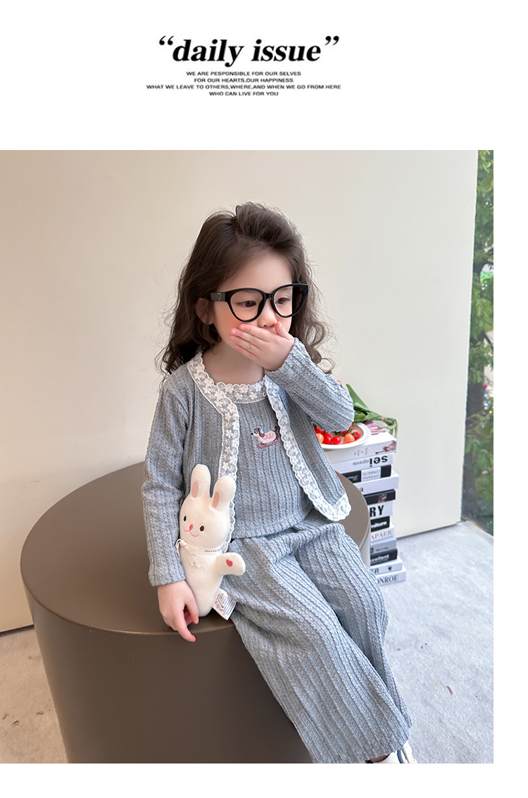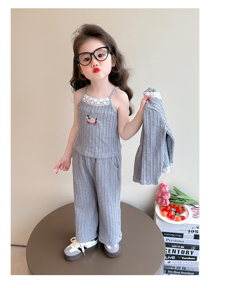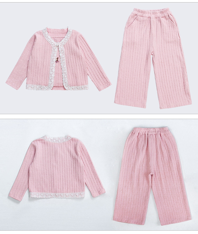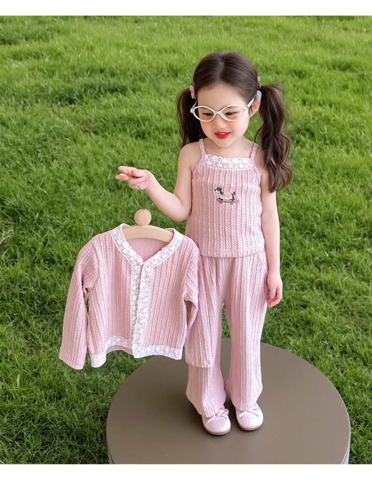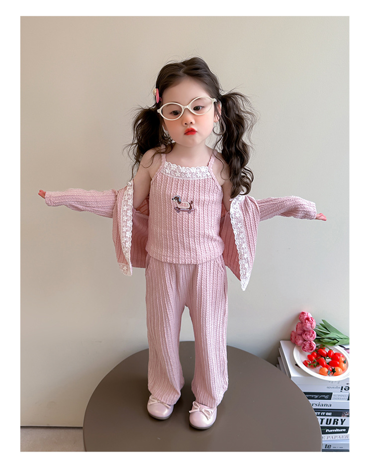 소녀 니트 카디건 3 종 세트 봄과 가을 2025 새로운 패션 어린 소녀 만화 캐주얼 세트 어린이