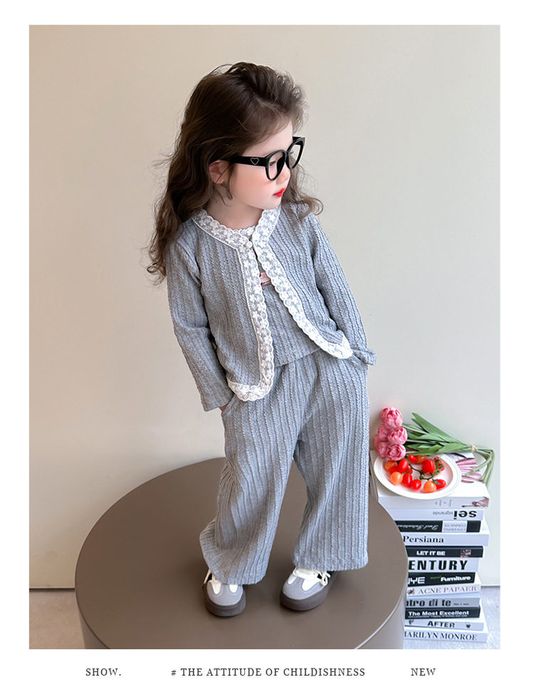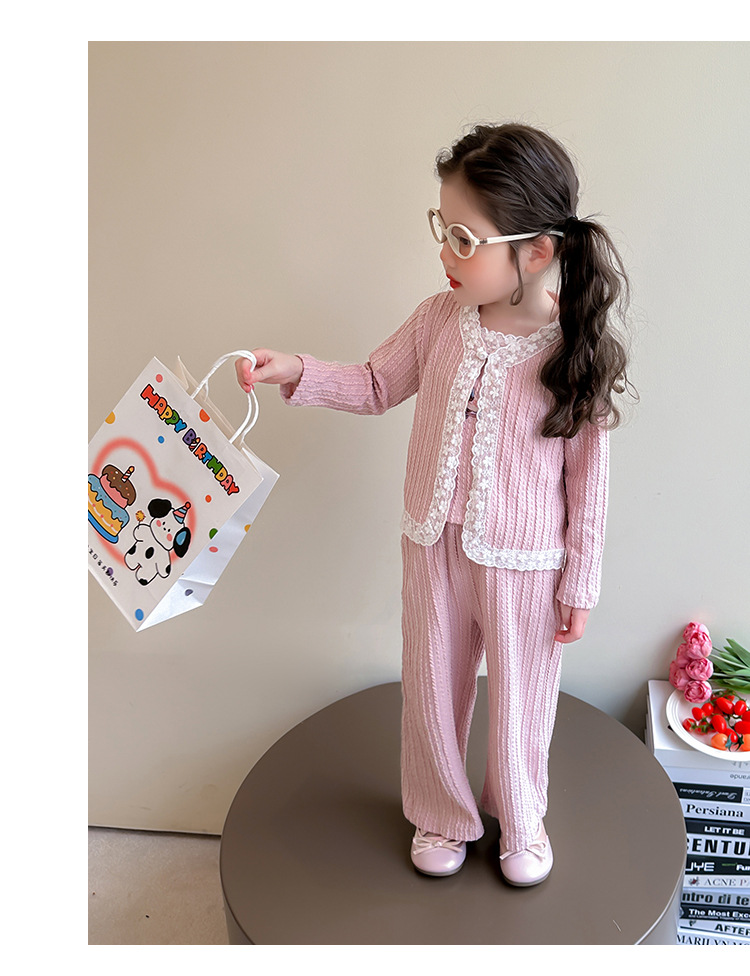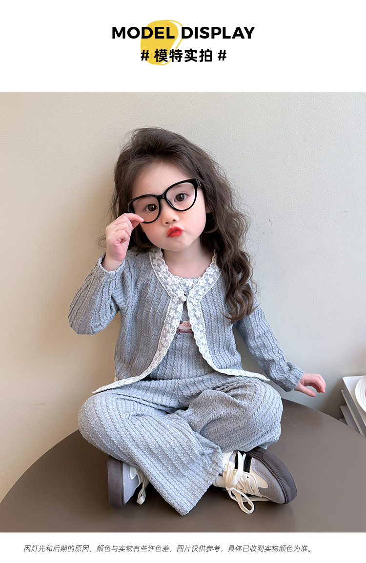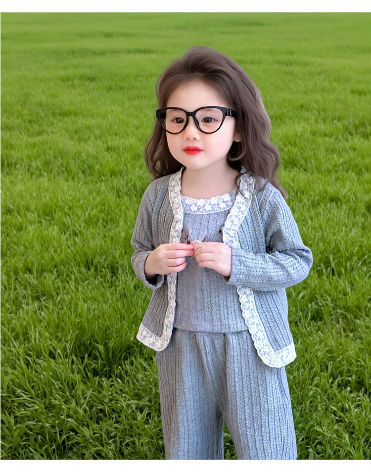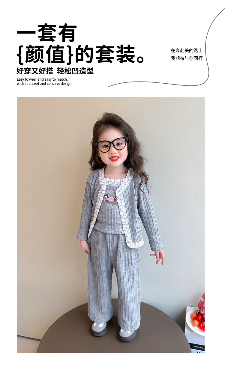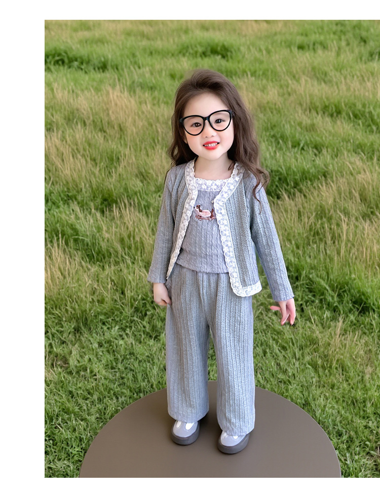 소녀 니트 카디건 3 종 세트 봄과 가을 2025 새로운 패션 어린 소녀 만화 캐주얼 세트 어린이스토어 가기